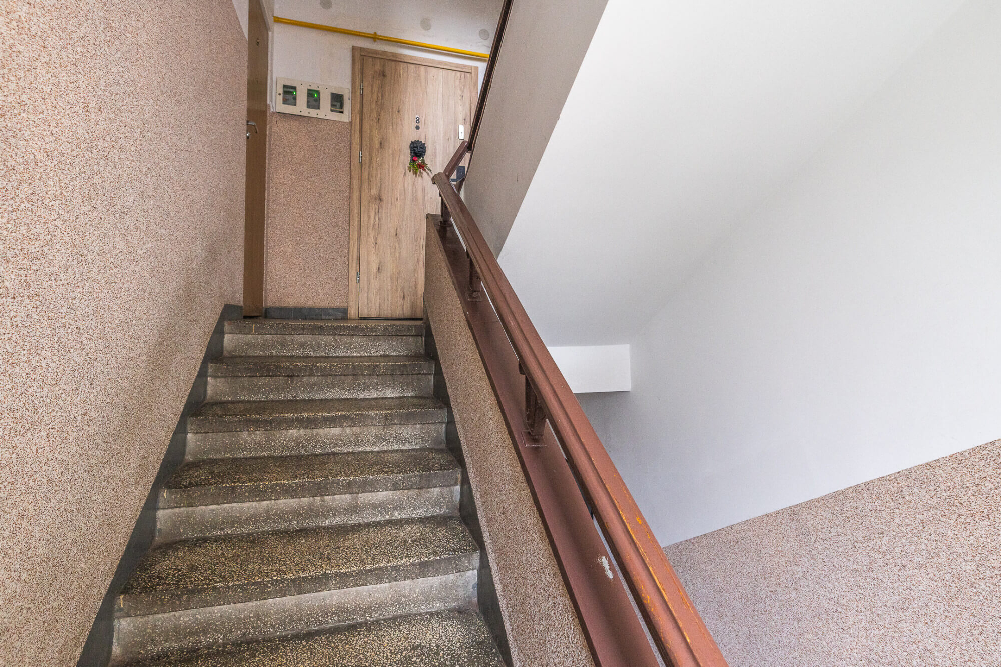 BUDYNEK: mieszkanie mieści się na 2. piętrze w 3-piętrowej kamienicy z lat 60-tych XX wieku, którą wykonano z cegły, a dach pokryto dachówką ceramiczną. Ogólny stan całej nieruchomości należy uznać za bardzo dobry. Dach i elewacja po remoncie. Wejście do klatki schodowej zabezpieczone jest domofonem. Klatka czysta i zadbana. Do wspólnego użytku mieszkańców także suszarnia. W podwórzu znajdziemy miejsca postojowe dostępne tylko dla mieszkańców budynku, a w pobliżu nieruchomości ogólnodostępne miejsca postojowe (strefa płatnego parkowania).