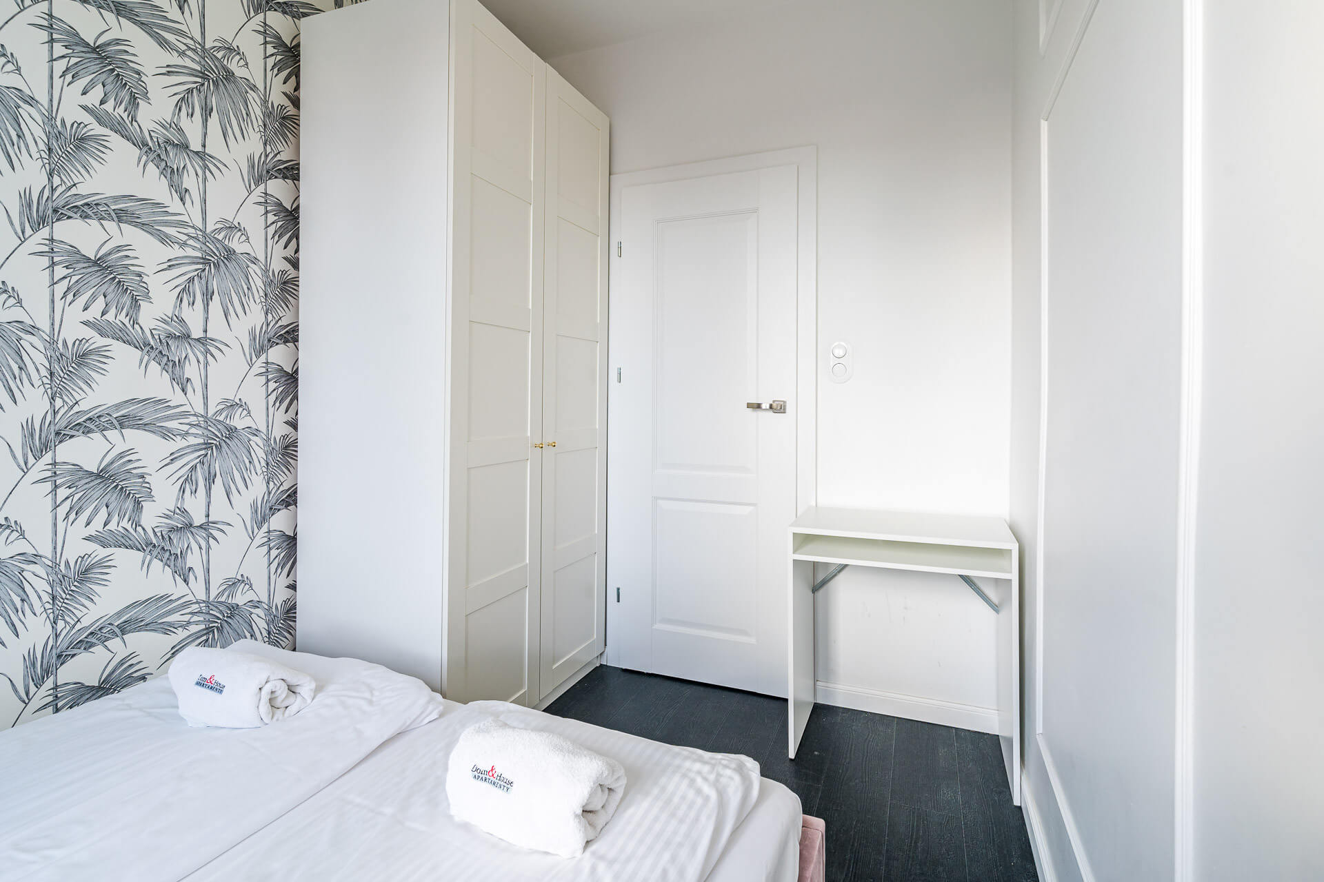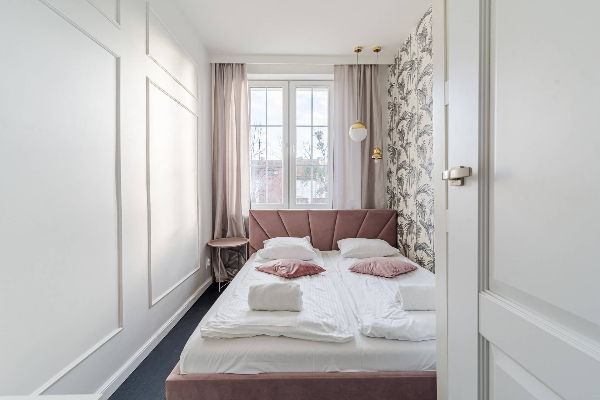 – 2 pokoje (14,56 m2 oraz 7,85 m2) – w każdym z nich szafy wolnostojące,