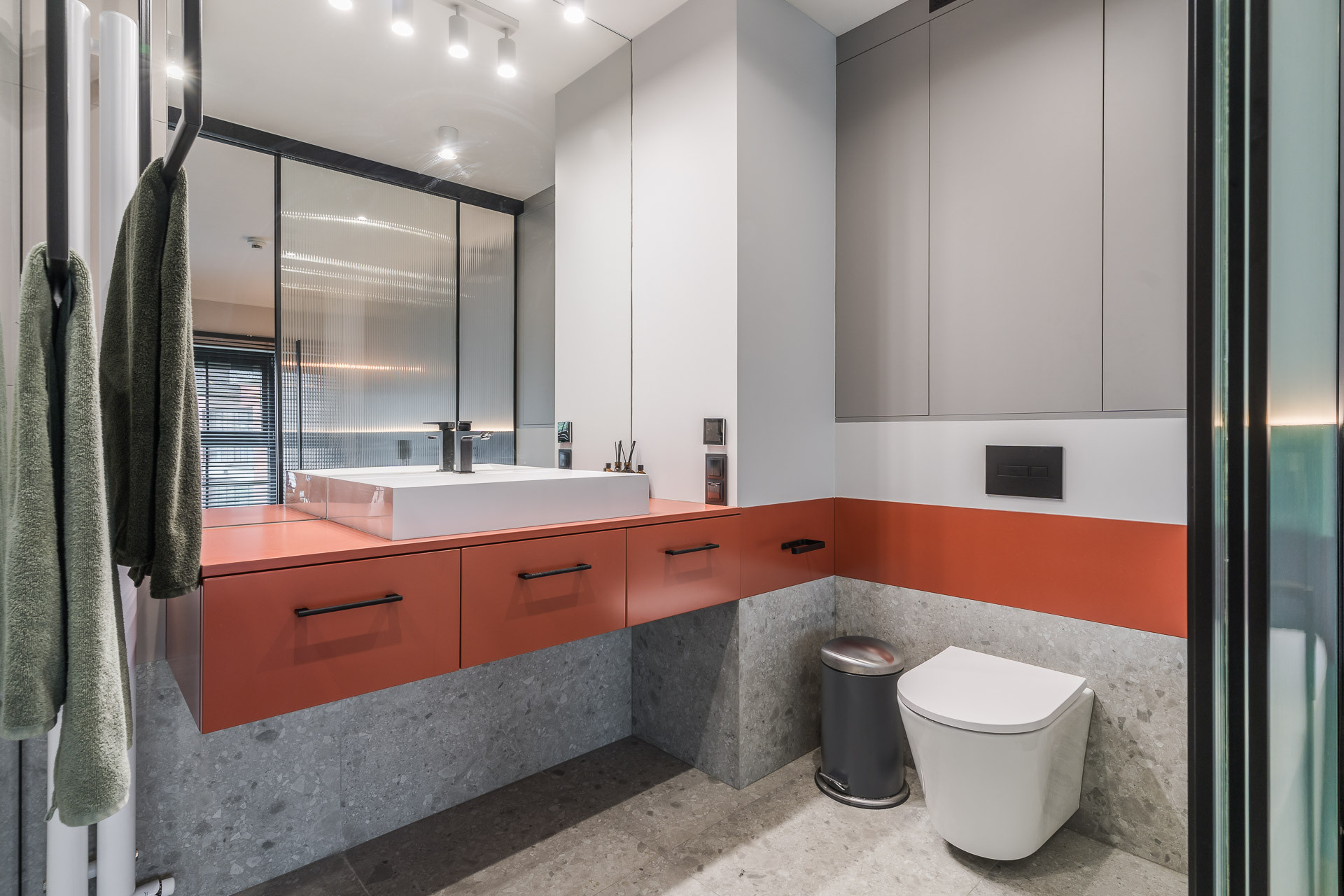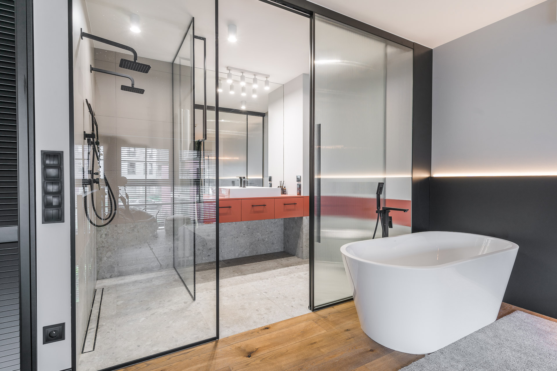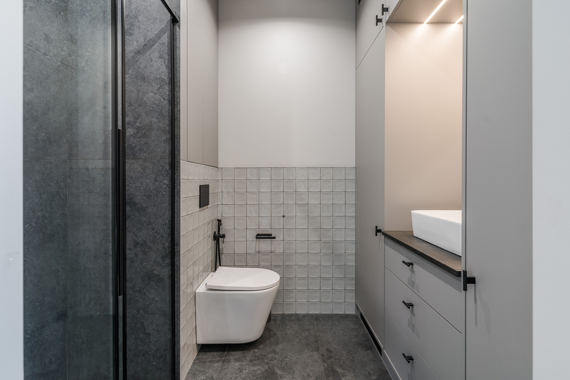 – łazienka z prysznicem (pralka i suszarka w zabudowie)
