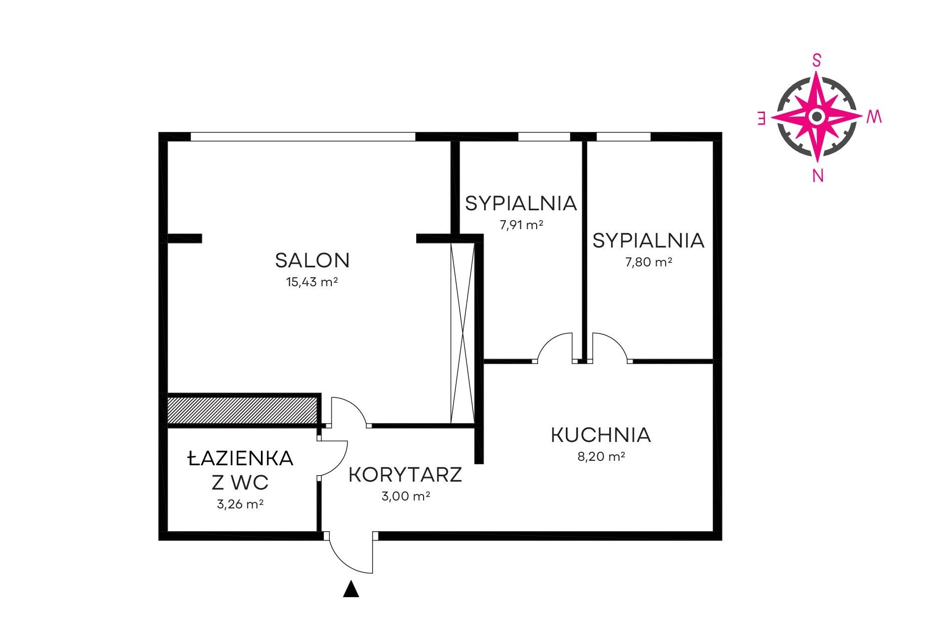 – 2 sypialnie (7,91 m2 oraz 7,80 m2),