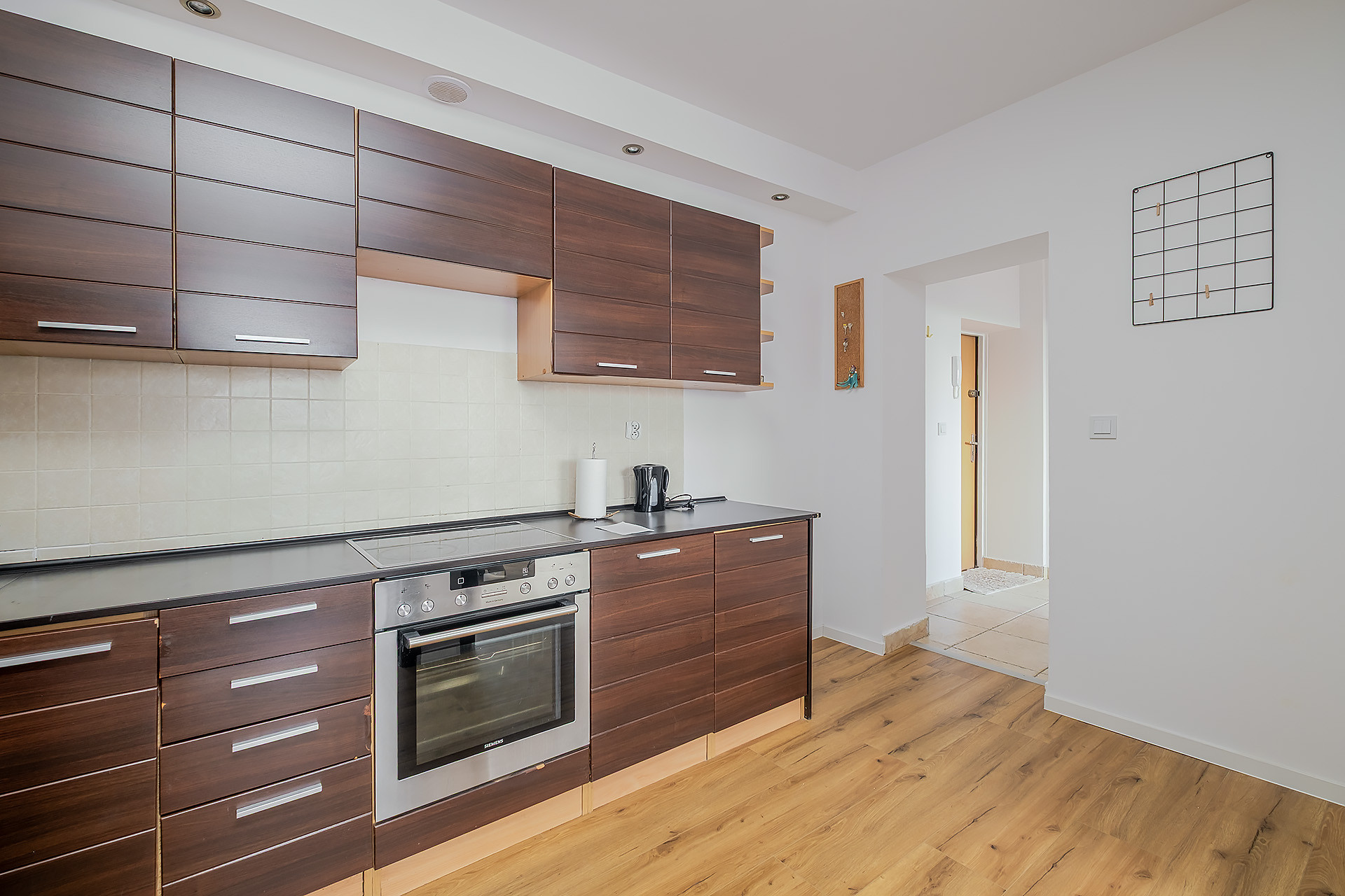 – kuchnia (8,20 m2) z meblami w zabudowie i wyposażeniem w sprzęt AGD,