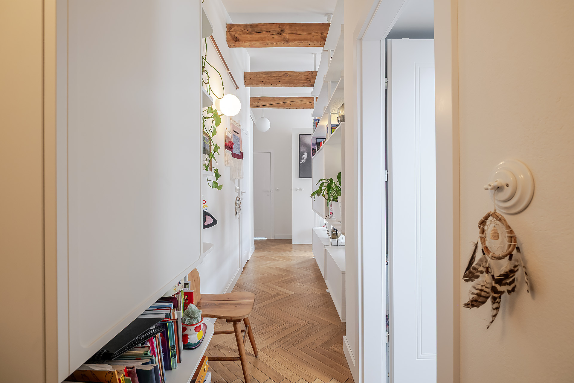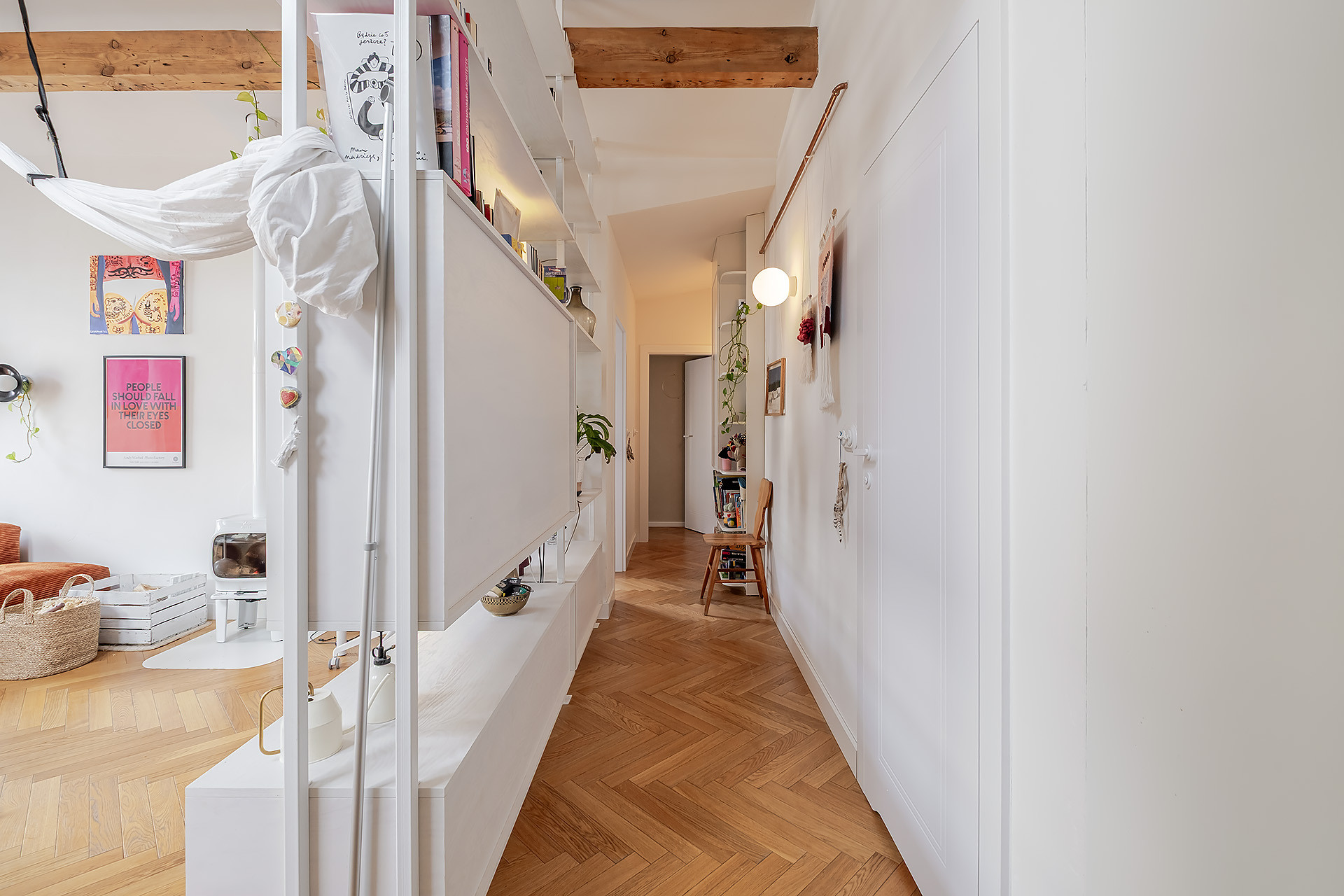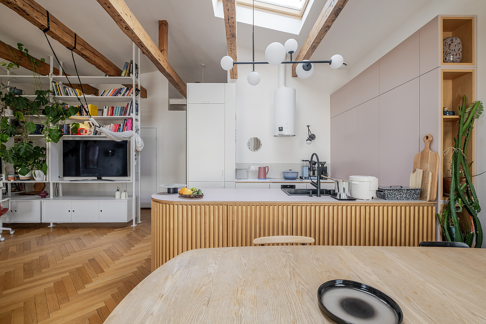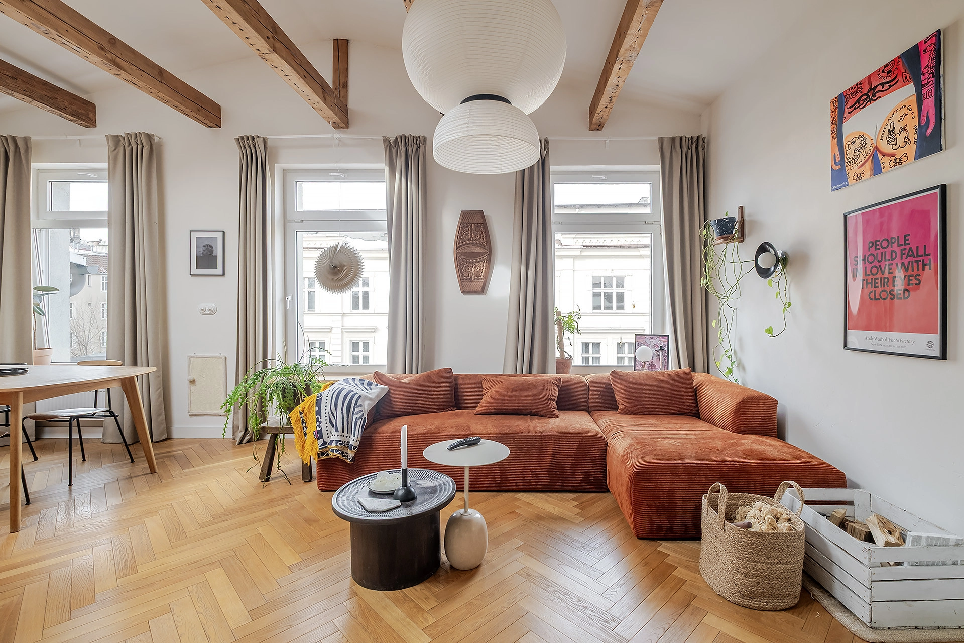 Niezwykłym atutem tego mieszkania jest jego zróżnicowana wysokość, doskonałe naświetlenie i niewątpliwie standard wykończenia. W przestrzeni dziennej mamy również możliwość korzystania z nowoczesnego i bardzo wydajnego kominka JOTUL.