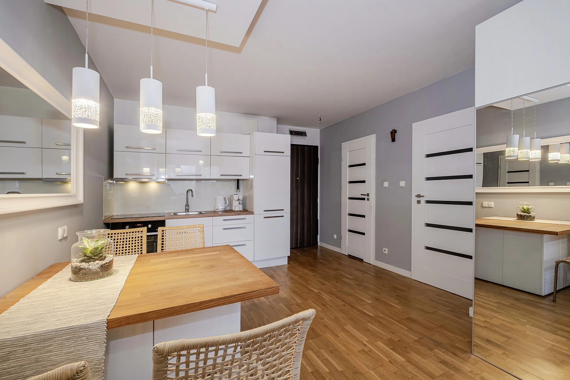 W cenie nieruchomości pozostaje zabudowa kuchenna z AGD, meble w salonie oraz zabudowa garderoby.