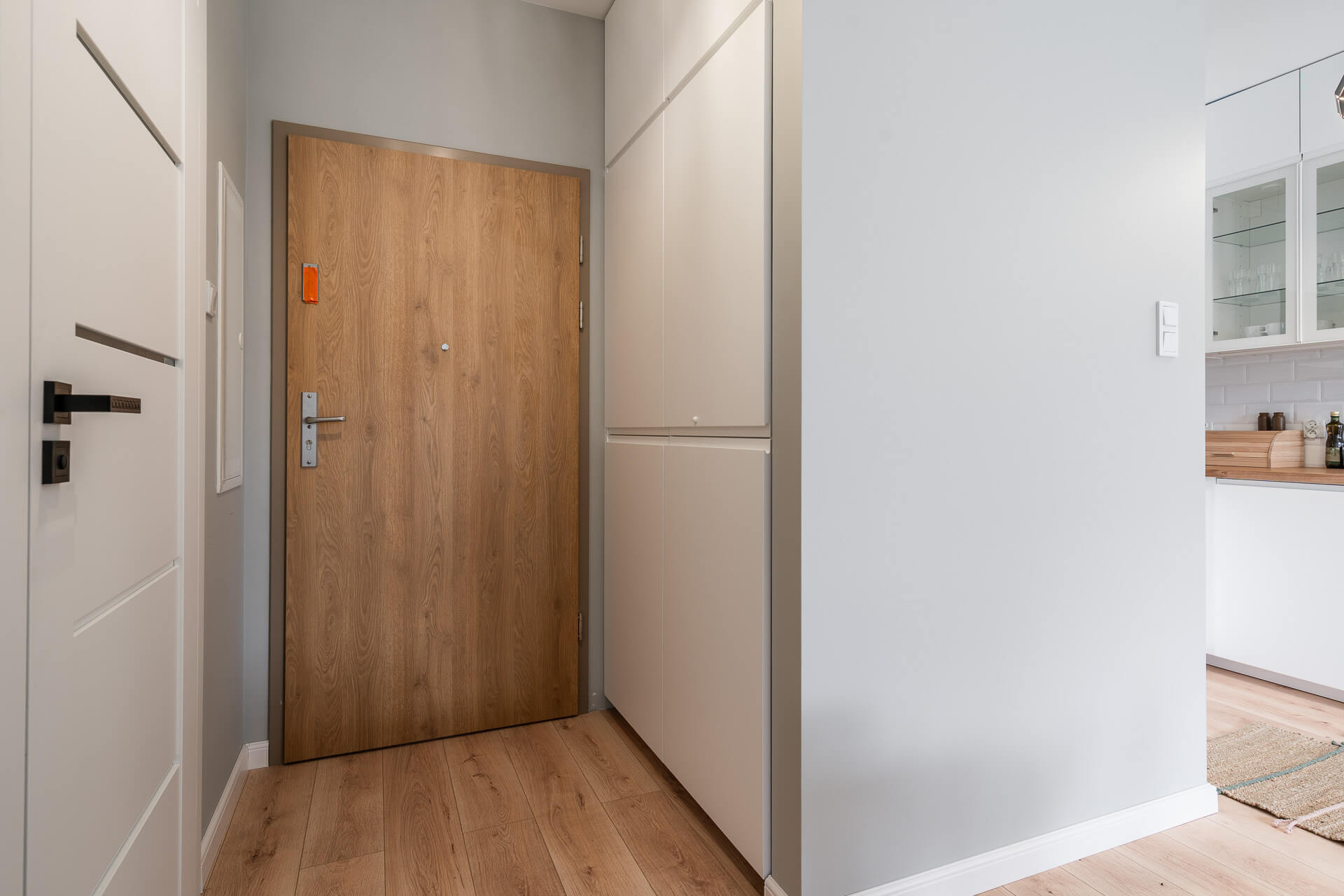 – przedpokój- wyposażony w szafę co zapewnia dodatkową przestrzeń do przechowywania.