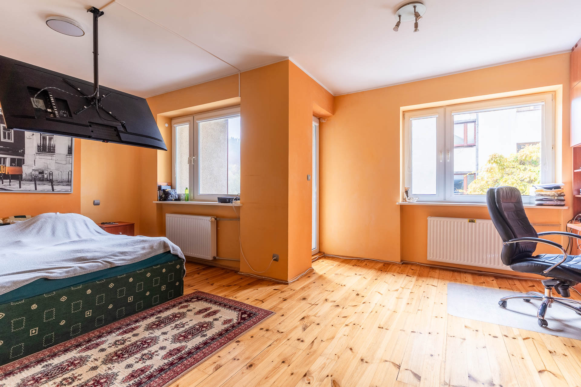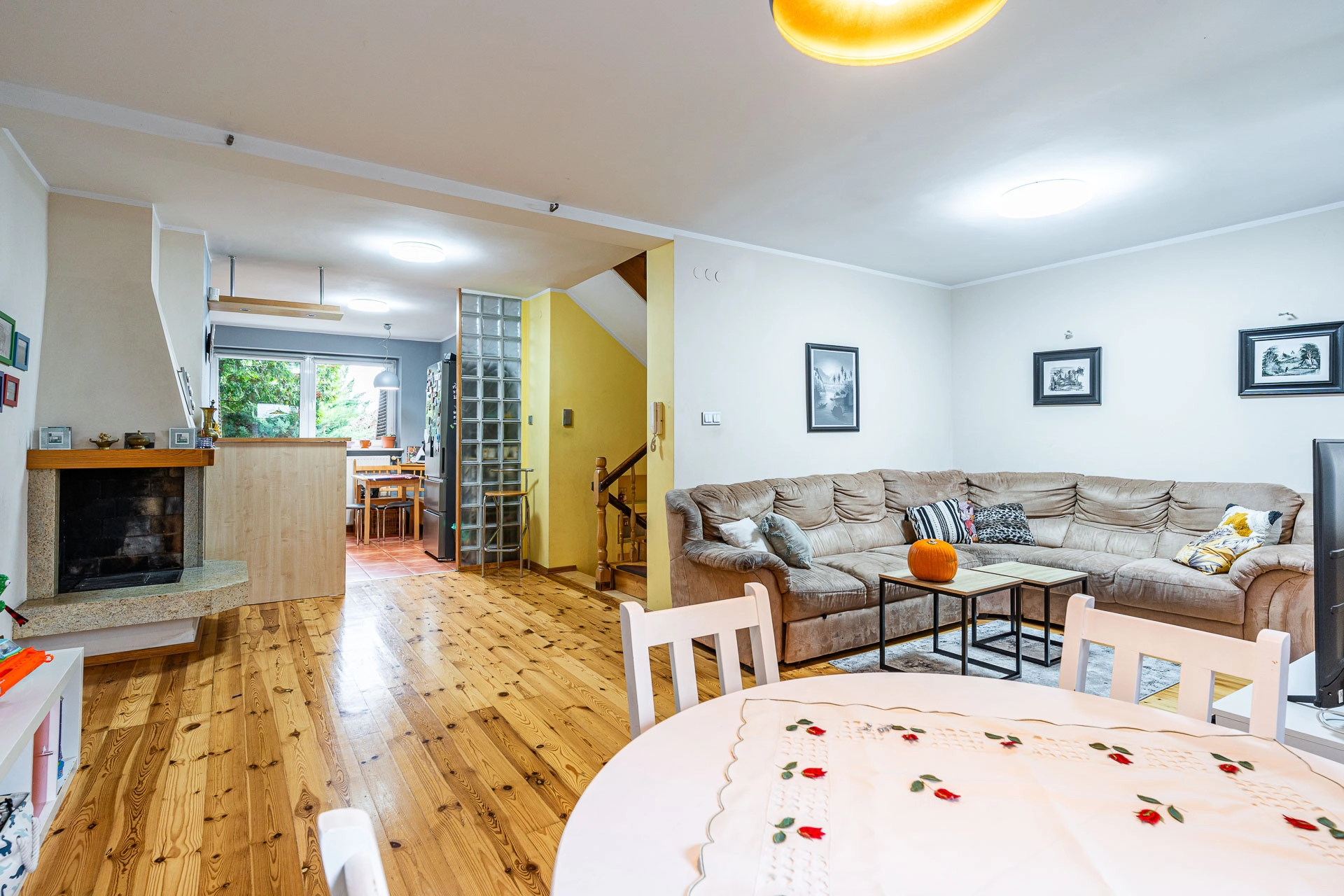 W skład domu wchodzi przestronny salon połączony z aneksem kuchennym, z którego jest bezpośrednie wyjście na ogród. Na pozostałych kondygnacjach znajduje się pięć sypialni, w tym dwie posiadające własne balkony, trzy łazienki oraz praktyczna garderoba. Dodatkowym atutem jest drugi, mniejszy ogródek znajdujący się z przodu nieruchomości, od strony wejścia do domu.