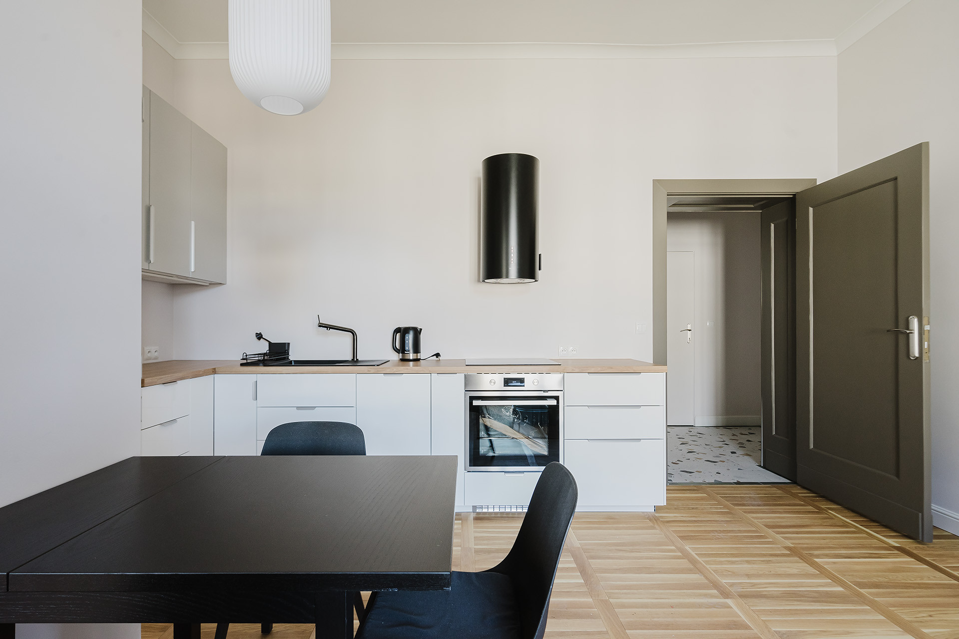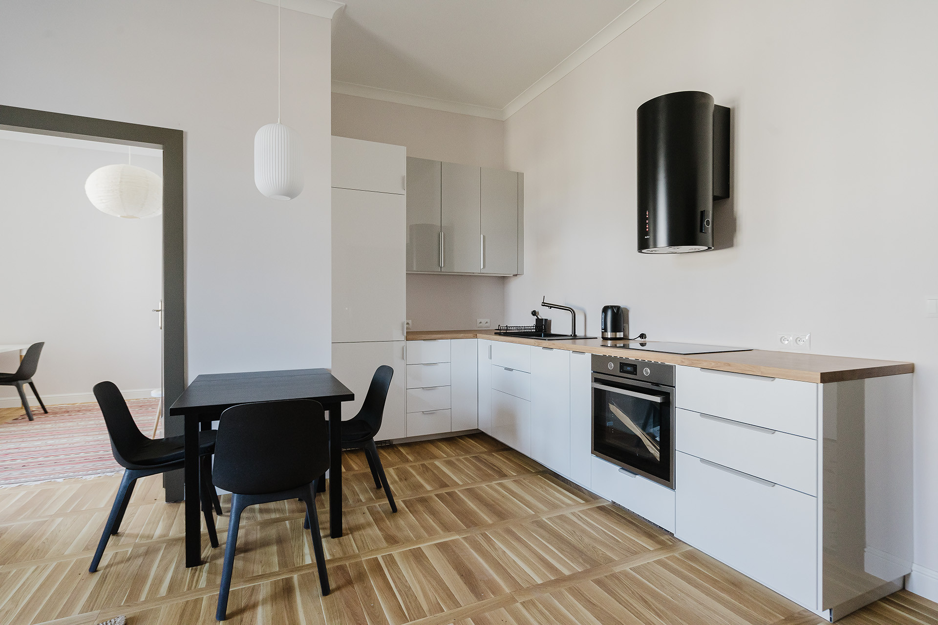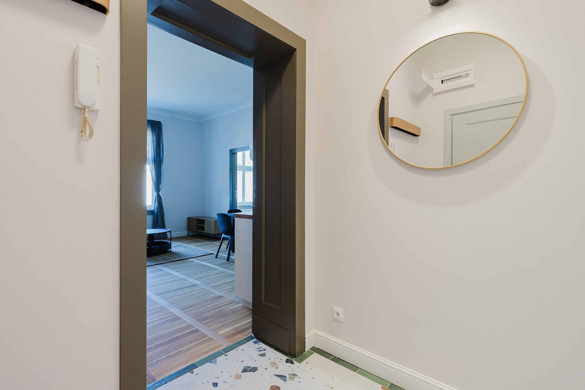 Mieszkanie przeszło kompleksowy remont – zostało starannie wykończone przy użyciu wysokiej jakości materiałów. Podłogi wyłożone drewnianymi deskami oraz kaflami. Wysokość wnętrz: 2,65 m. Ogrzewanie i ciepła woda pochodzą z sieci miejskiej. W lokalu wymieniono wszystkie instalacje (elektryczną oraz wodno-kanalizacyjną), położono nowe tynki i podłogi, zamontowano nowe drzwi.