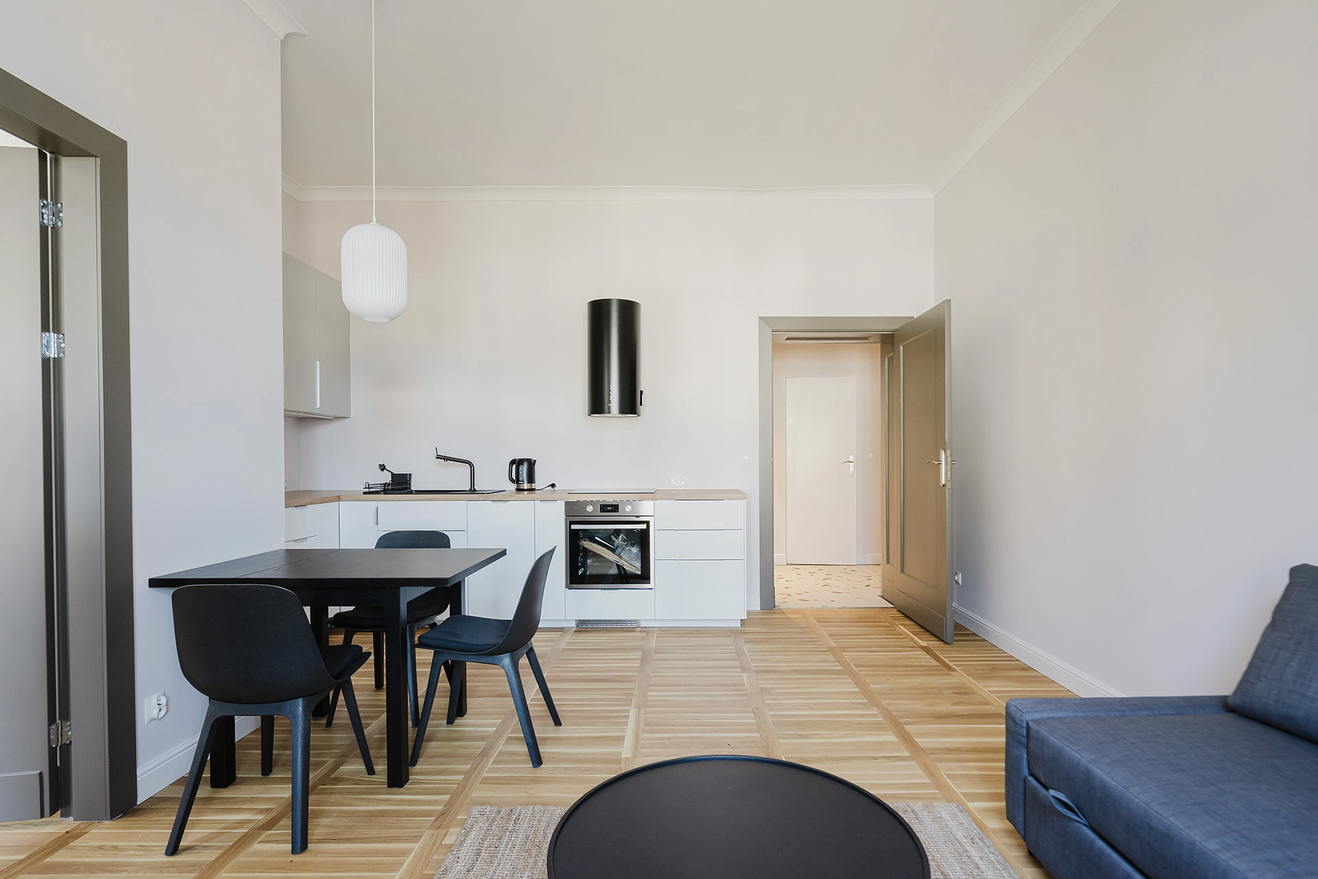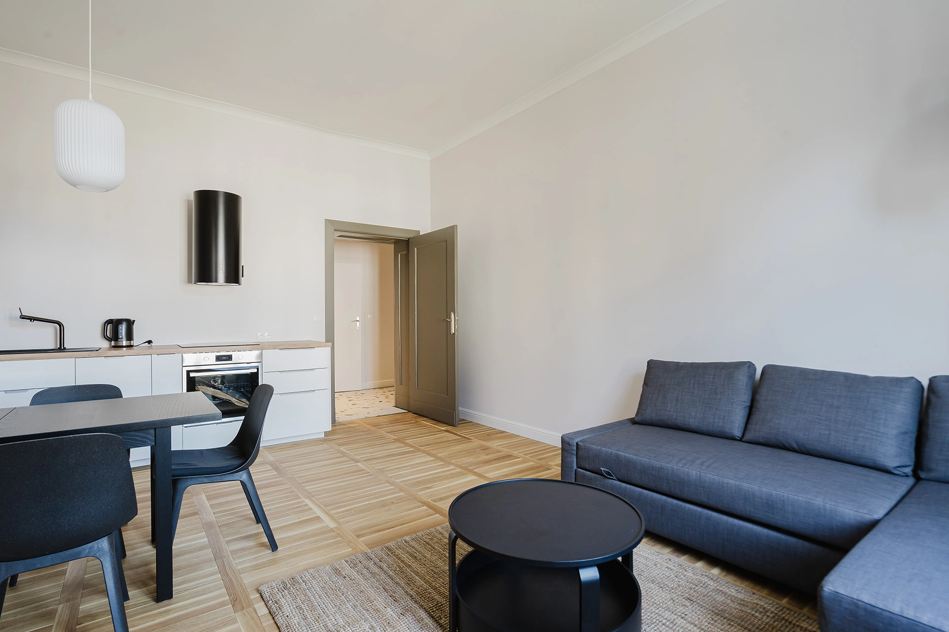 salon połączony z kuchnią w formie aneksu,