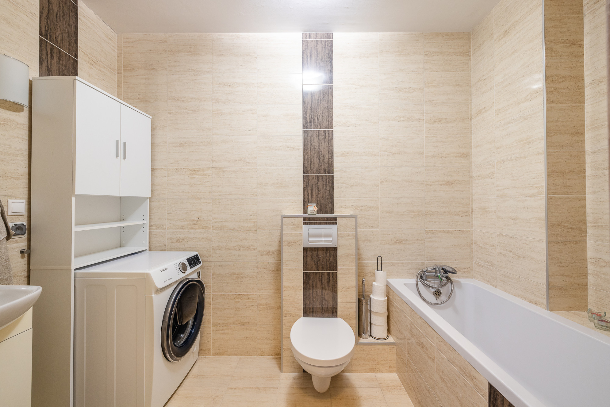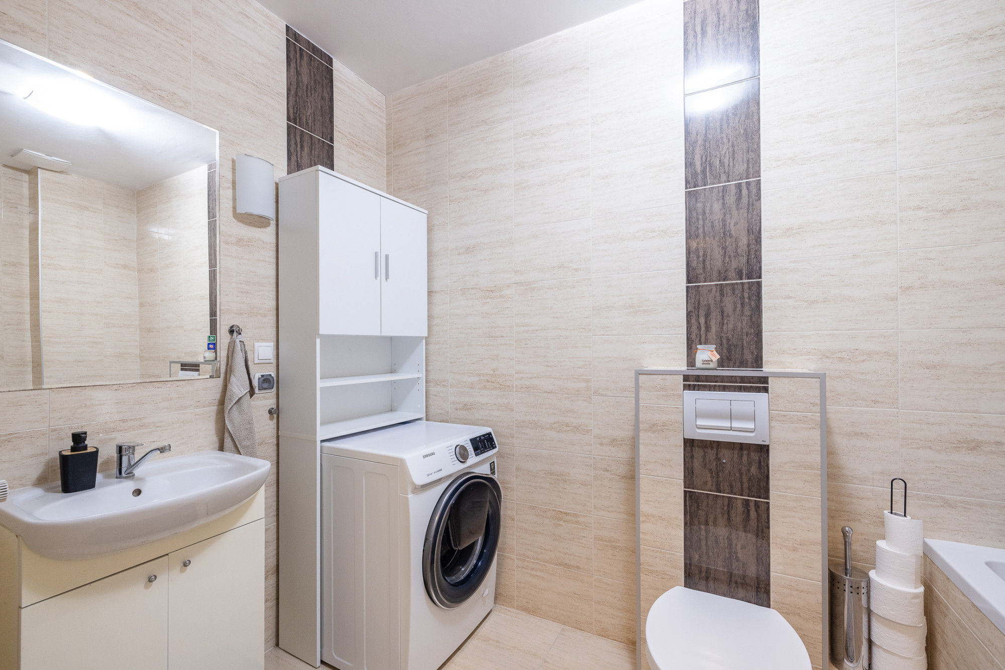 – łazienka z WC, wanną, umywalką, grzejnikiem drabinkowym