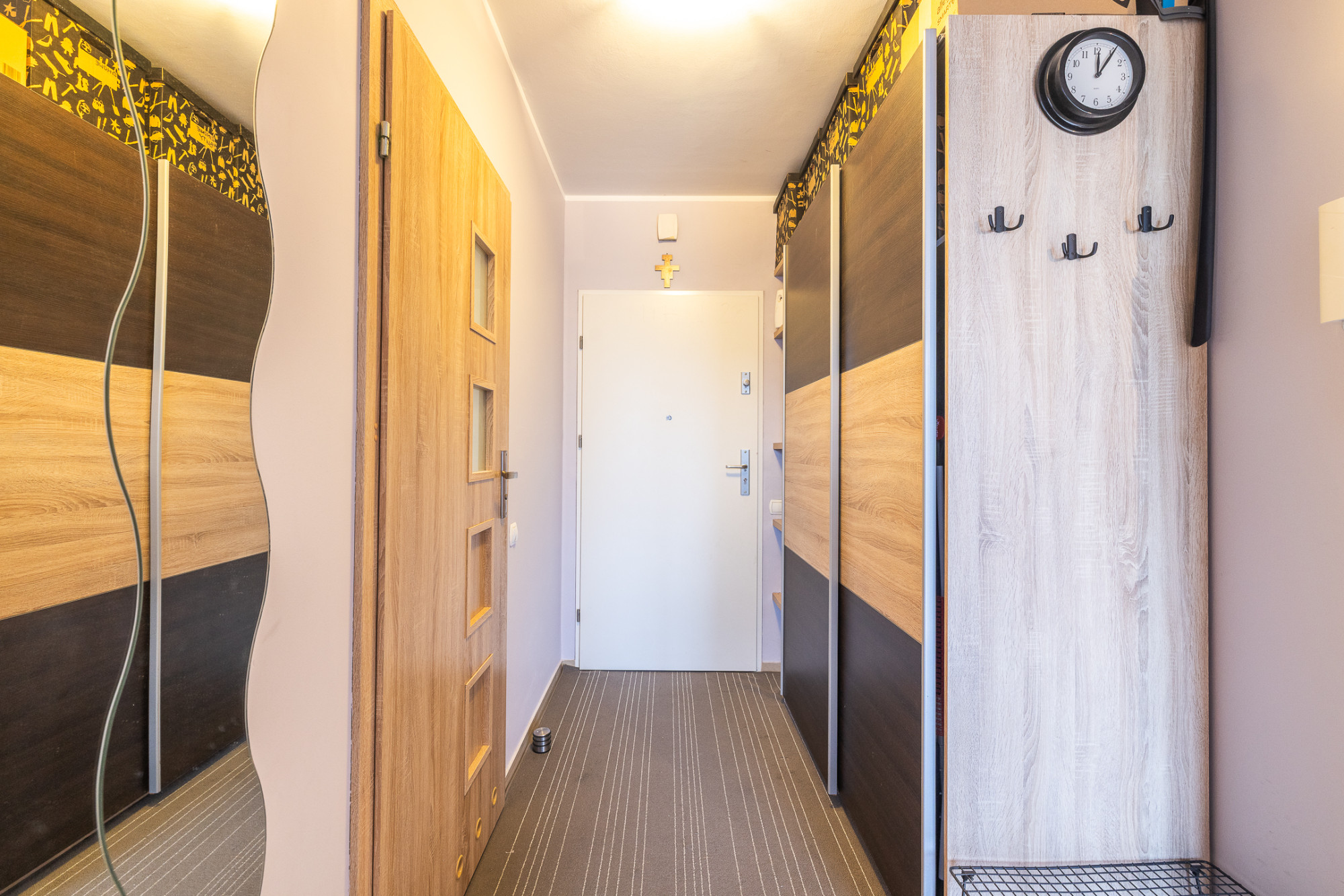 Mieszkanie jest wykończone i gotowe do wprowadzenia bez konieczności ponoszenia większych nakładów finansowych. Na podłogach znajdziemy panele oraz płytki. Wysokość pomieszczeń: 2,60 m.