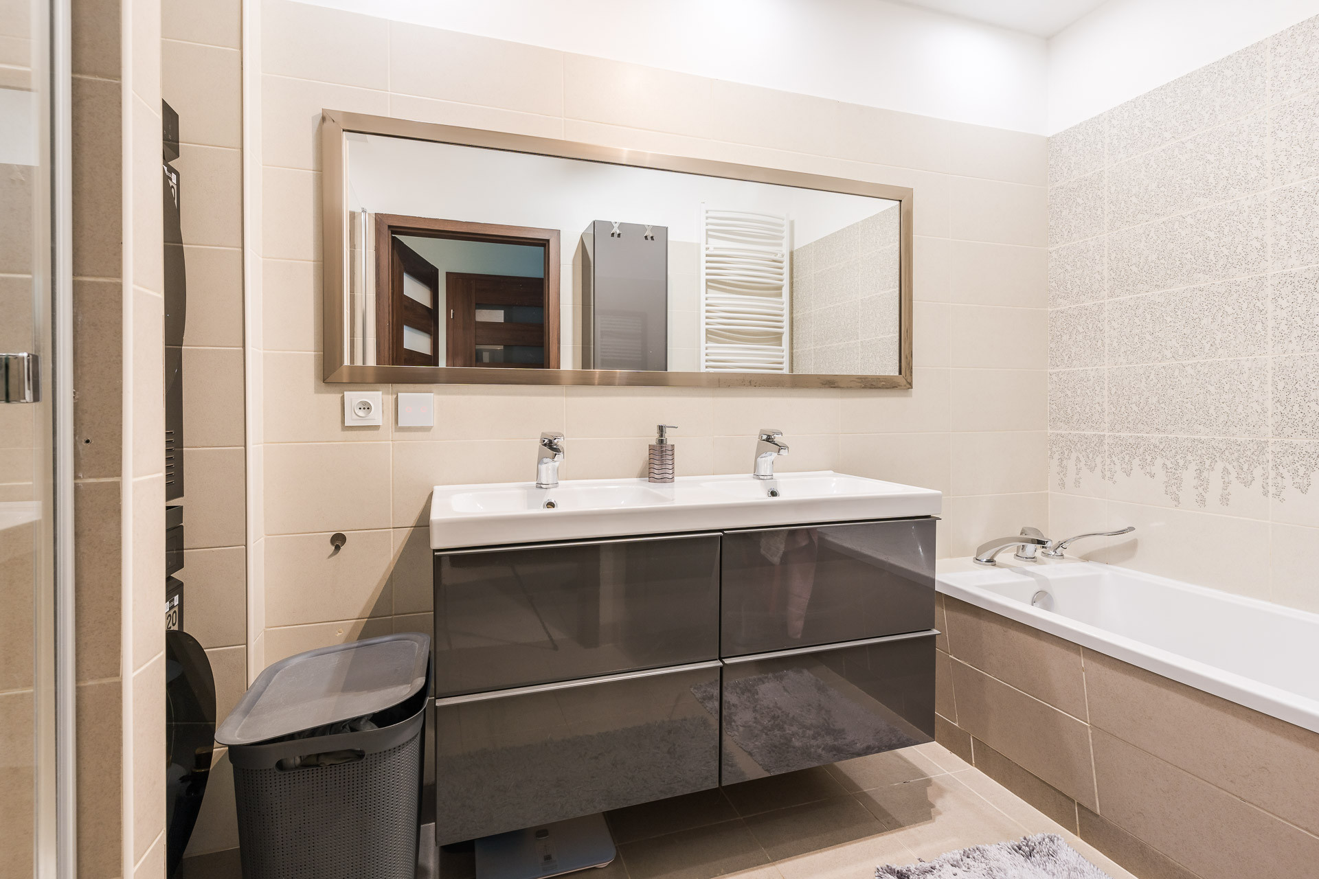 – Dużej łazienki z prysznicem i wanną