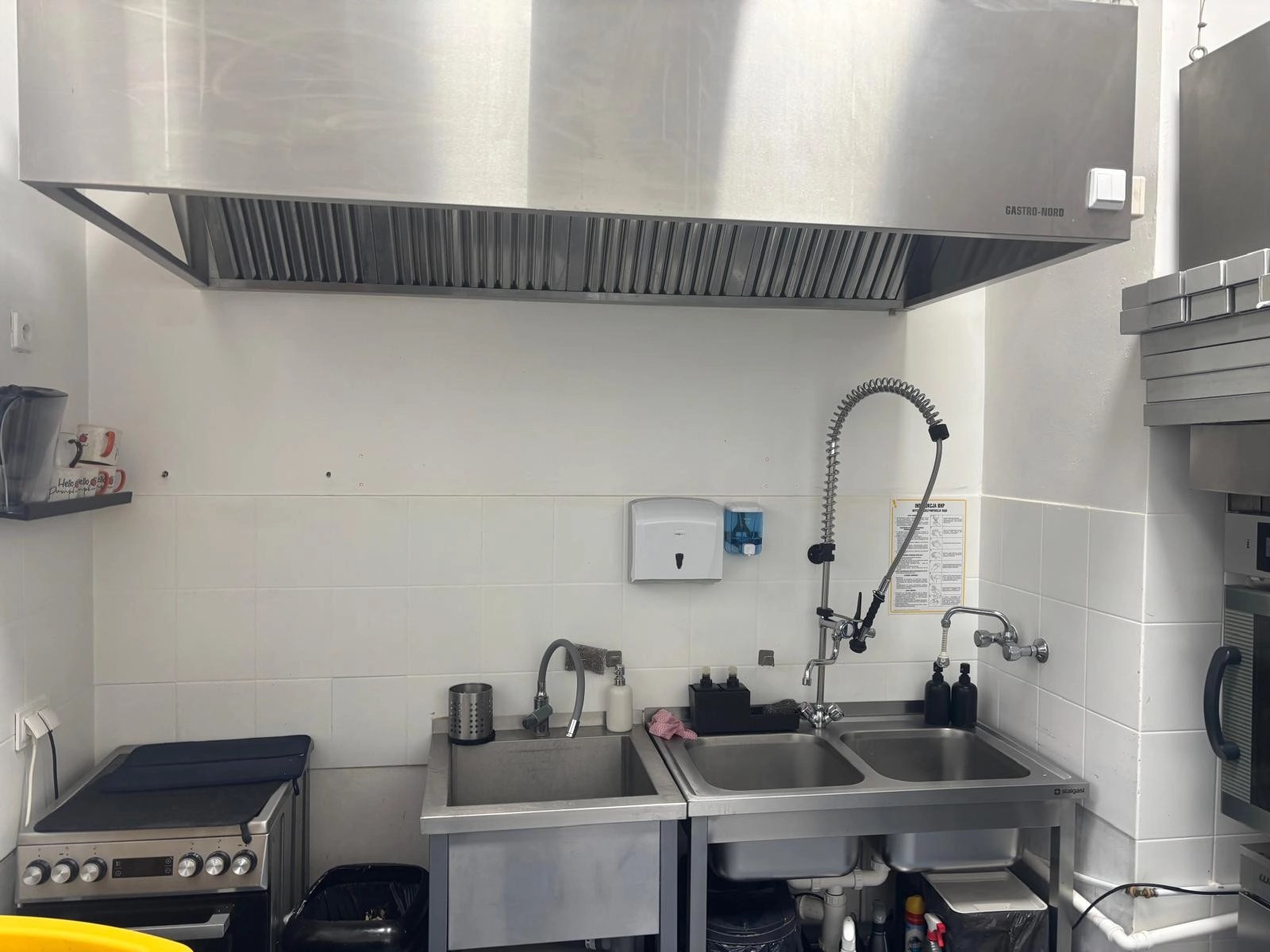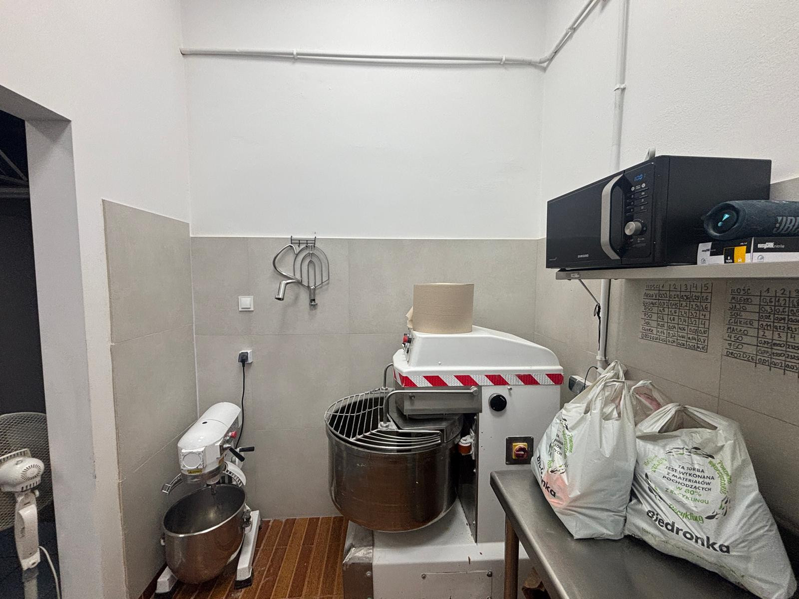 Lokal po remoncie posiadający wszystkie niezbędne zgody do prowadzenia działalności gastronomicznej (Sanepid, Spółdzielnia, kominiarz) – trzy kanały wentylacyjne szczelne z wkładami. dwa odpływy kanalizacyjne, wysokie 365 cm pomieszczenia. Ostatni rodzaj działalności to produkcja ciastek. Możliwość pozostawienia dużej części wyposażenia przez poprzedniego najemcę (sprzedaż do uzgodnienia). Powierzchnia lokalu opisana w księdze wieczystej to 83,22 m2.