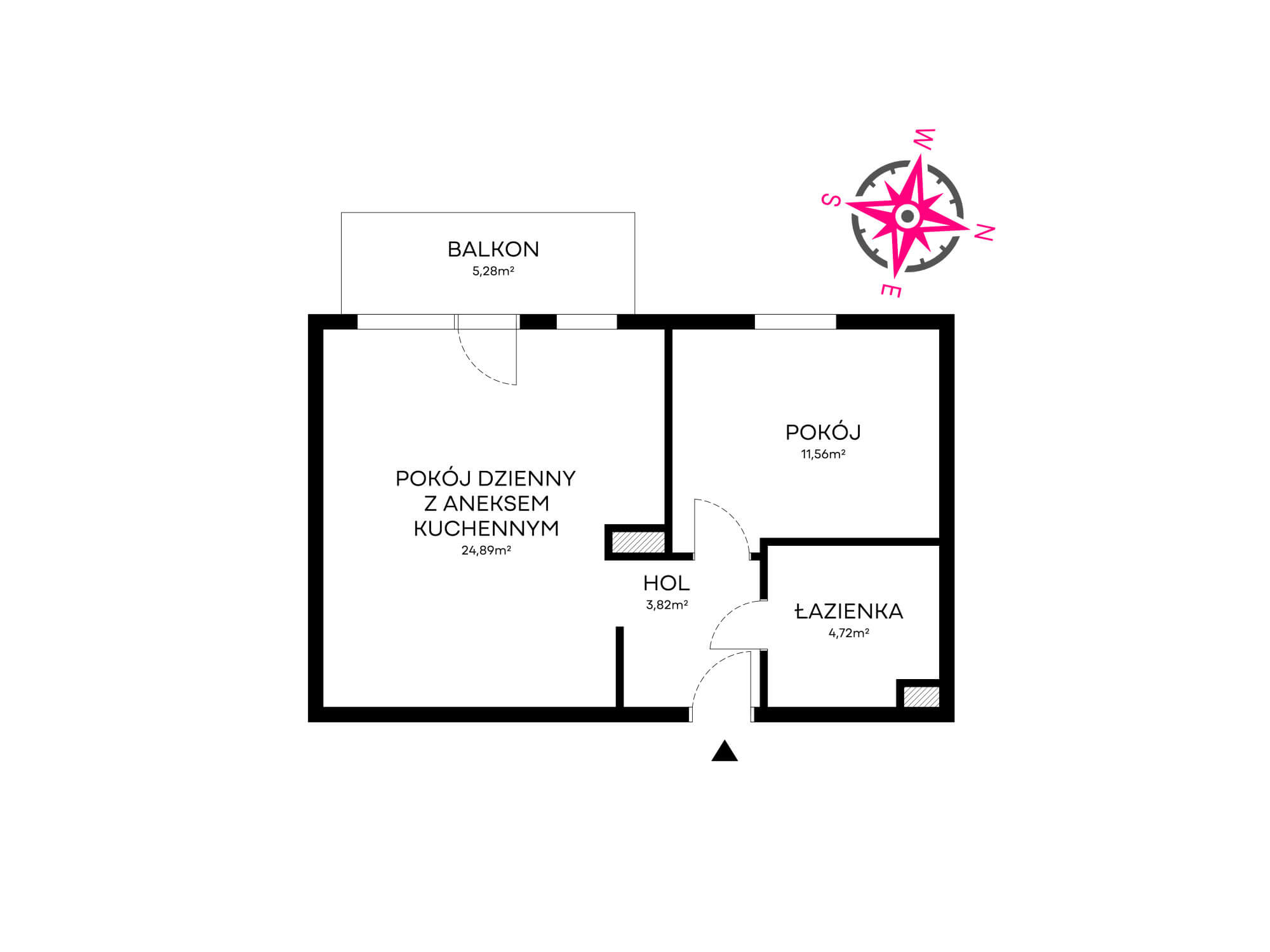 – salonu z aneksem kuchennym 24,89m² z wyjściem na duży balkon typu loggia 5,28m²