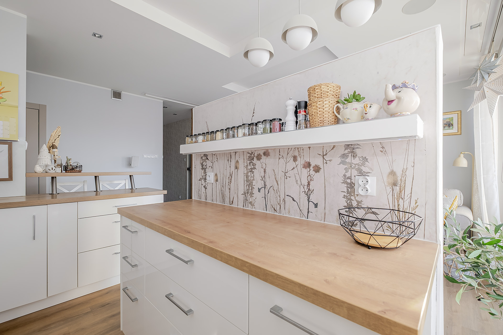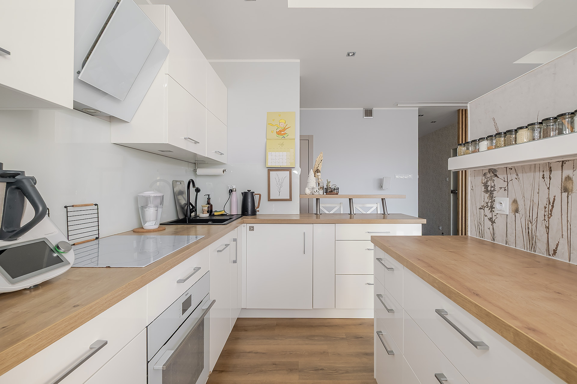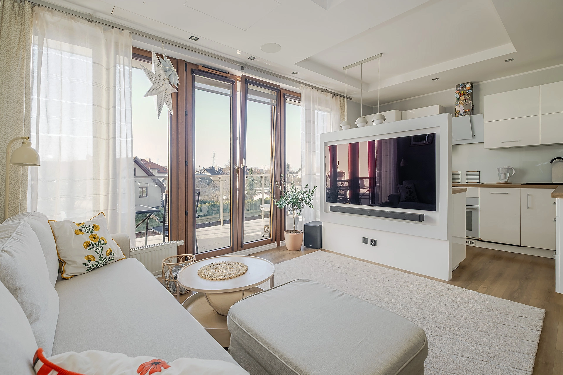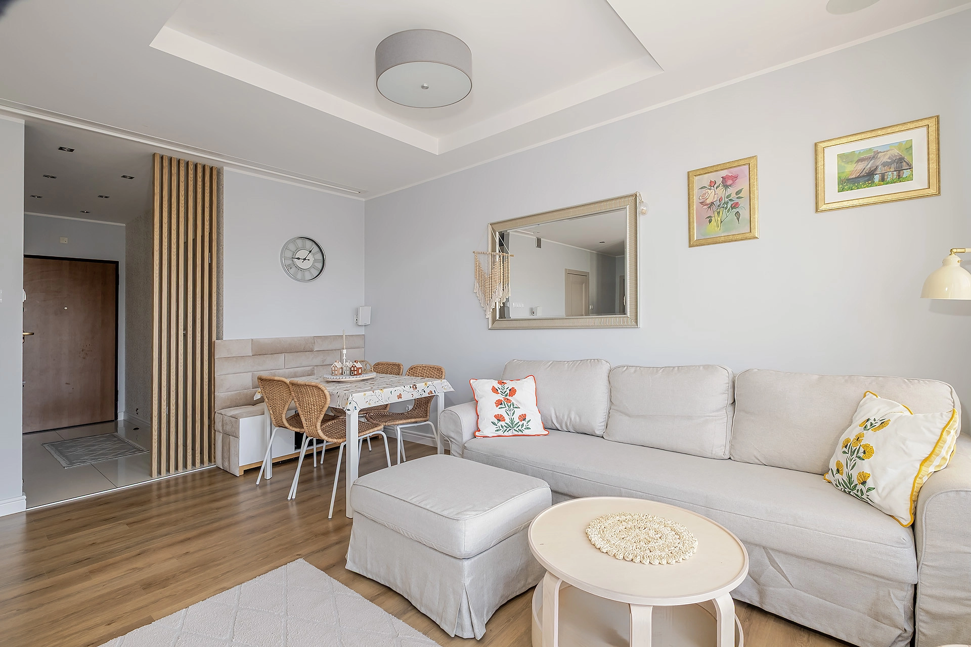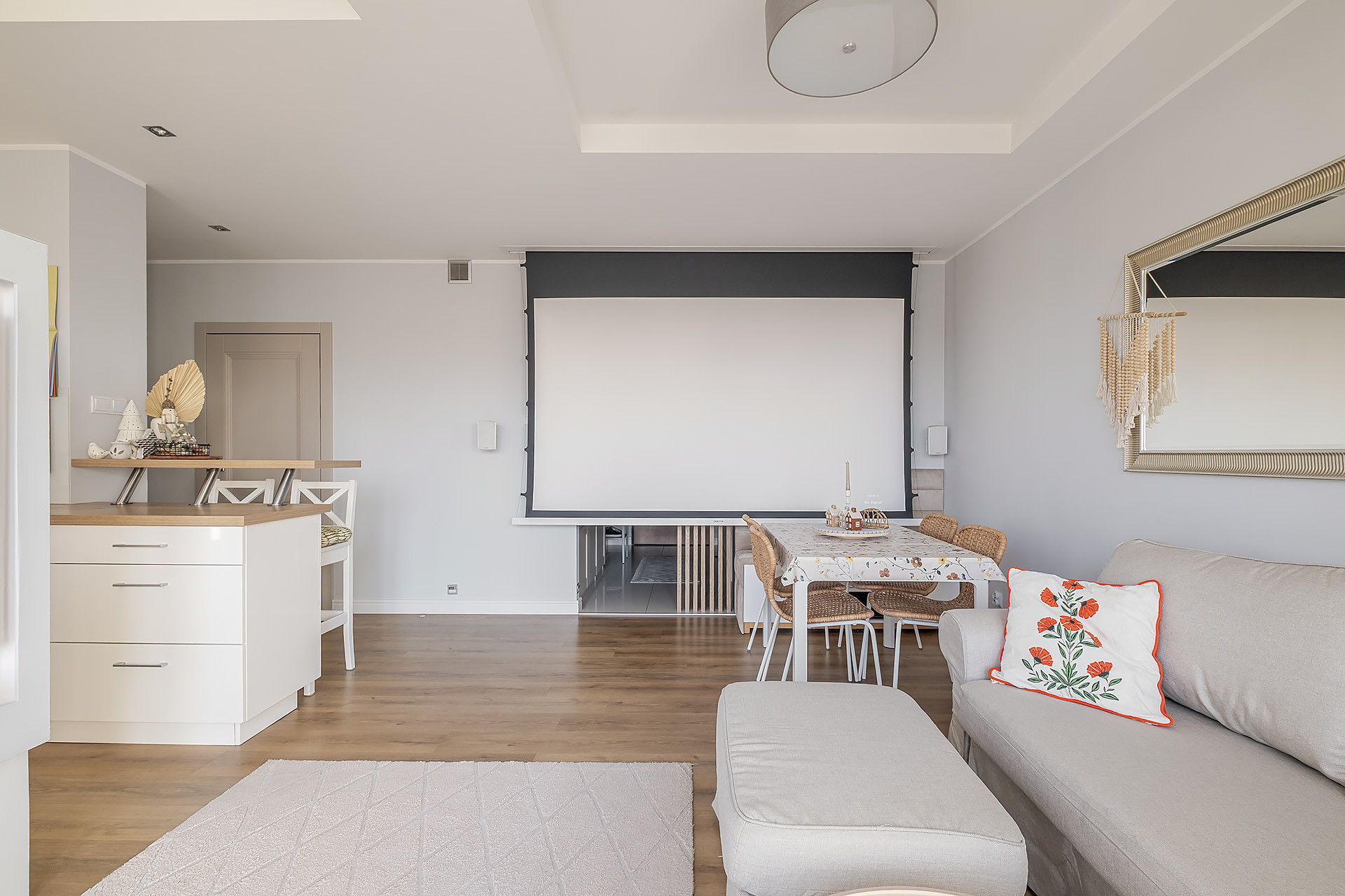 Aneks kuchenny został wyposażony w meble wykonane na wymiar oraz pełne AGD. Ogrzewanie pochodzi z sieci miejskiej. Stolarka okienna PCV. Wyposażenie mieszkania pozostaje do uzgodnienia.