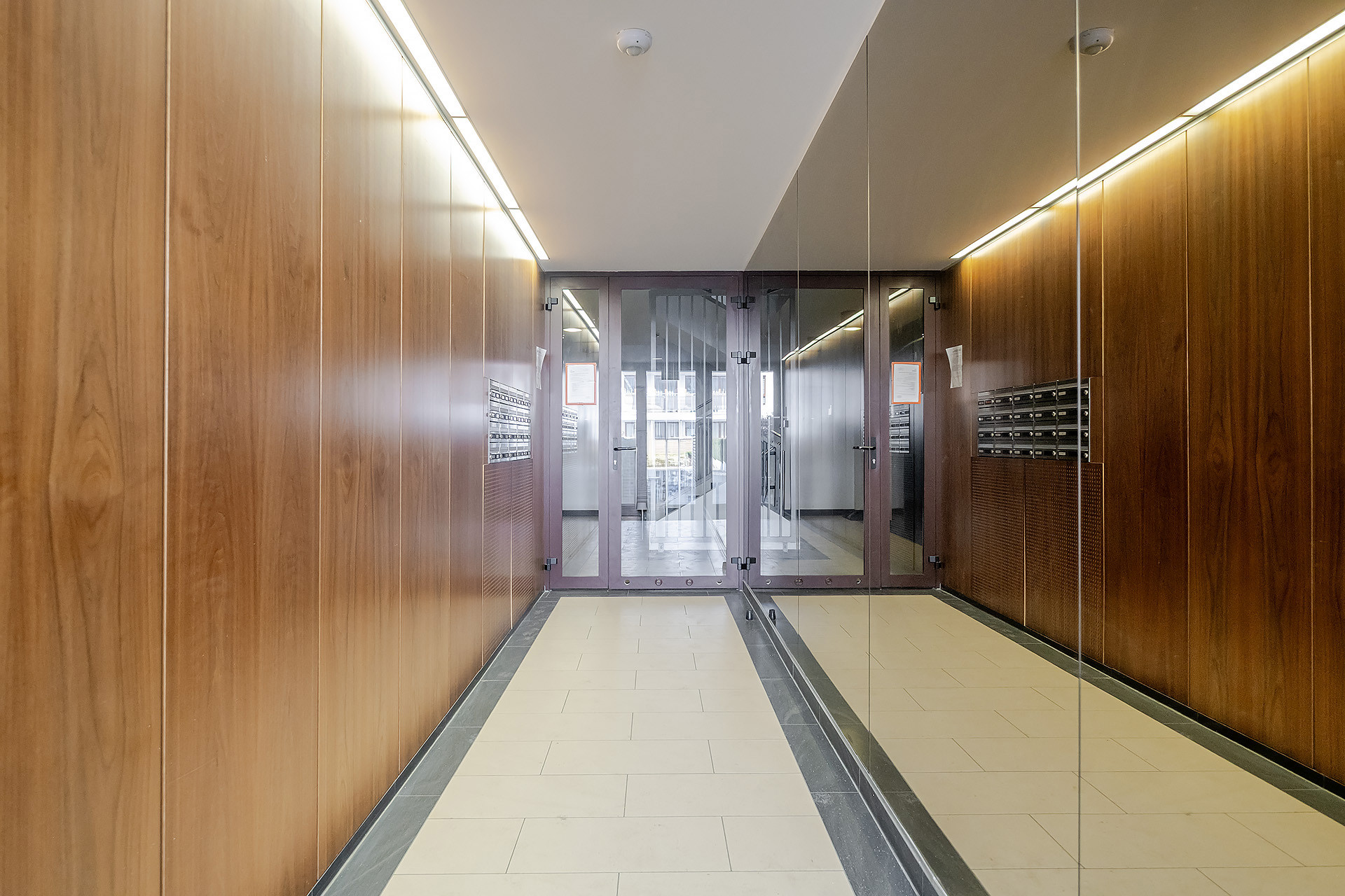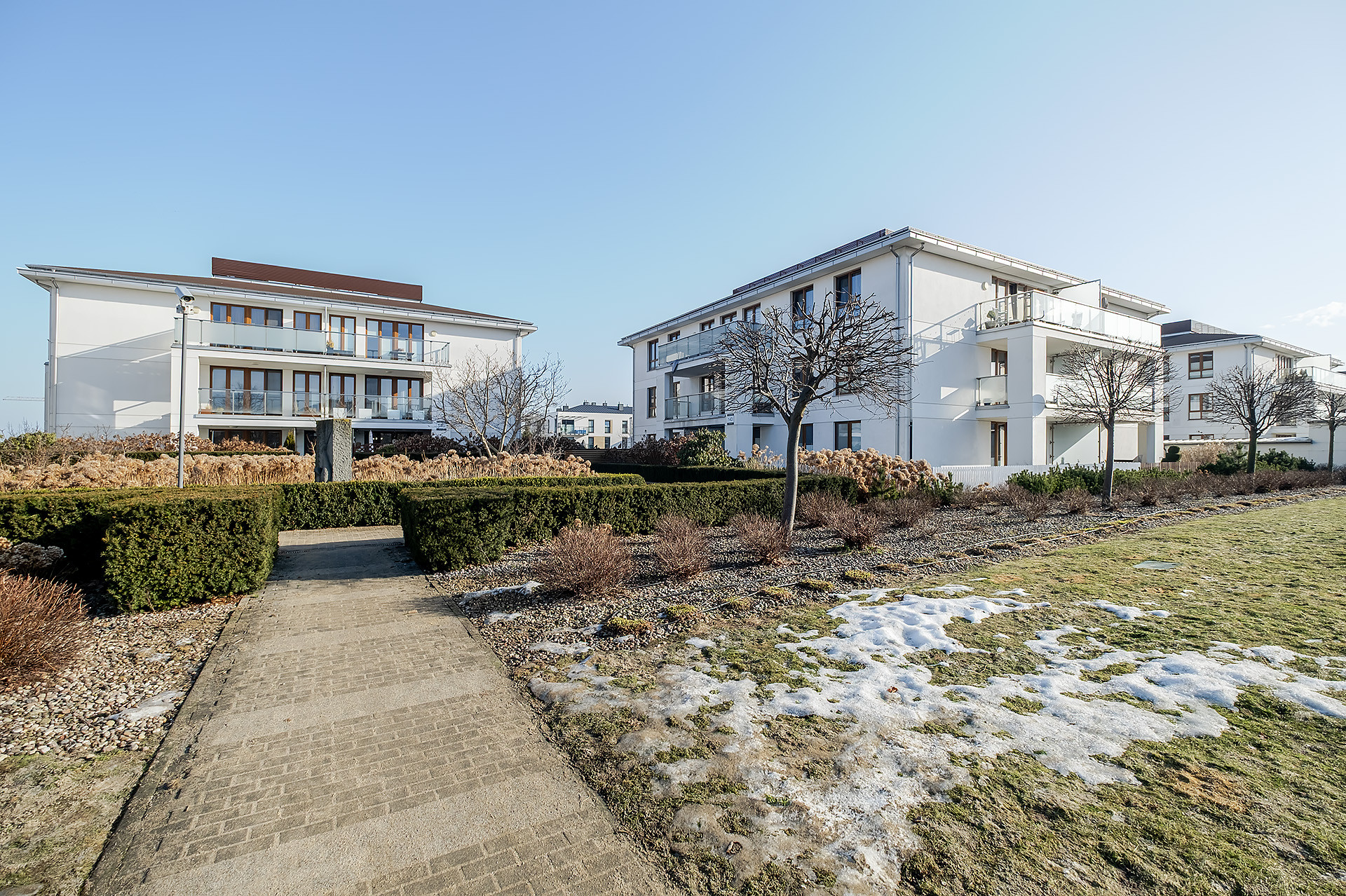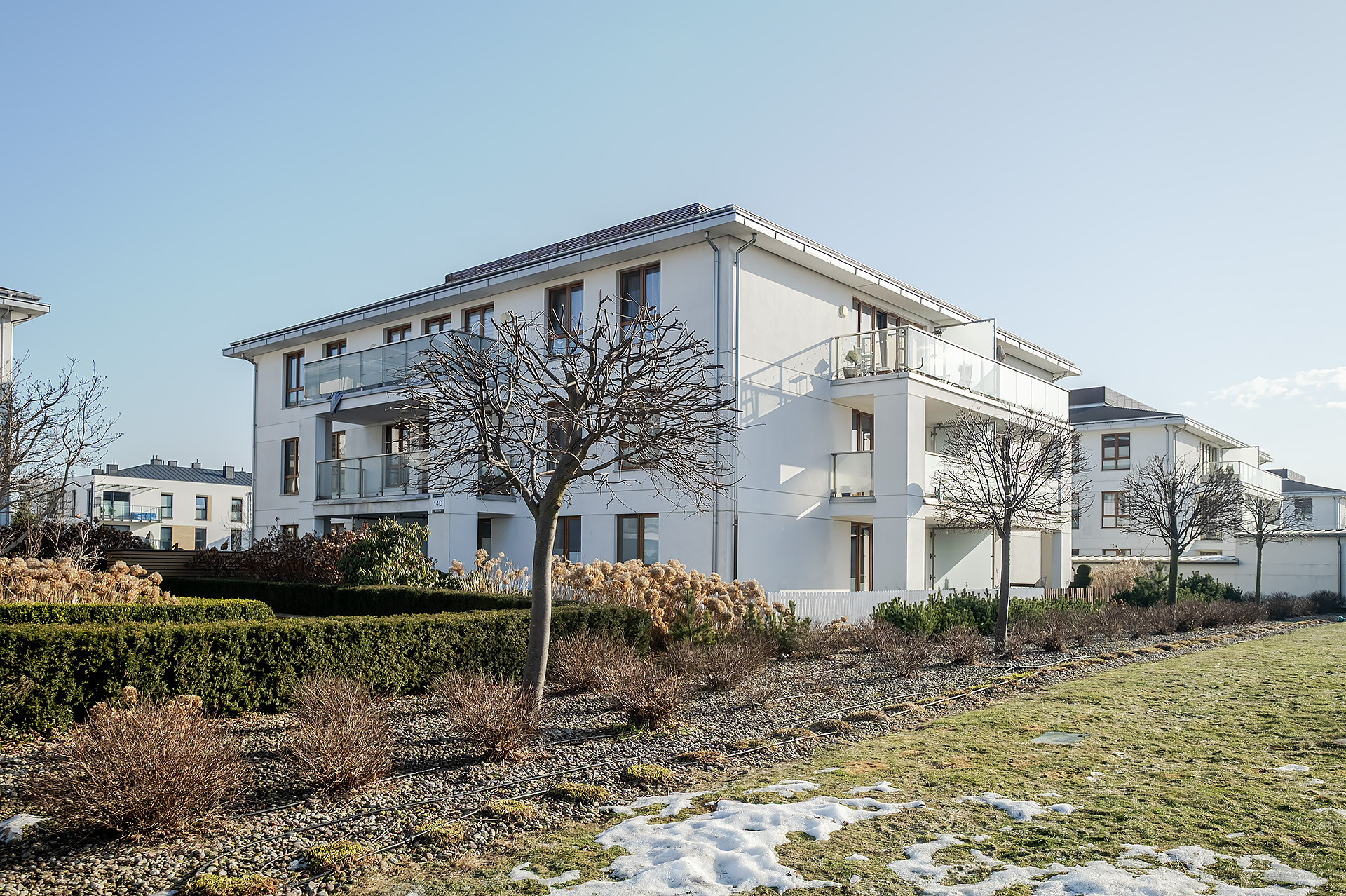 Nowoczesny, niski, trzypiętrowy budynek mieszkalny został wybudowany z wysokiej klasy materiałów i znajduje się w doskonałym stanie technicznym oraz wizualnym. Inwestycja cechuje się kameralną zabudową oraz zadbanymi i eleganckimi częściami wspólnymi. Budynek wyposażony jest w cichobieżną windę, monitoring oraz halę garażową. Osiedle objęte jest ochroną i stałą opieką ogrodników.Wejście na teren posesji zabezpieczone jest furtką, a klatka schodowa domofonem. Klatka jest czysta, estetyczna i monitorowana.