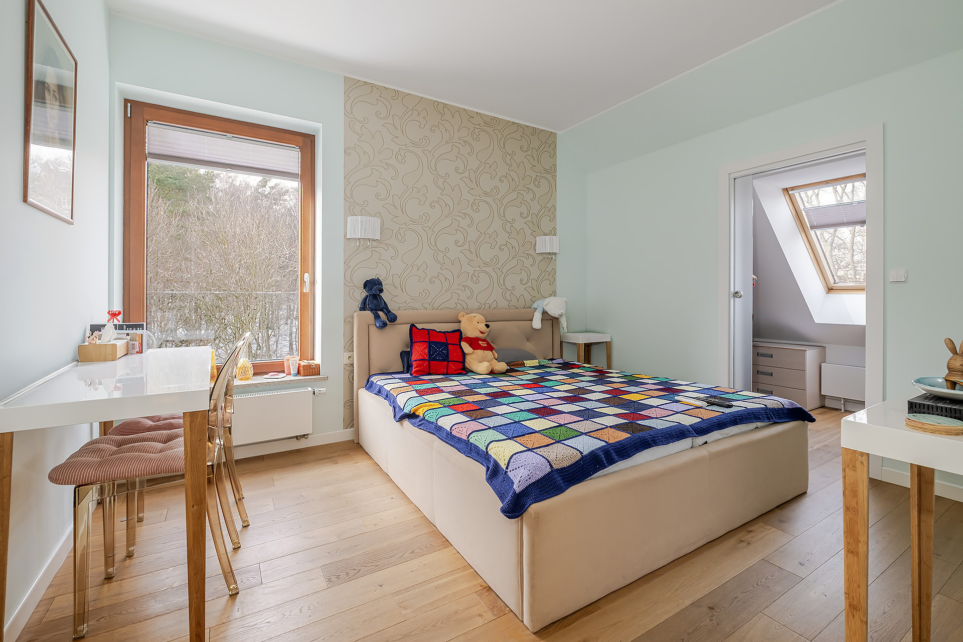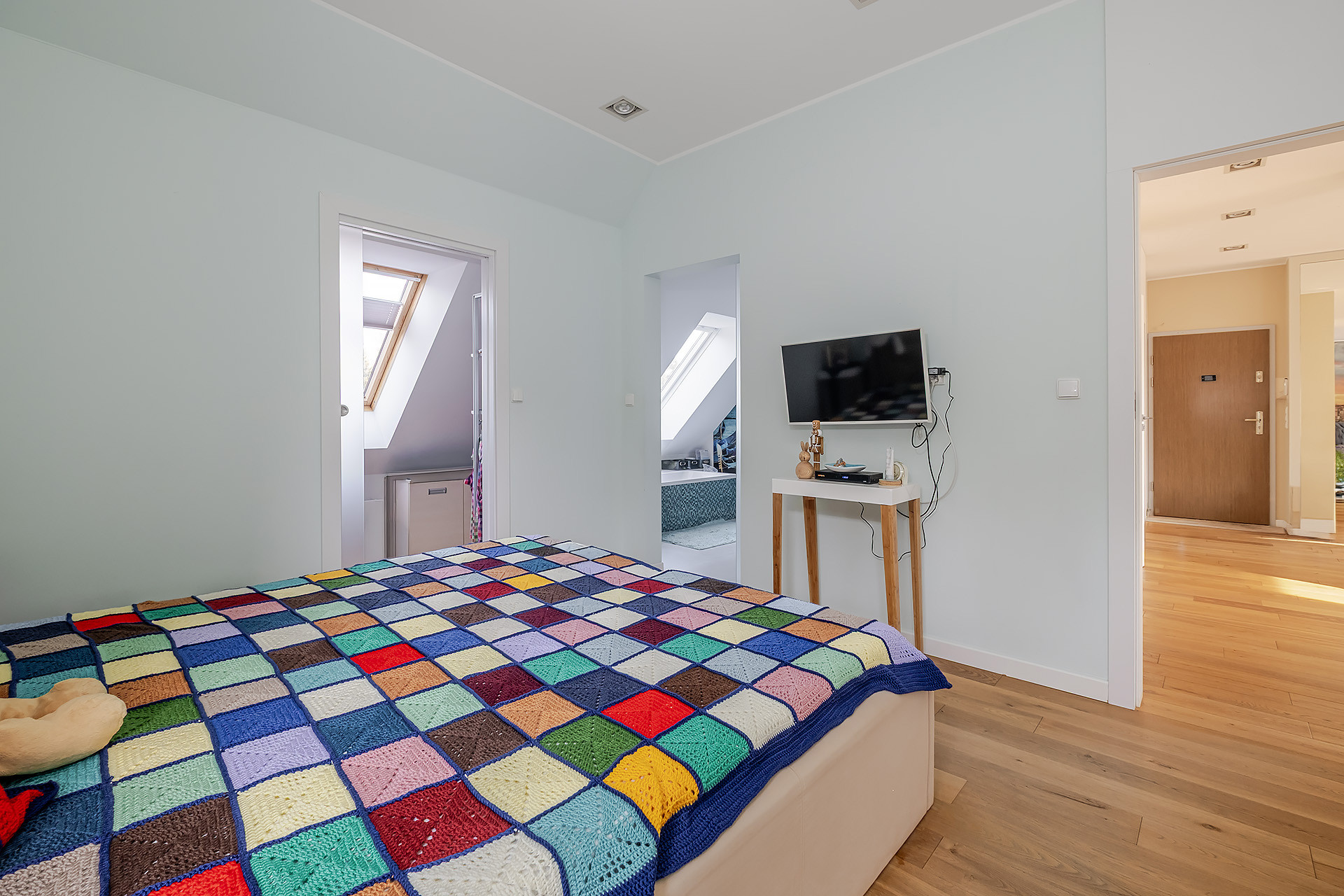 – sypialnię z garderobą oraz własną łazienką z wanną;