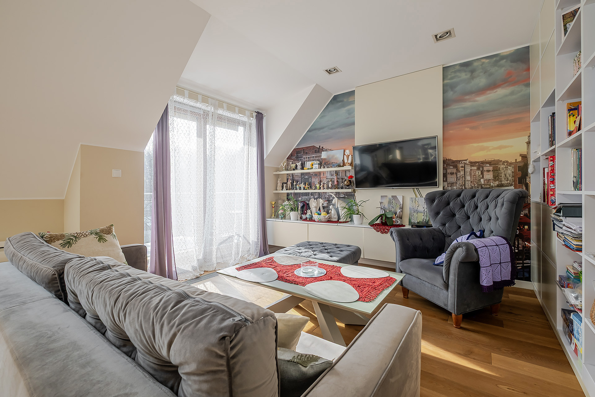 Mieszkanie usytuowane jest na trzecim piętrze kameralnego budynku o podwyższonym standardzie, który mieści 16 lokali mieszkalnych. Willa Ułańska wyróżnia się ponadczasową architekturą oraz starannie dobranymi materiałami, które nadają jej reprezentacyjny charakter. Części wspólne zaprojektowano z naciskiem na elegancję, tworząc spójną, nowoczesną przestrzeń o wysokiej jakości wykończenia.
