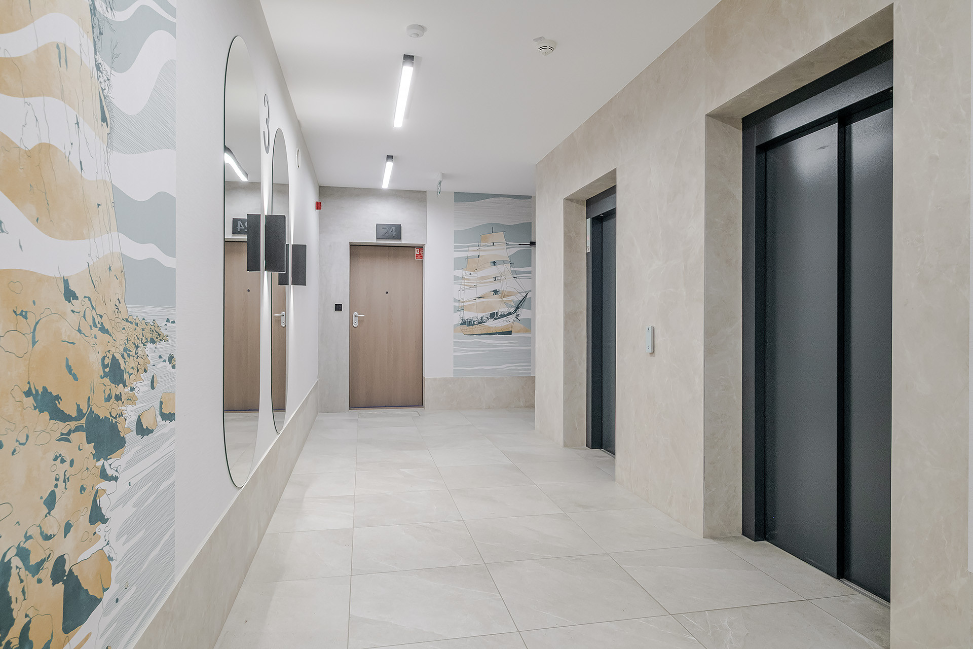 17- sto piętrowy apartamentowiec wzniesiony w 2023r. Wejść do budynku możemy dzięki drzwiom obrotowym, na przeciwko których znajduje się portiernia. Ogromne wrażenie robi zieleń otaczająca hol, a także przestrzeń wspólna dostępna wyłącznie dla mieszkańców. Ponad to w budynku znajduje się siłownia z częścią wypoczynkową- sauną oraz zieleń rekreacyjna na dachu garażu.
