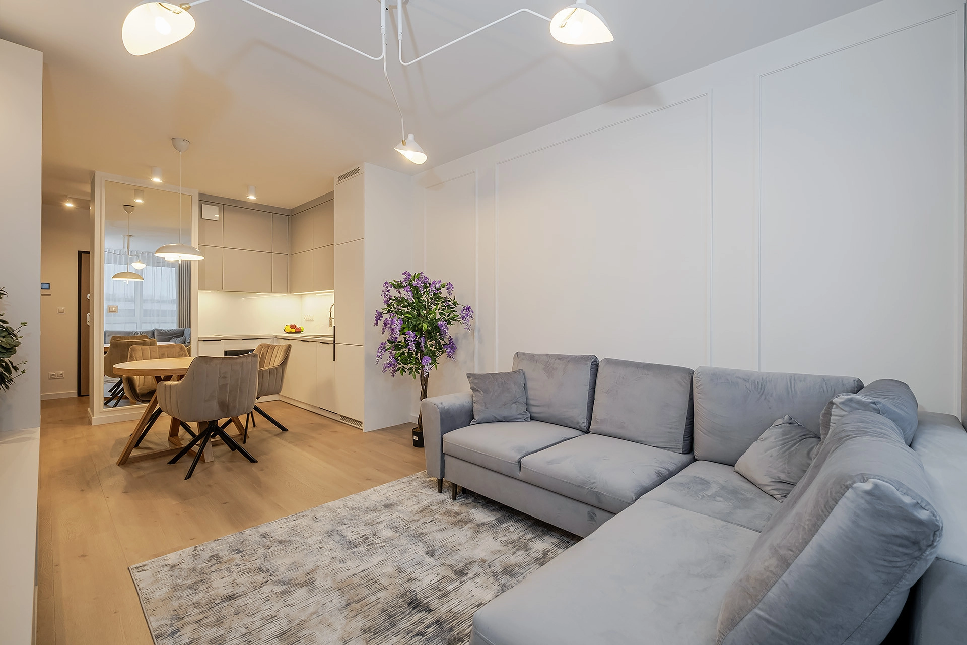 Lokal został wykończony materiałami klasy premium, z dbałością o najdrobniejsze detale. Drewniane panele na podłodze, kuchnia wykonana na wymiar oraz wysokiej jakości sprzęt AGD zapewniają trwałość, wygodę i estetykę, dzięki którym możesz od razu cieszyć się gotowym do zamieszkania wnętrzem.