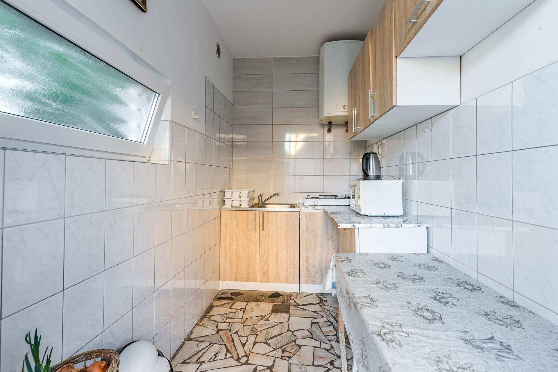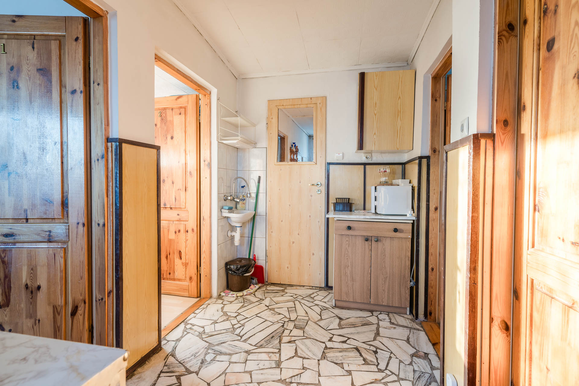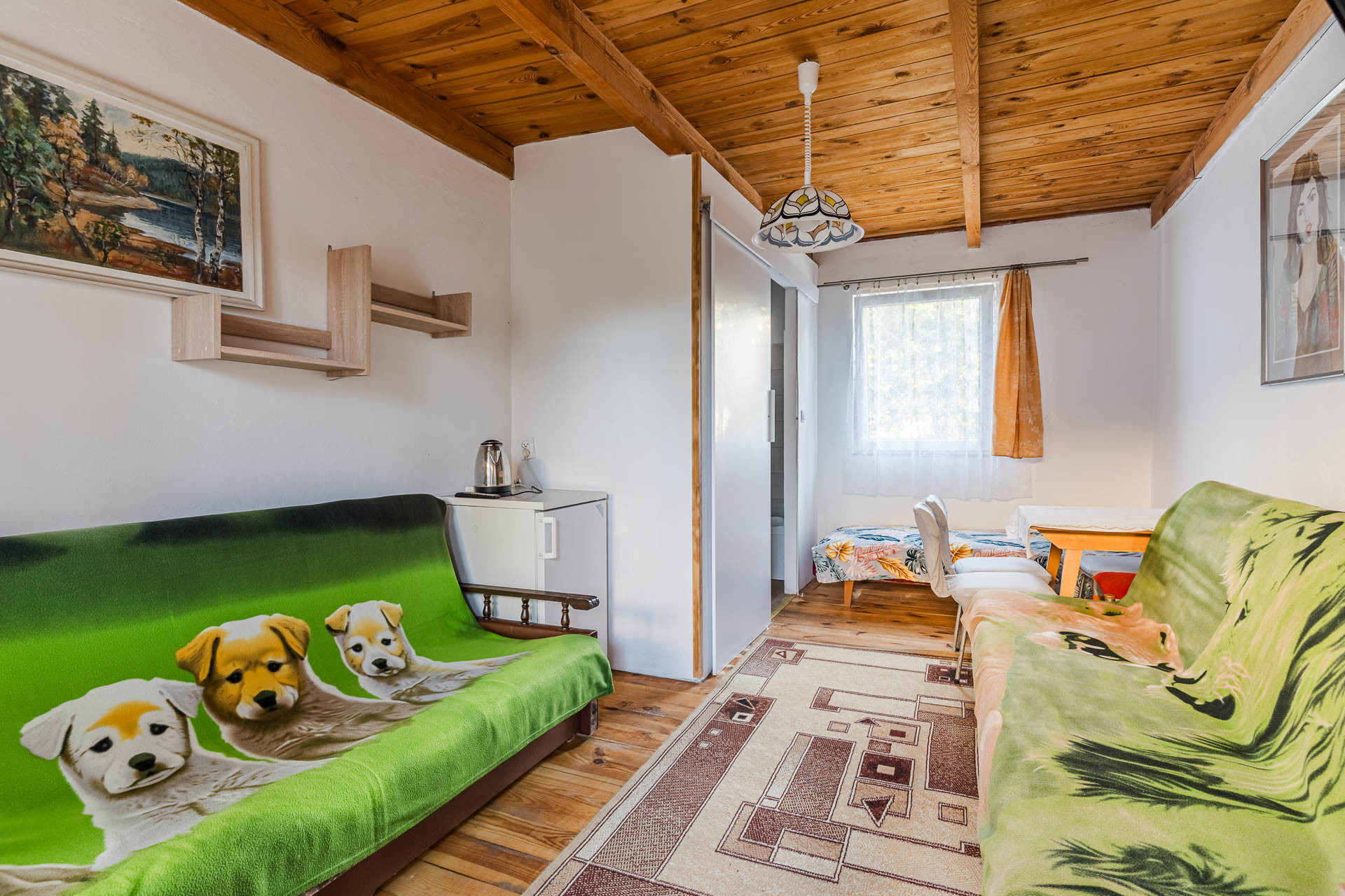 Na przeciwko znajduje się budynek turystyczne o powierzchni 37 m2 z łazienkami z WC oraz ogólnodostępną kuchnią.