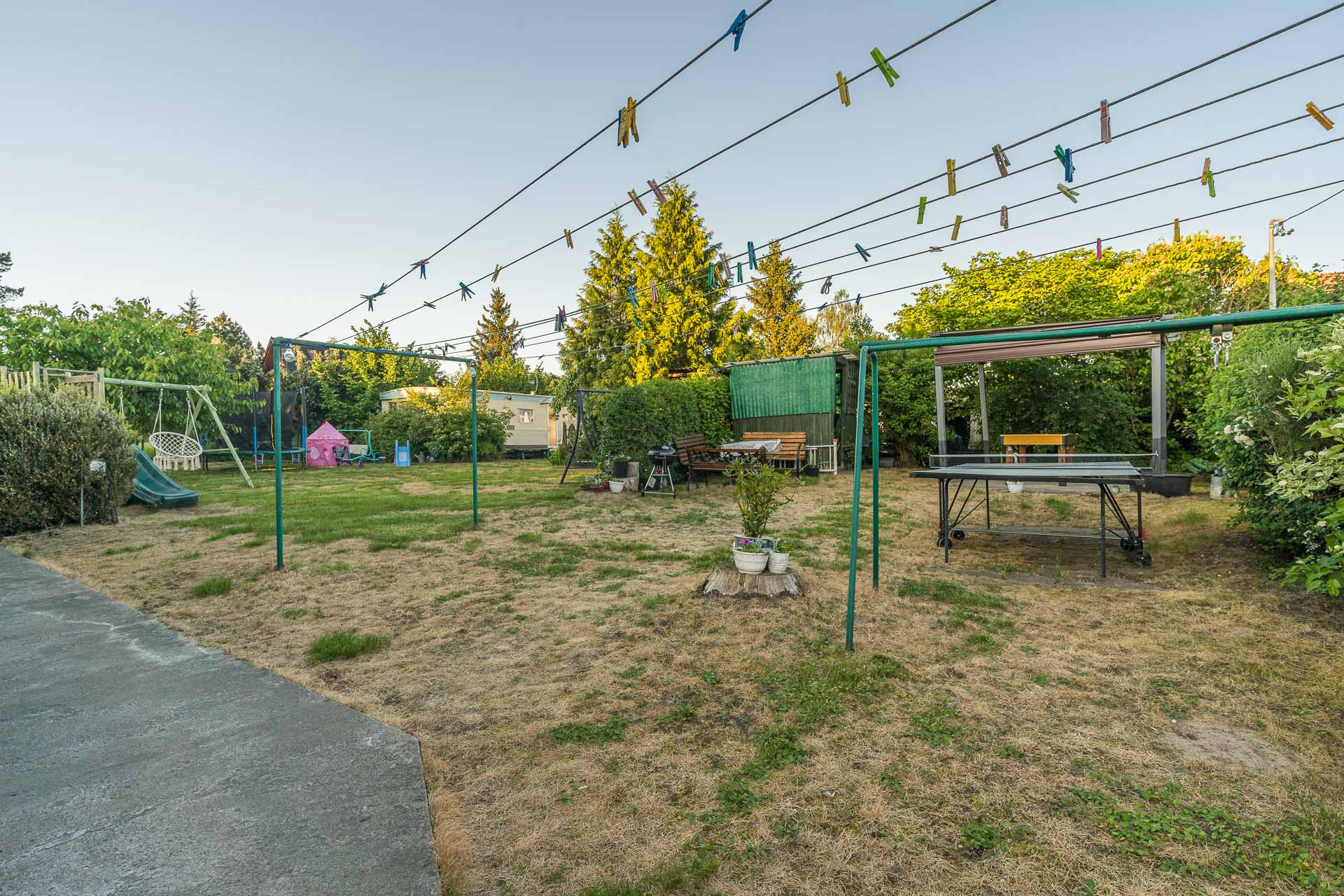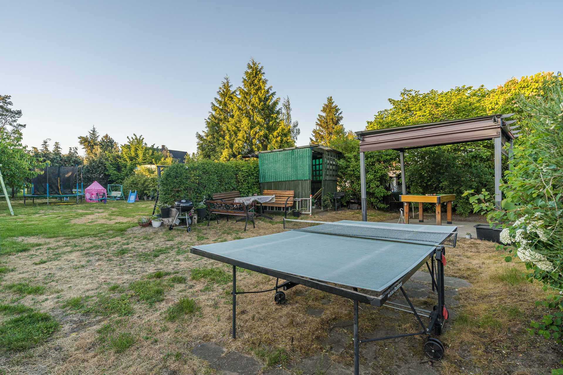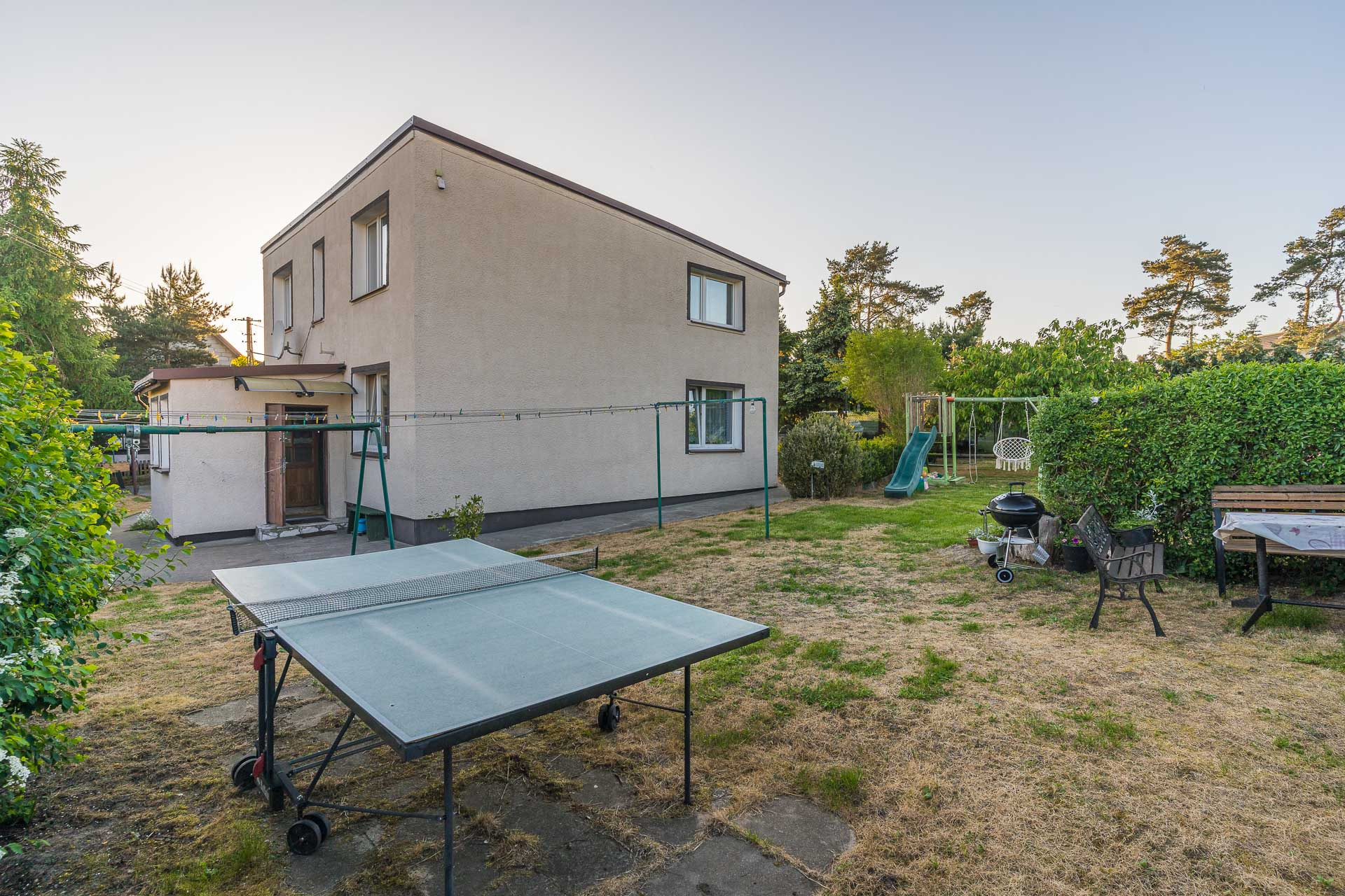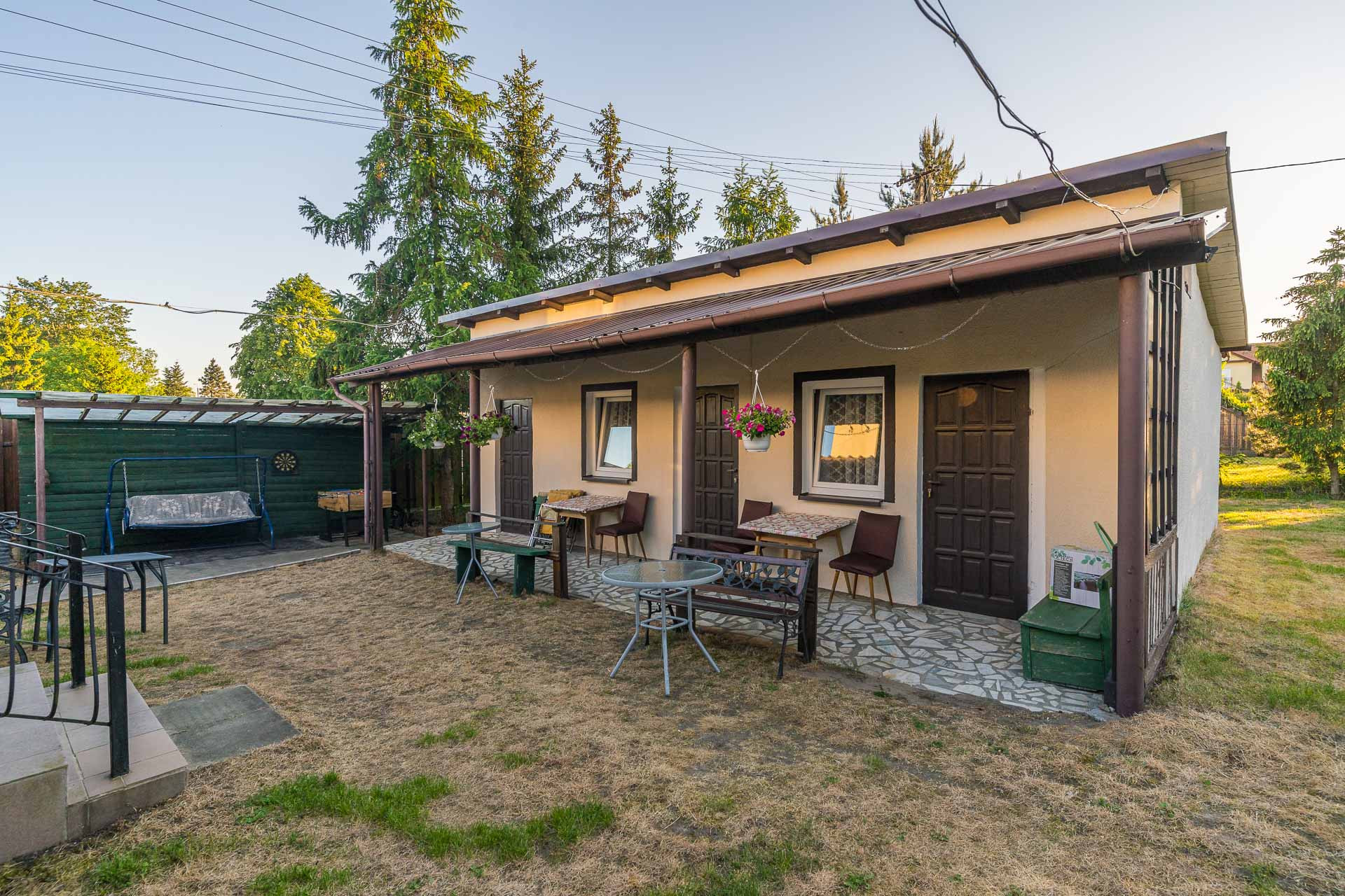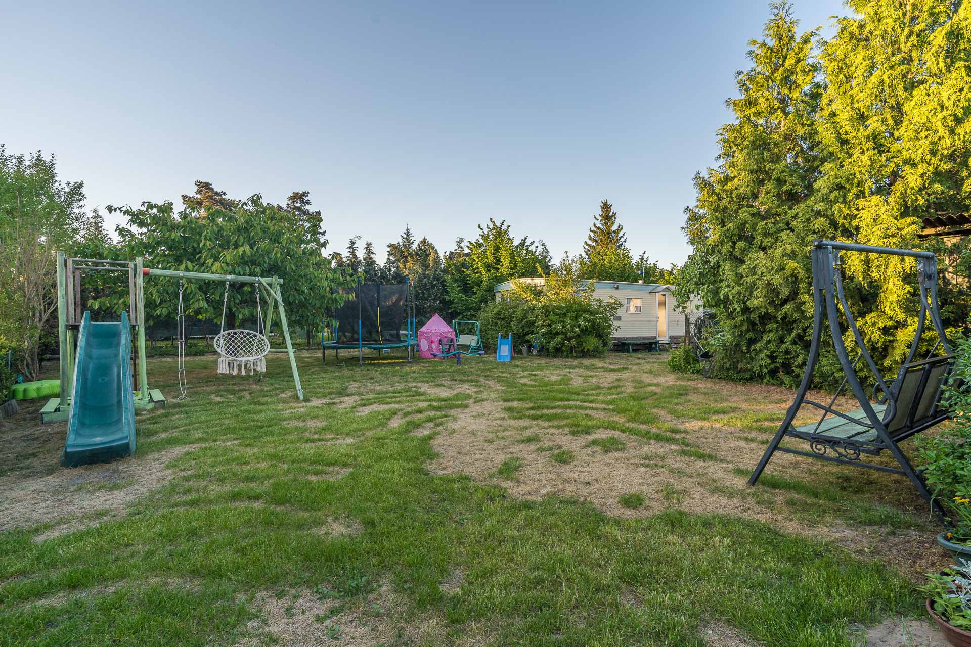Sprzedawany z pełnym wyposażeniem dodatkowym jak stół do bilardu, huśtawki, stół do ping ponga, trampolinę, czy równoważnie.