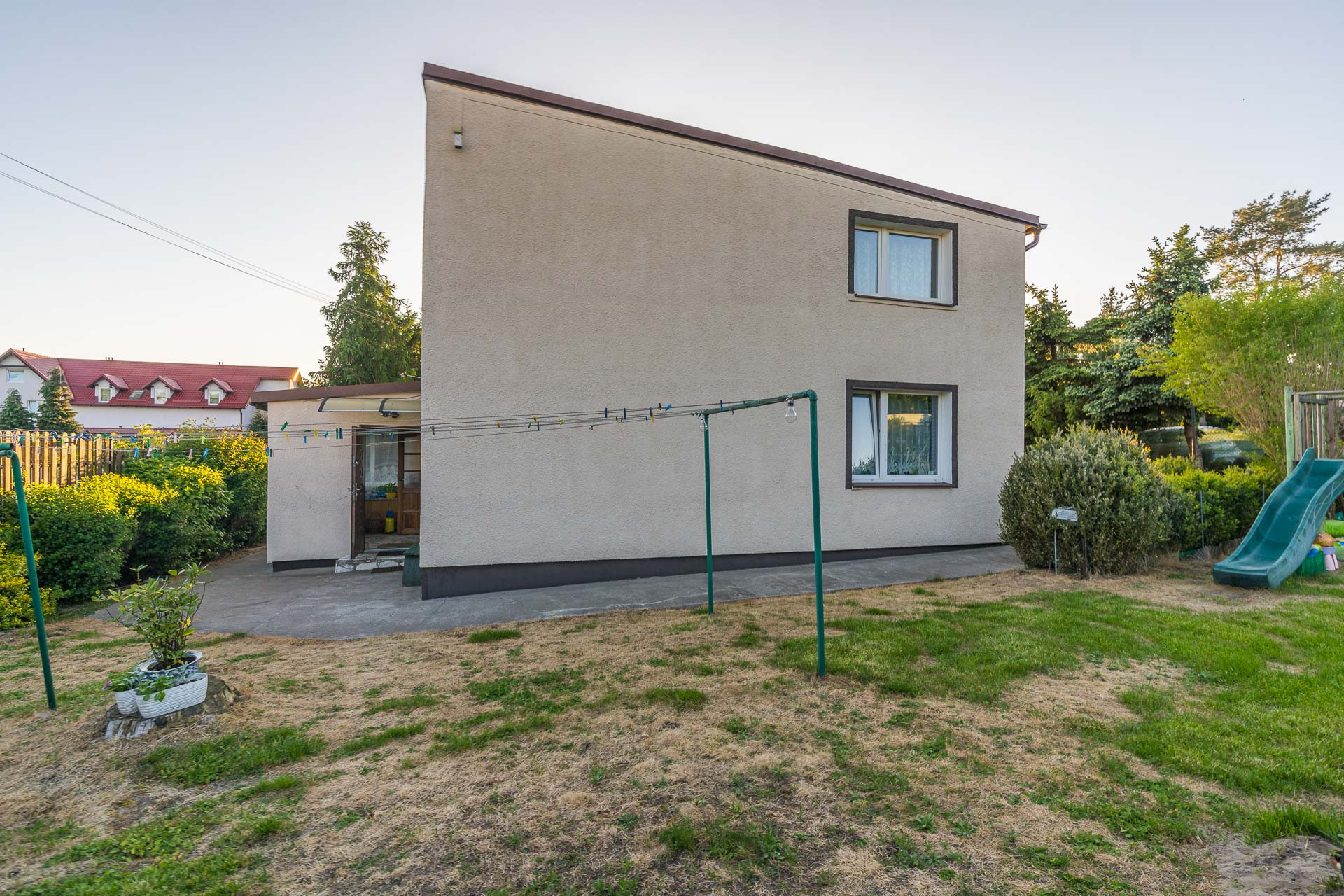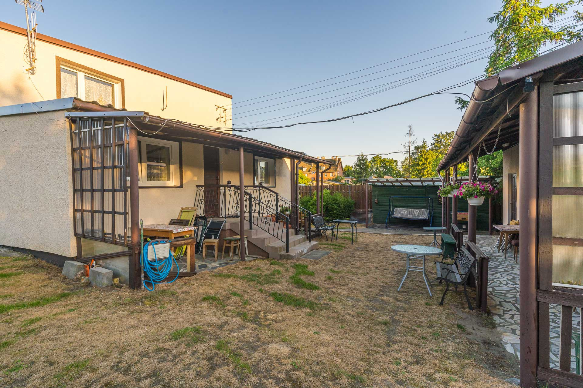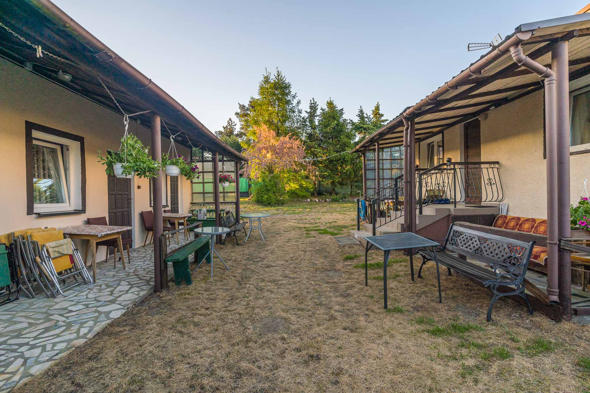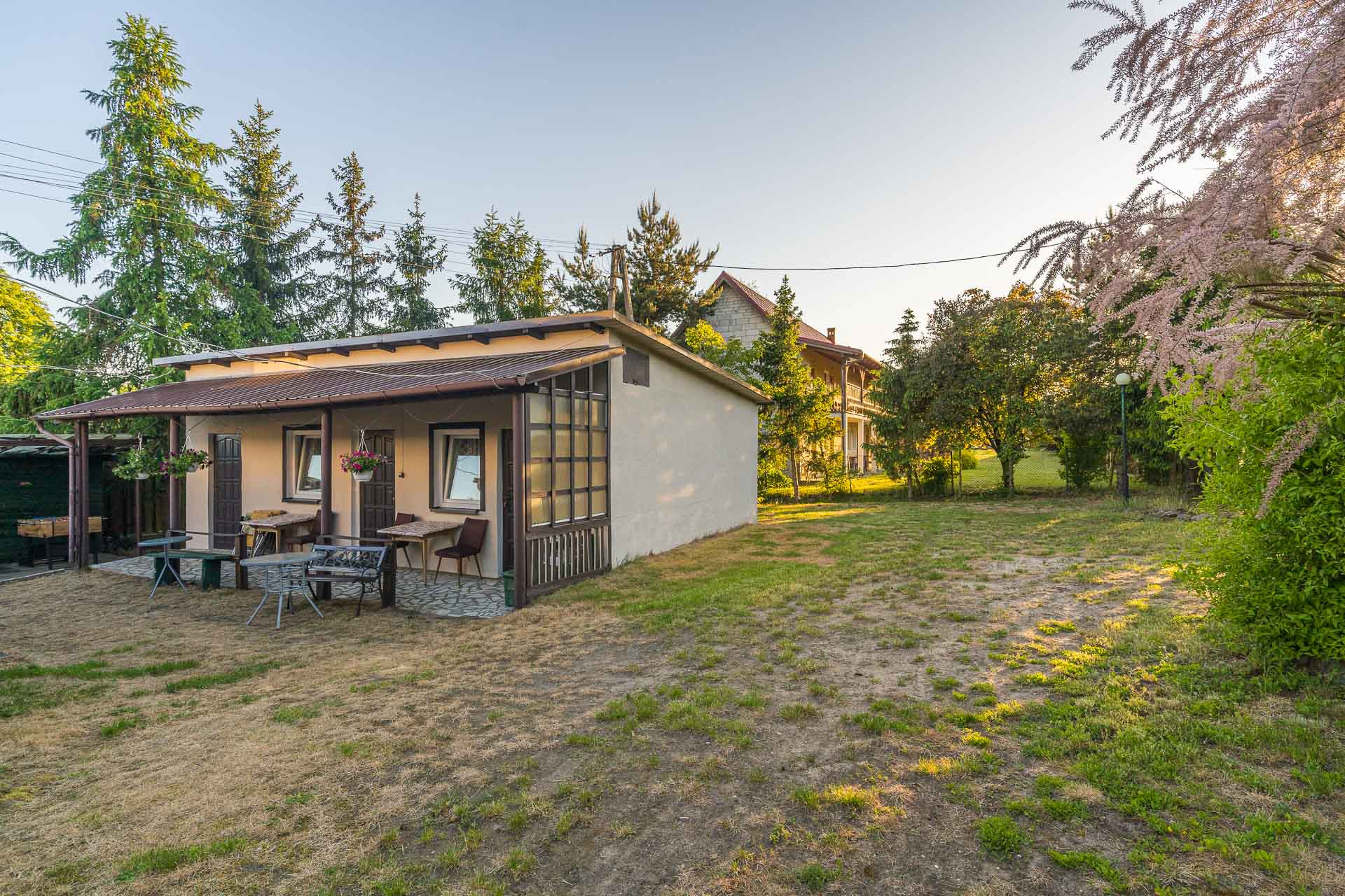 Całość położona na działce o powierzchni 1 400 m2. Jest płaska, ogrodzona, z licznymi drzewami owocowymi, krzewami, czy kwiatami. Jej sąsiedztwo stanowią inne domy oraz obiekty turystyczne.