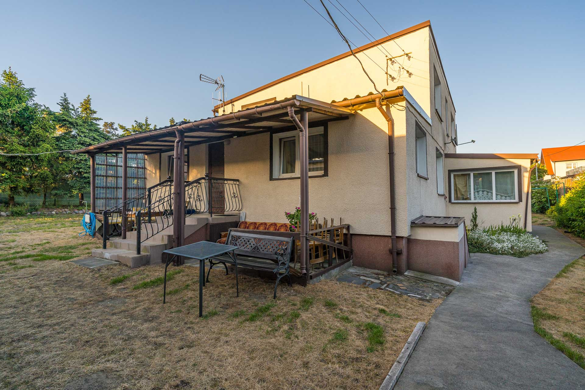 Weranda ma powierzchnie 24 m2 i zostały w niej urządzone 2 pokoje z łazienkami oraz WC.