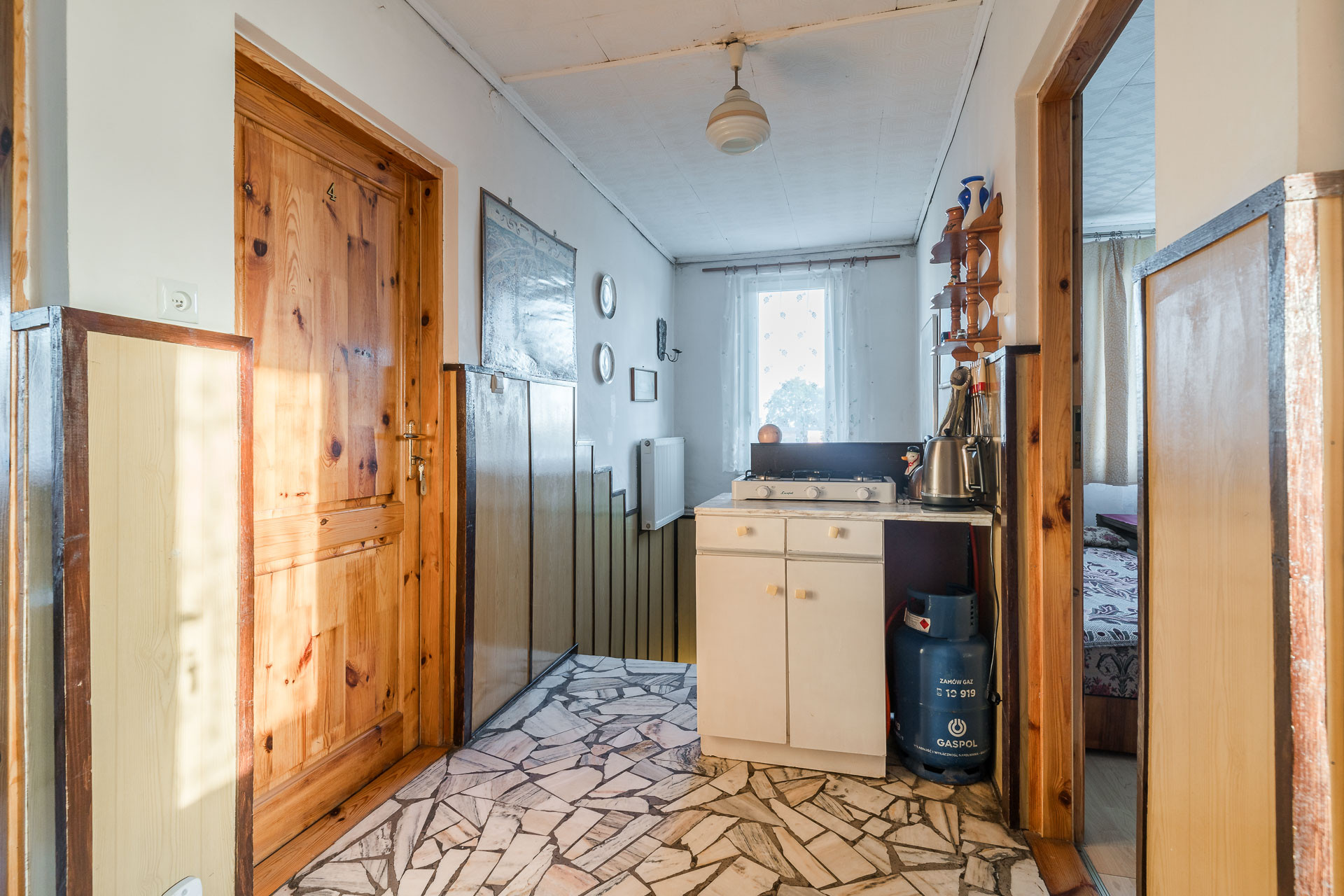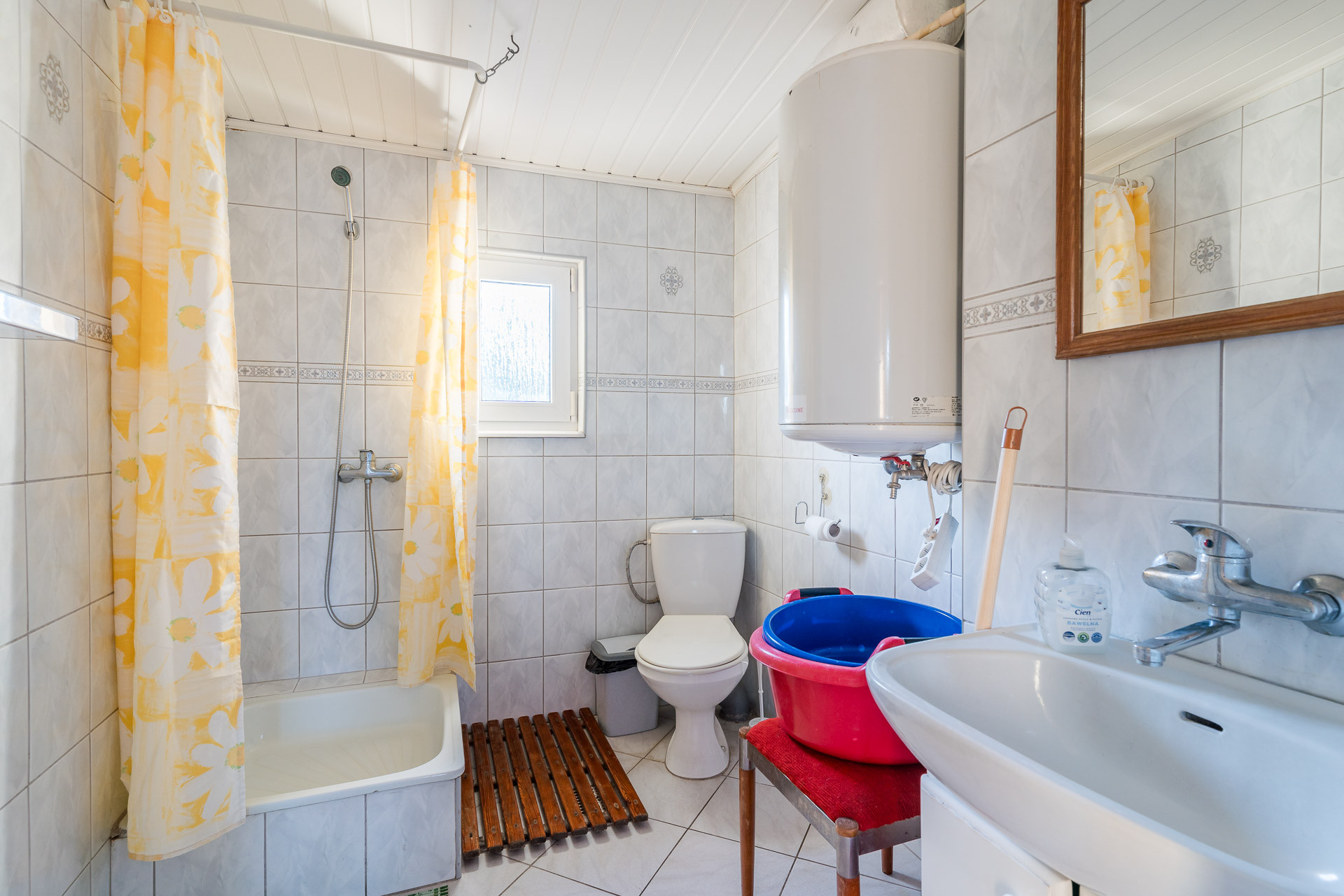 Pod budynkiem znajduje się duża piwnica.