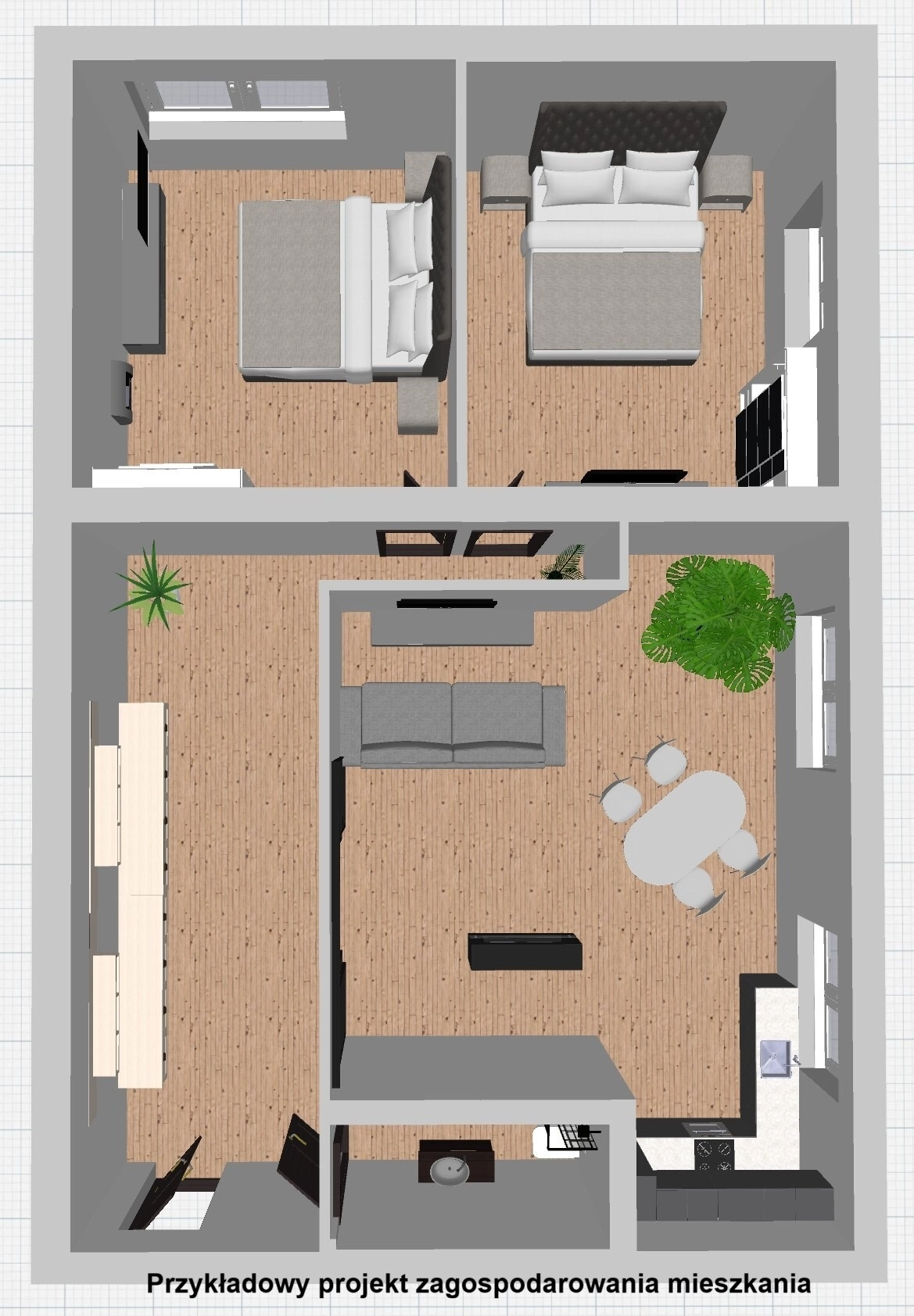 - Układ: 2 pokoje, oddzielna kuchnia, łazienka, balkon francuski.