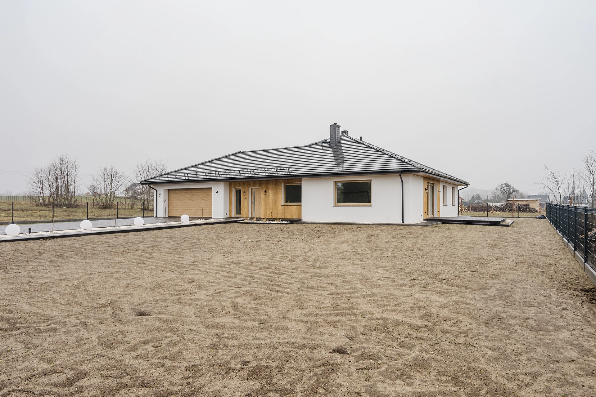 dom posadowiony jest na płaskiej słonecznej działce o powierzchni 1313 m2
