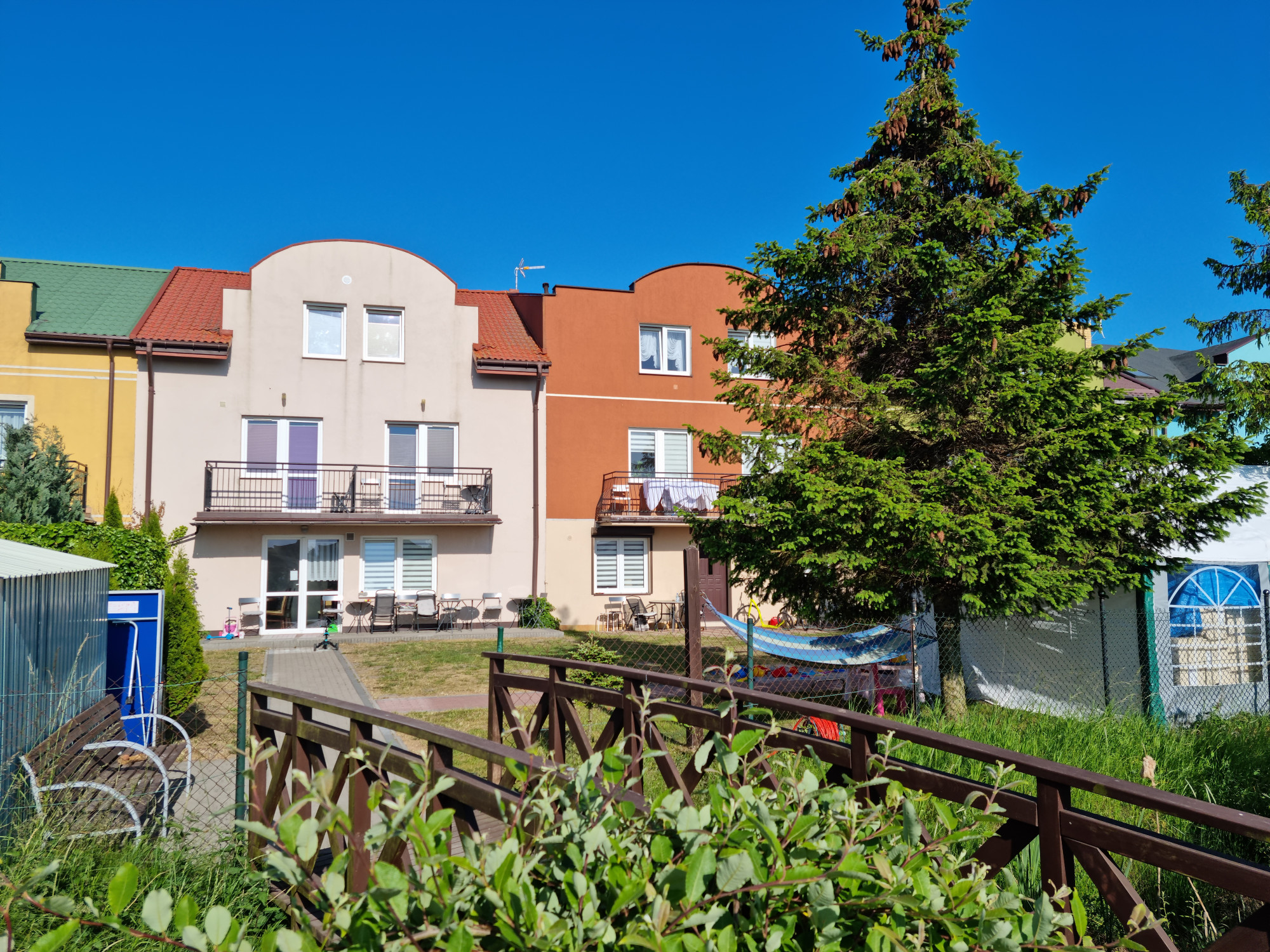 Nieruchomość ta stanowi część zabudowy szeregowej i ma powierzchnię całkowitą 237 m2 a powierzchnia użytkowa to 114,8 m2 i składa się z 4 niezależnych apartamentów. Poza nimi na parterze mamy otwartą kuchnię z jadalnią. Do budynku przynależy taras, natomiast garaż został przerobiony na suszarnię i pomieszczenie gospodarcze. Za domem z kolei jest ogród z miejscem na grilla i altanka.