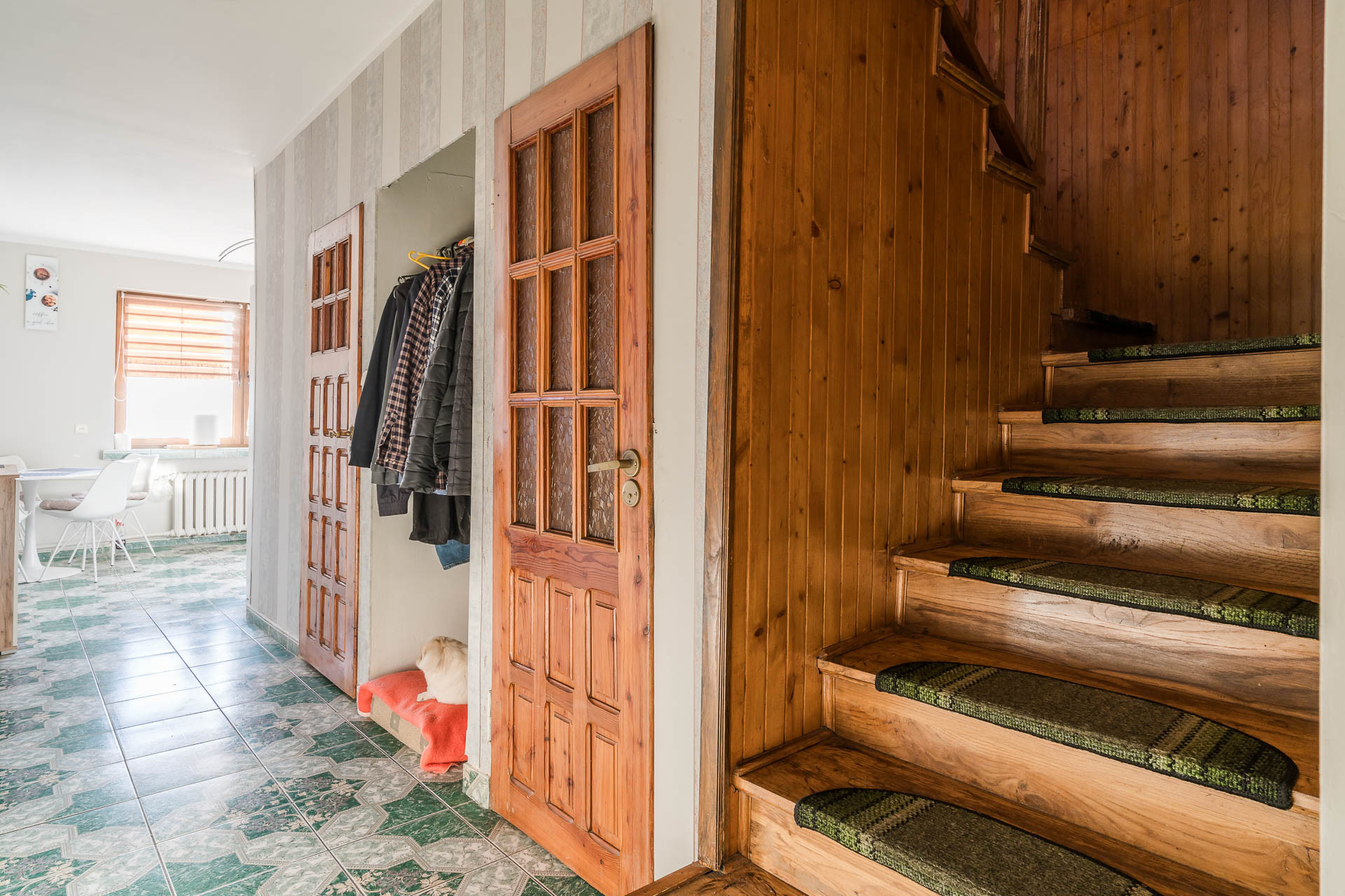 parteru w którym znajdują się dwa pokoje, kuchnia, łazienka, korytarz oraz pietra na którym znajdują się trzy pokoje, łazienka, garderoba, korytarz.