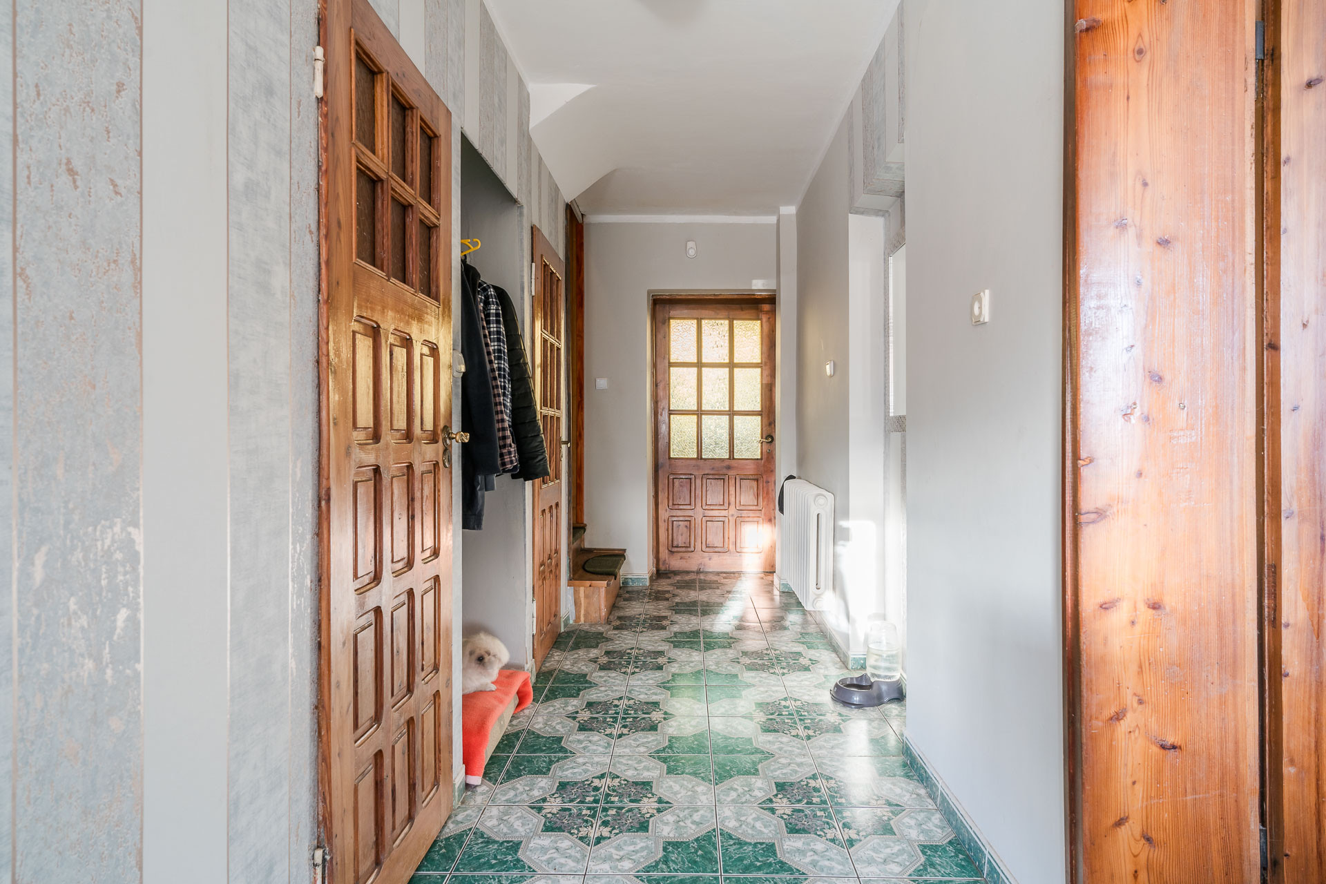 parteru w którym znajdują się dwa pokoje, kuchnia, łazienka, korytarz oraz pietra na którym znajdują się trzy pokoje, łazienka, garderoba, korytarz.