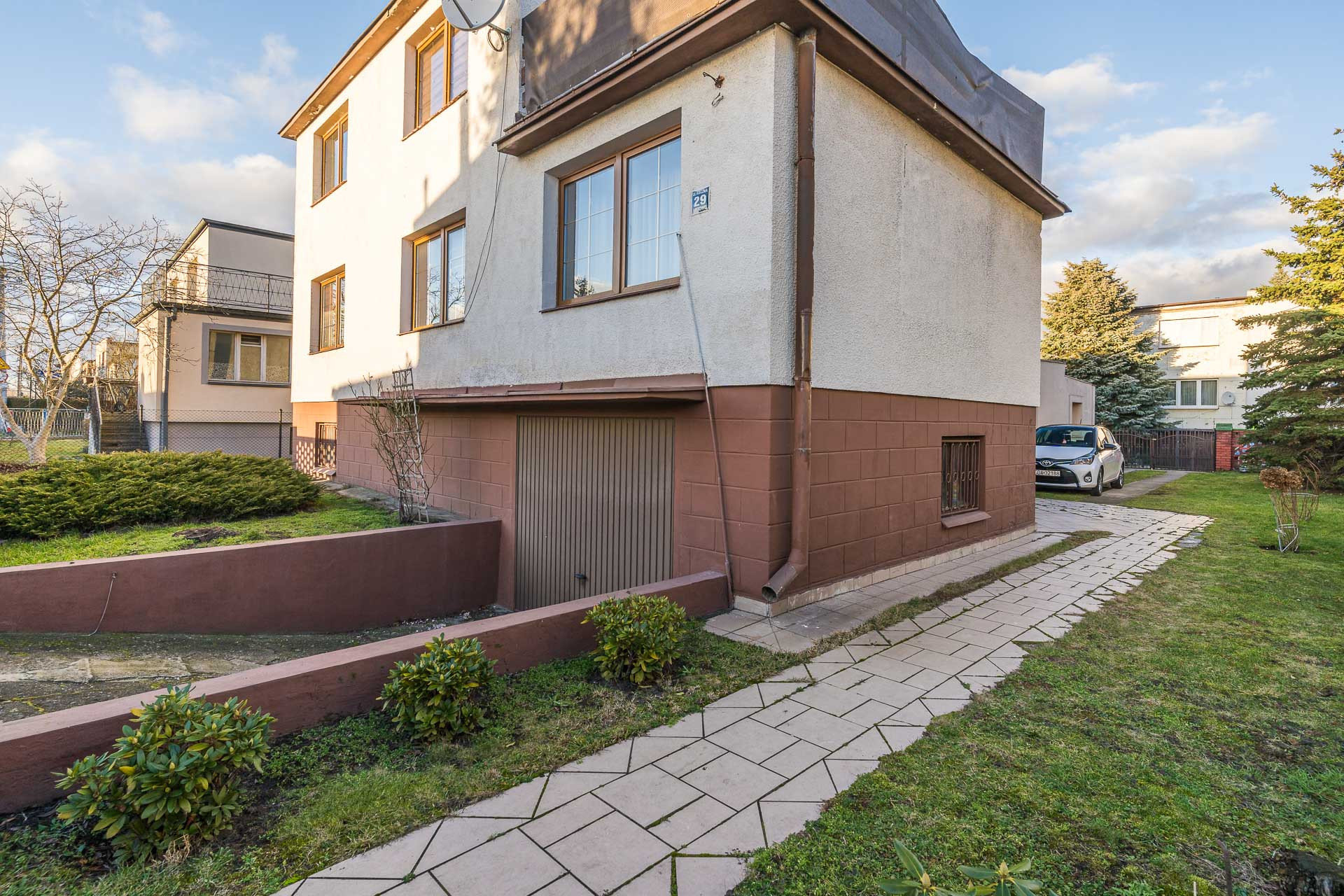 – budynek jednorodzinny, podpiwniczony, wolnostojący z garażem w bryle budynku,