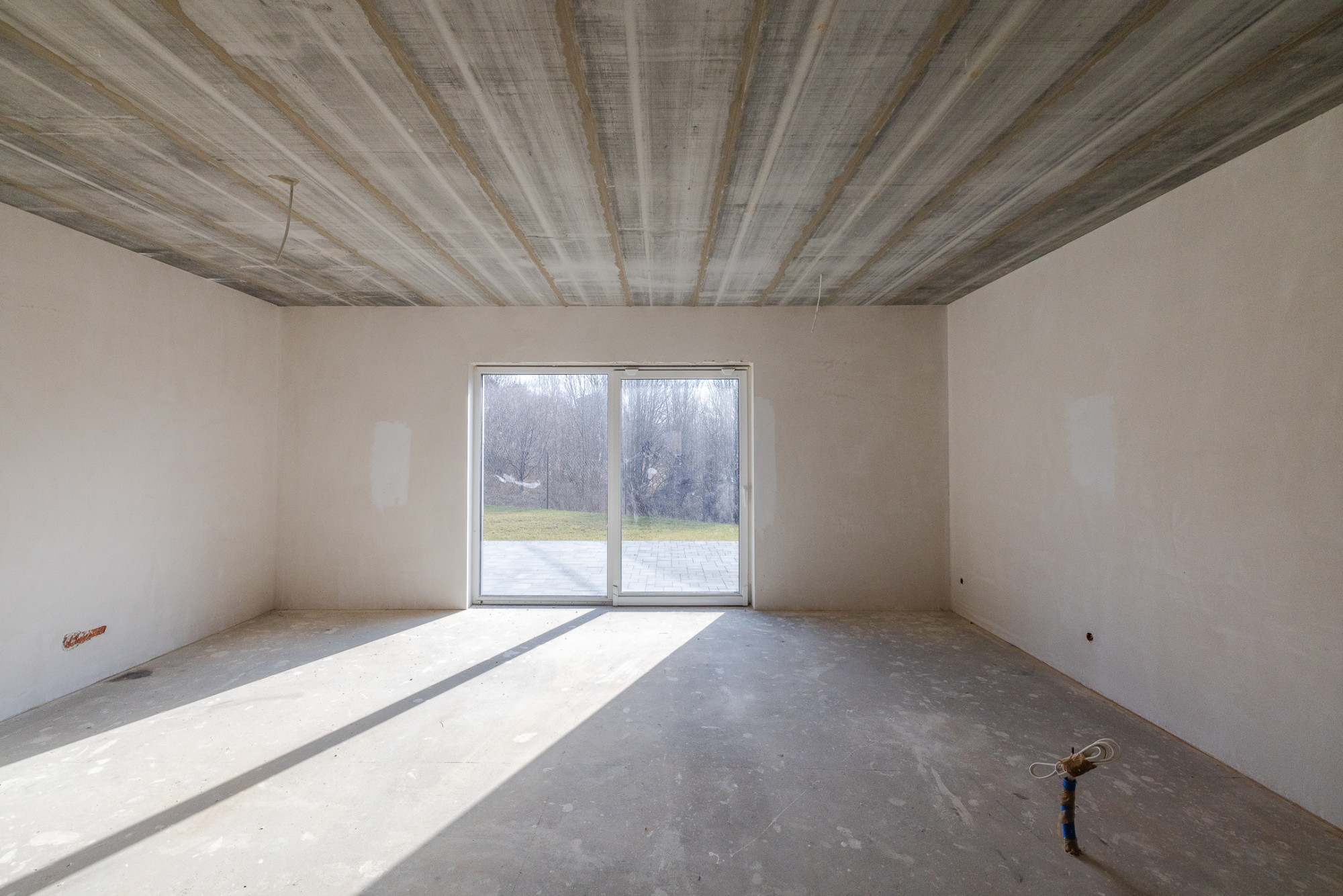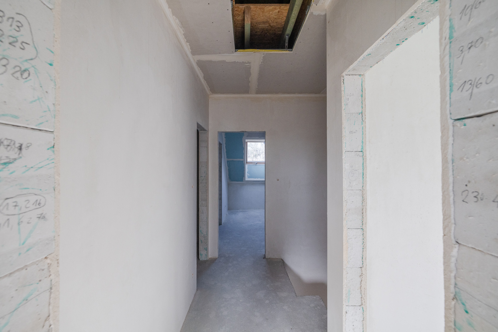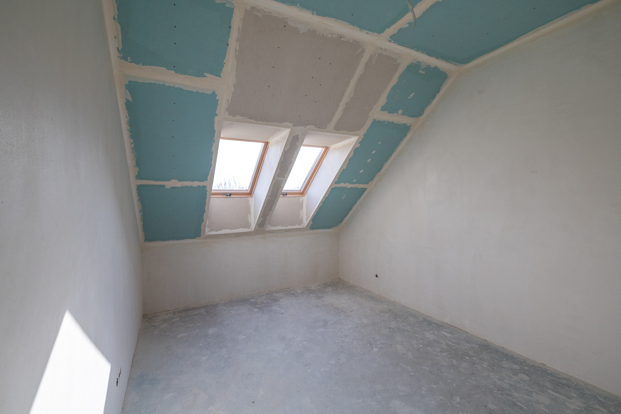 Dom postawiony na ławach fundamentowych, ściany konstrukcyjne wykonane z bloczków YTong gr. 24 cm, działowe gr. 11,5 cm. Strop typu Teriva, dach dwuspadowy pokryty blachą stalową, izolacja termiczna wykonana z wełny ISOVER TF Profi gr. 16cm, okna dachowe połaciowe firmy Velux, drzwi zewnętrzne ALURON, wygłuszenie między budynkami wełną akustyczną. Wjazd na działkę przez bramę automatyczną, podjazd wyłożony kostką brukową, przestrzeń na dwa miejsca parkingowe.