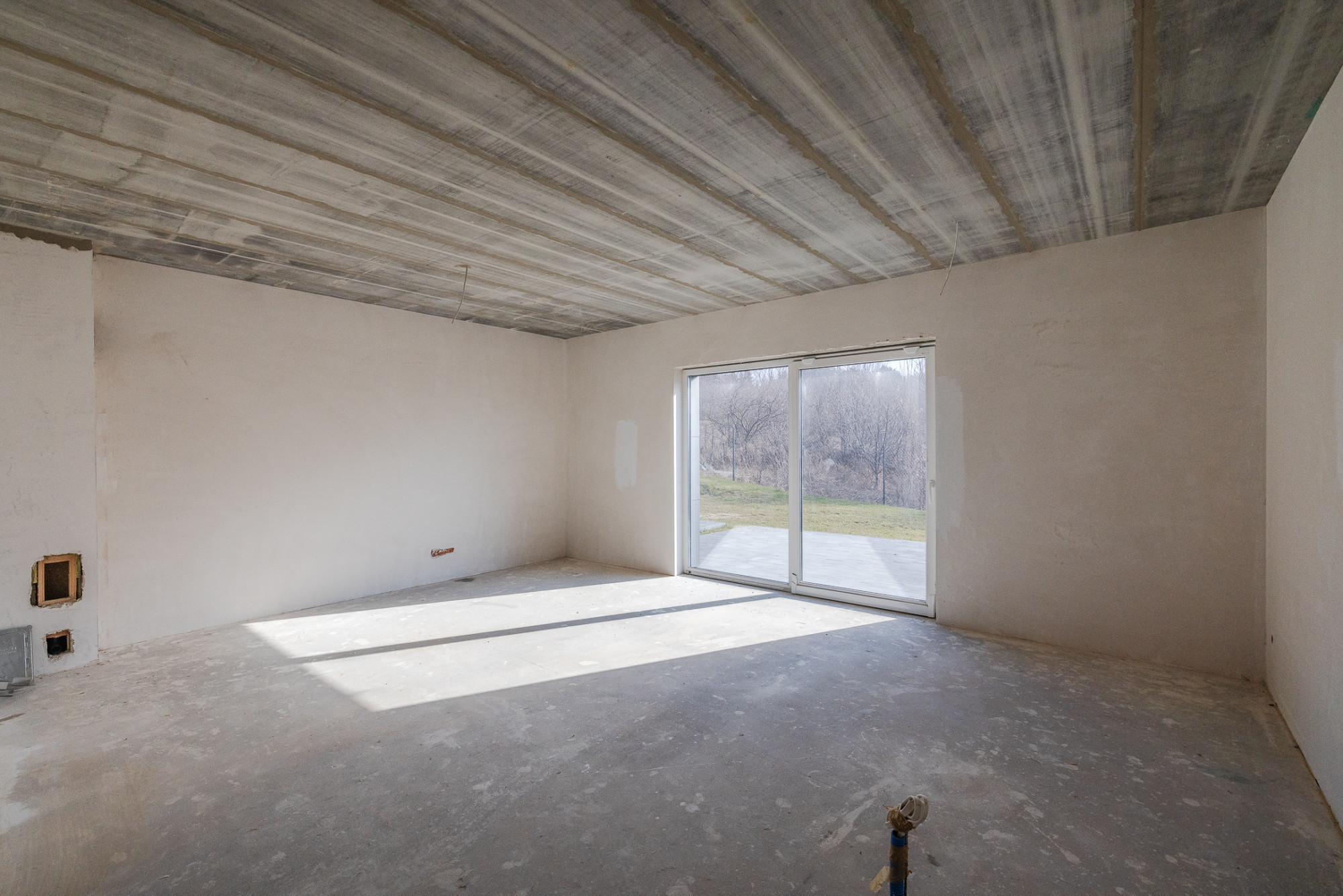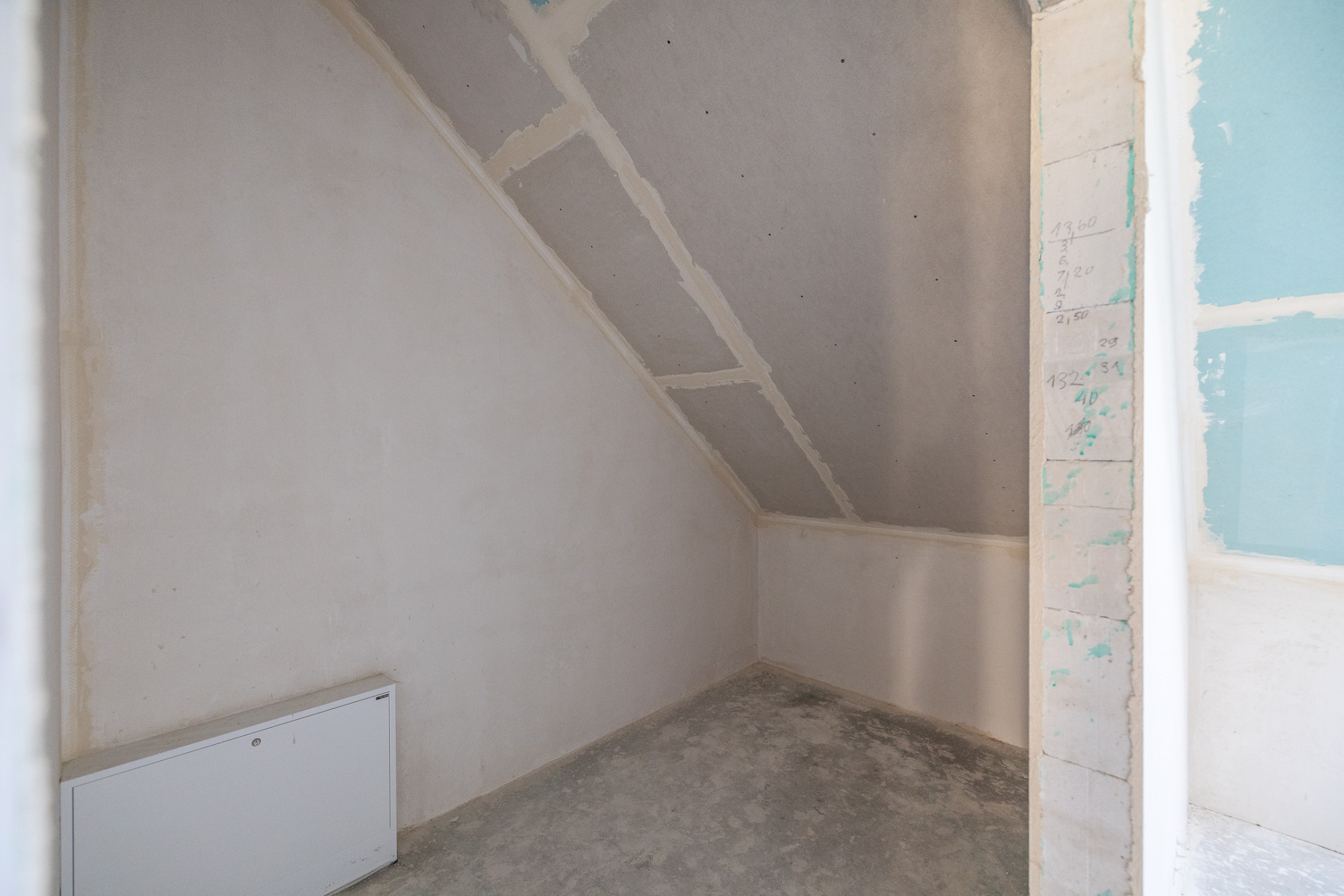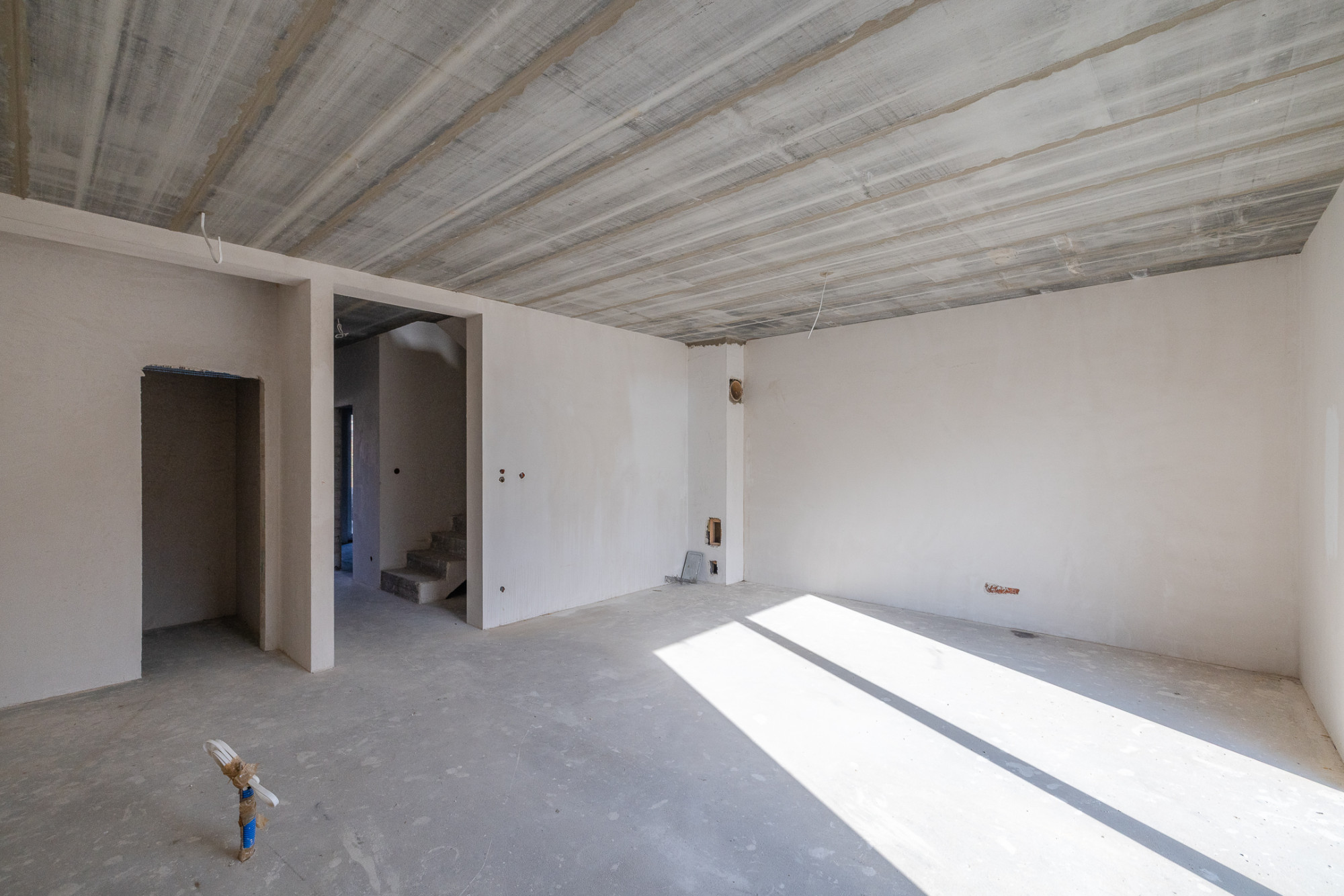 Dom postawiony na ławach fundamentowych, ściany konstrukcyjne wykonane z bloczków YTong gr. 24 cm, działowe gr. 11,5 cm. Strop typu Teriva, dach dwuspadowy pokryty blachą stalową, izolacja termiczna wykonana z wełny ISOVER TF Profi gr. 16cm, okna dachowe połaciowe firmy Velux, drzwi zewnętrzne ALURON, wygłuszenie między budynkami wełną akustyczną. Wjazd na działkę przez bramę automatyczną, podjazd wyłożony kostką brukową, przestrzeń na dwa miejsca parkingowe.