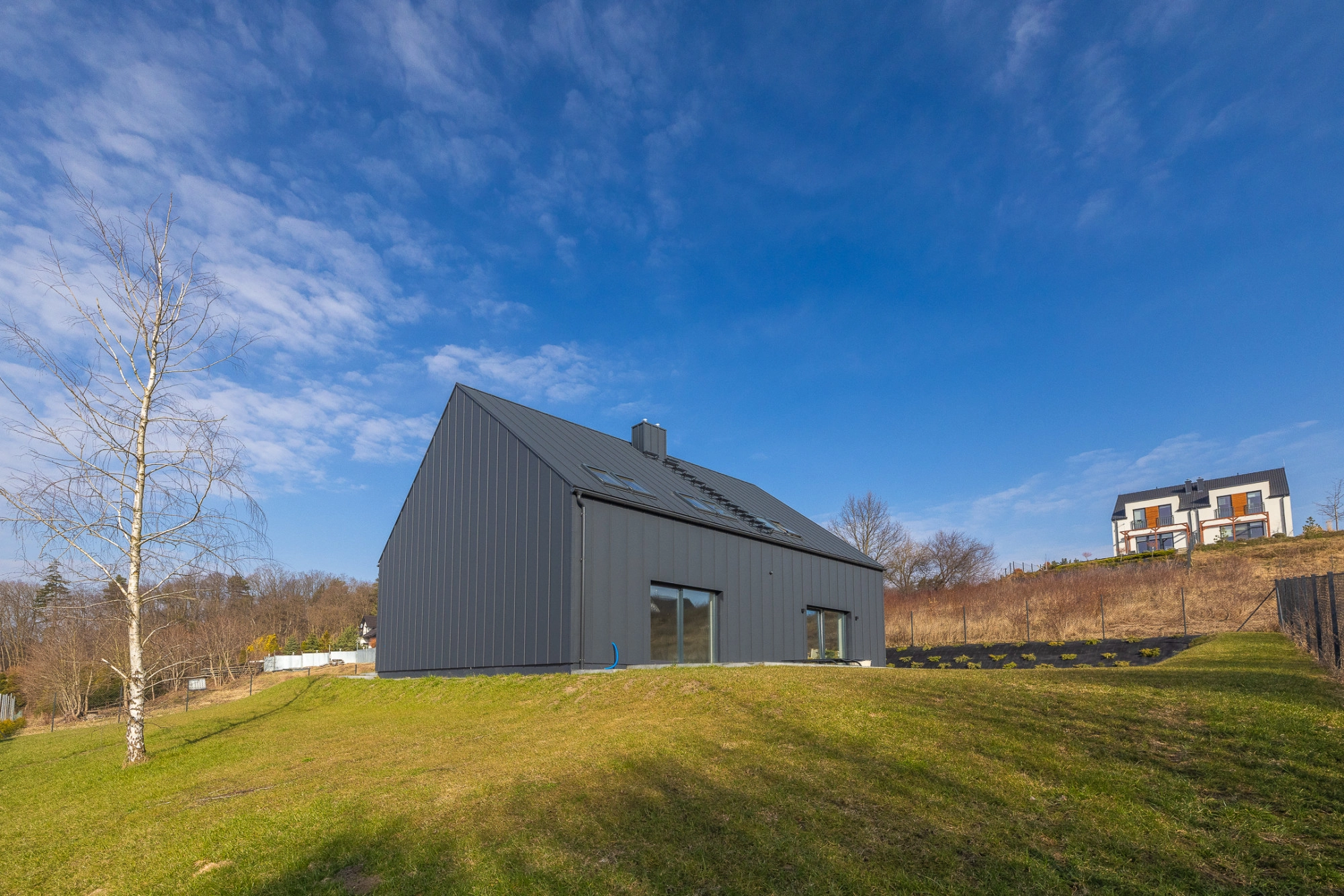DOM: Projekt Eco 17 budynek jednorodzinny dwulokalowy oferuje łączną powierzchnię użytkową 224,1 m², podzieloną na dwa niezależne segmenty powierzchnia użytkowa 112,04 m2, znajdujący się na działce o powierzchni 568 m2- cała działka ma 1136 m2 dobrze oświetlona, tarasy od strony południowej jeden lokal wykończony, drugi do własnej aranżacji. Lokal dysponuje przestronnym salonem, trzema dodatkowymi pokojami oraz dwiema łazienkami, co zapewnia komfortowe warunki dla całej rodziny.