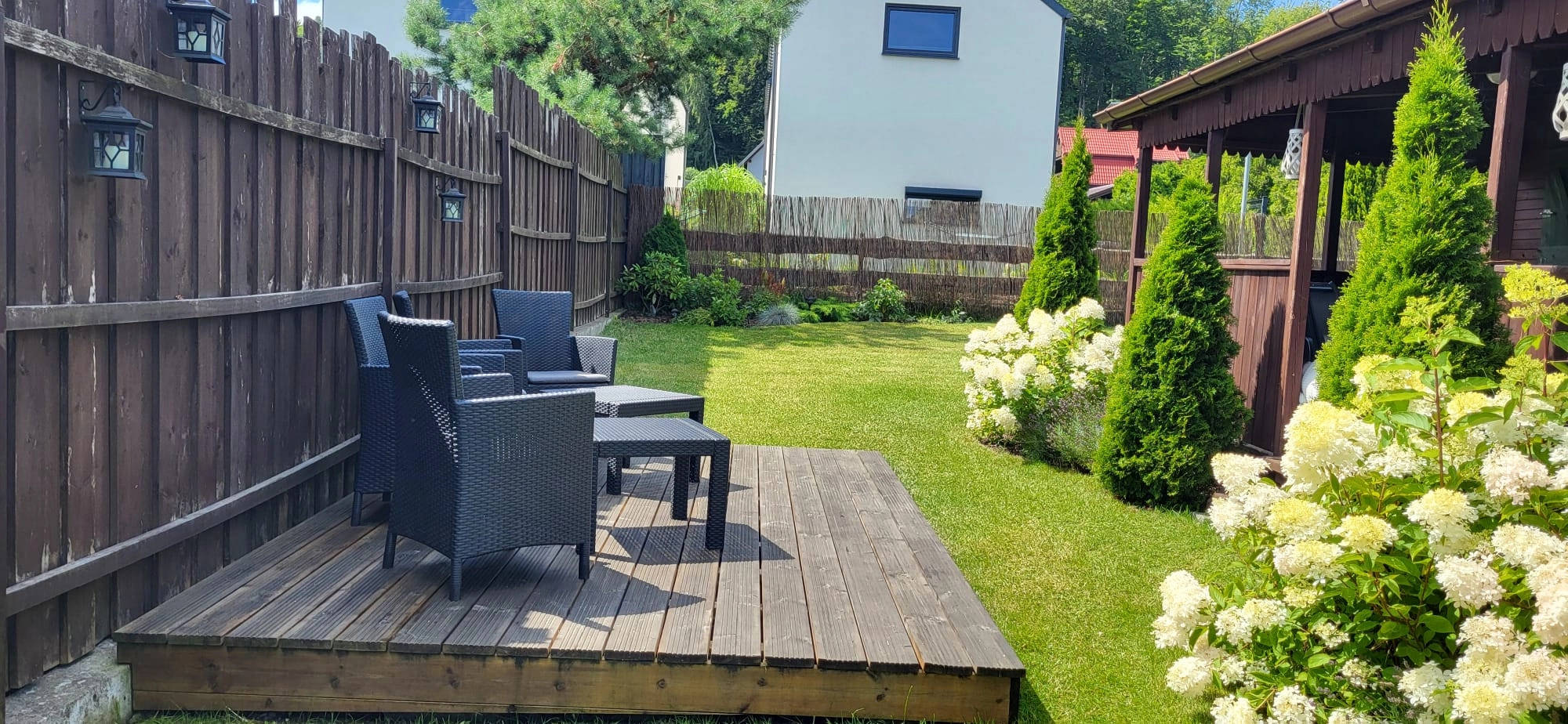 Cała ogrodzona i obsadzona tujami gwarantującymi nam prywatność.
