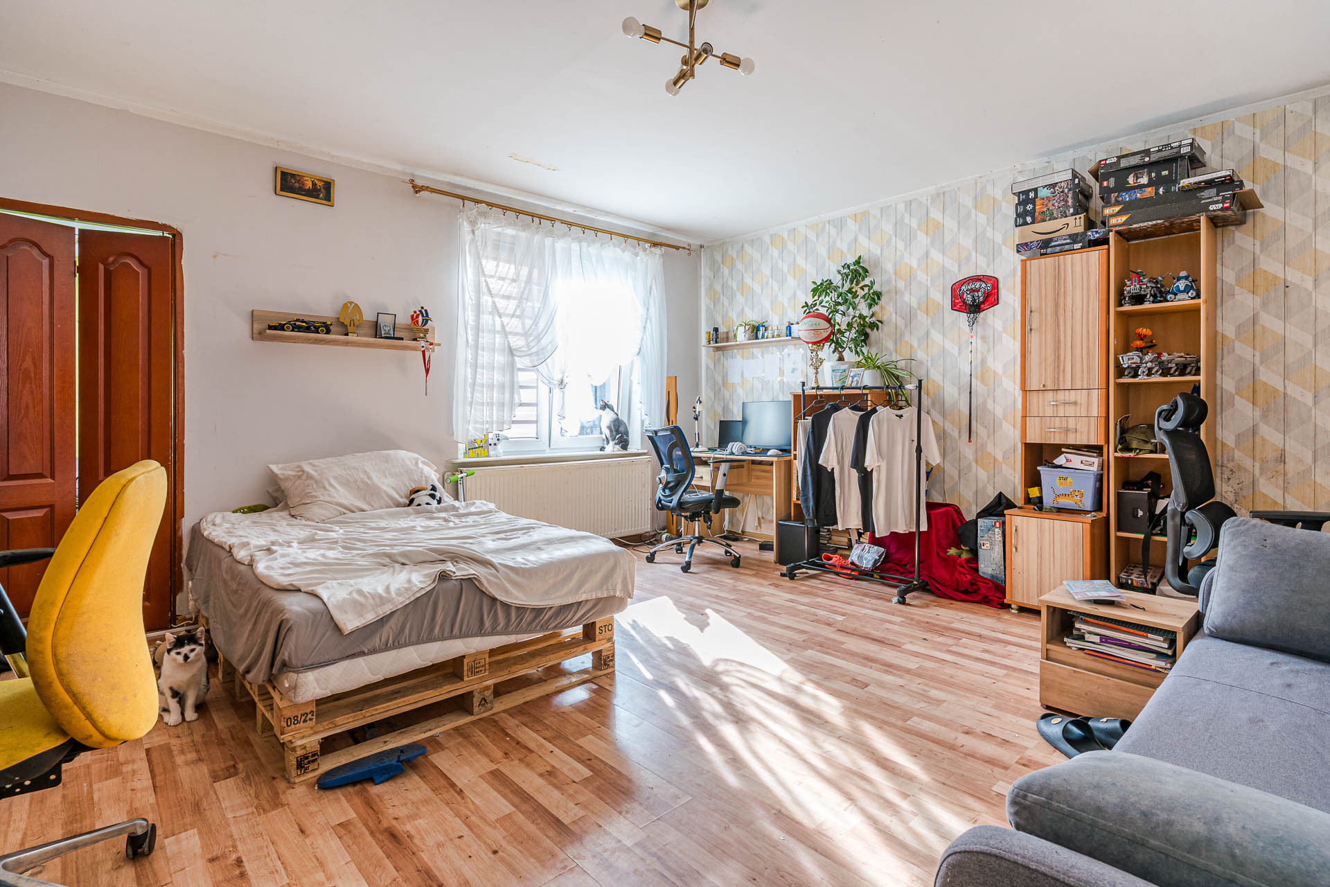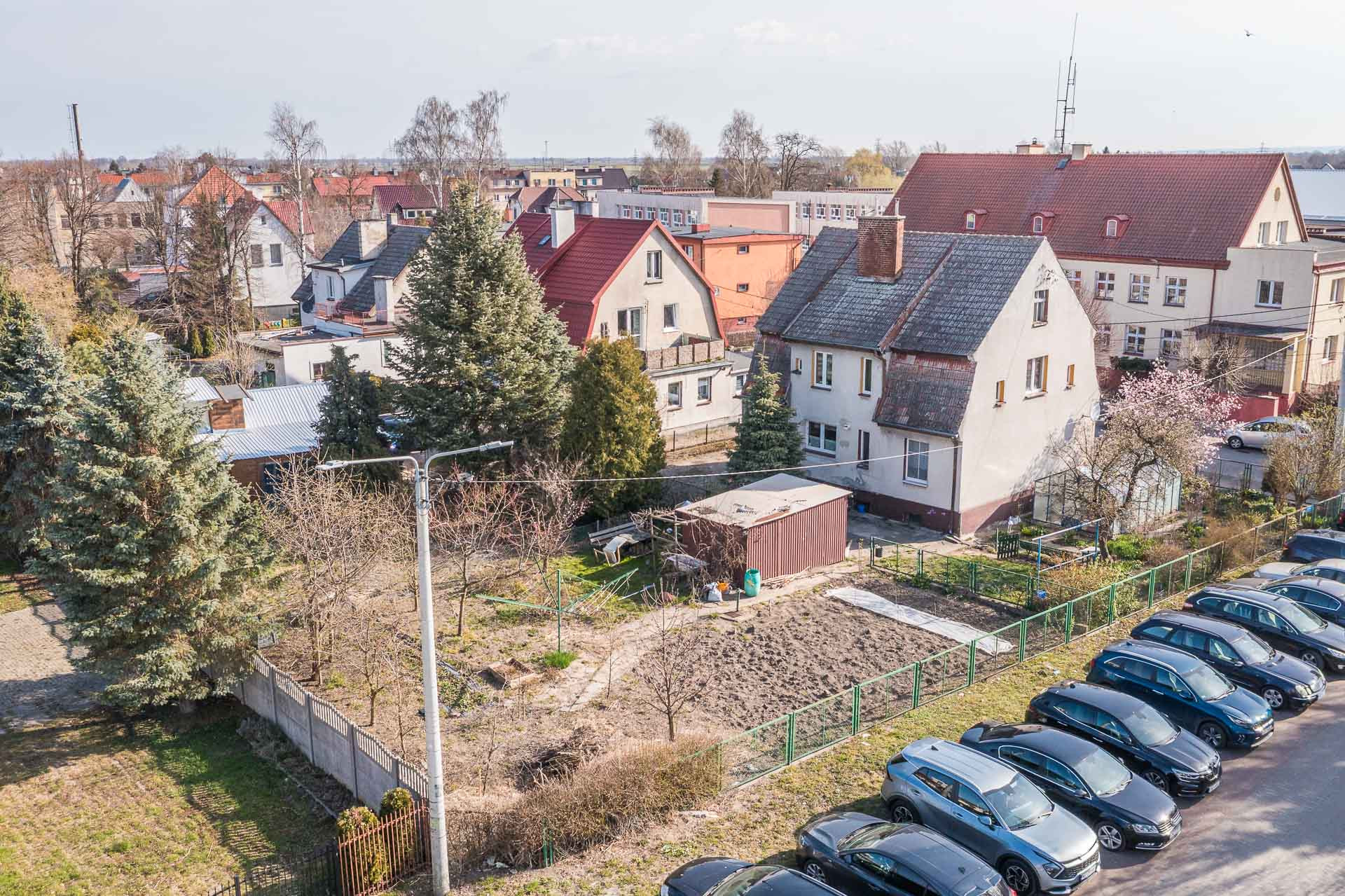 Mieszkanie znajduje się na parterze budynku z 1930 roku. Budynek wybudowany z cegły, na dachu- dachówka ceramiczna. Do mieszkania przynależą dwa ogrody-  łącznie aż 450m2! Z przodu budynku- dekoracyjny oraz z tyłu budynku rekreacyjny. Na terenie posesji miejsce parkingowe dla samochodu oraz garaż typu blaszak. Dodatkowo obecni właściciele dzierżawią od miasta dodatkowy fragment działki o powierzchni 127m2 (150 zł/rok). Istnieje możliwość przejęcia tej dzierżawy.