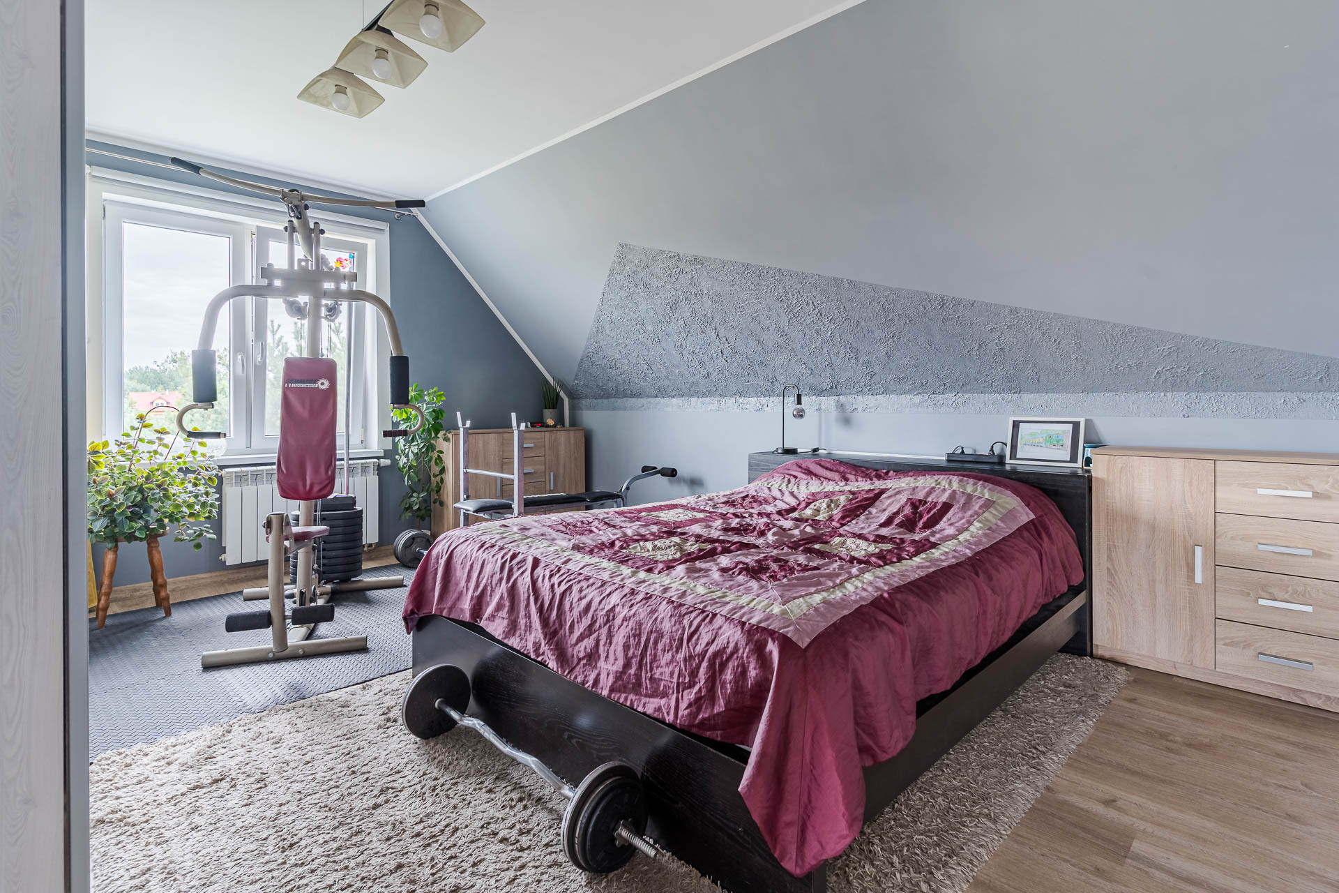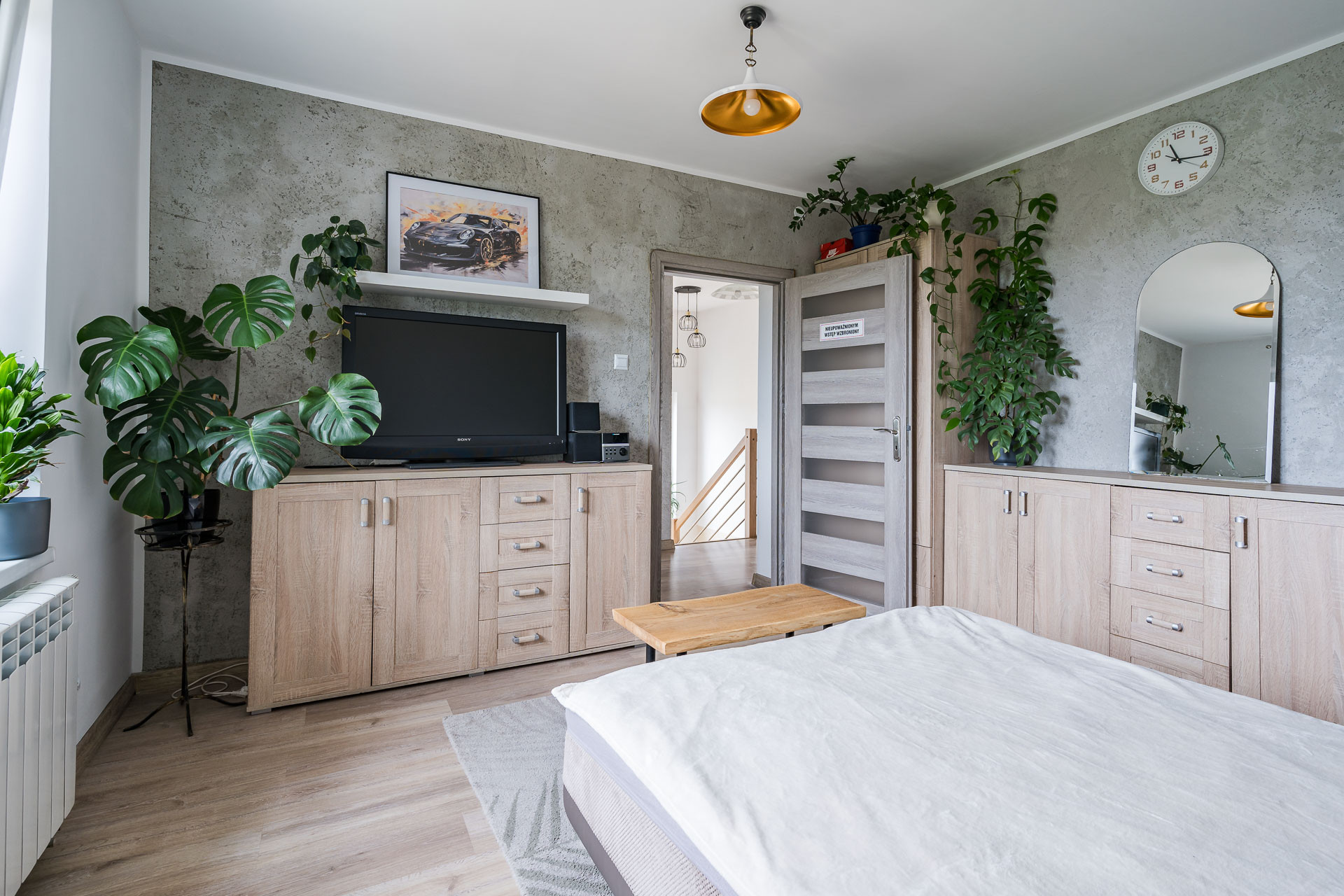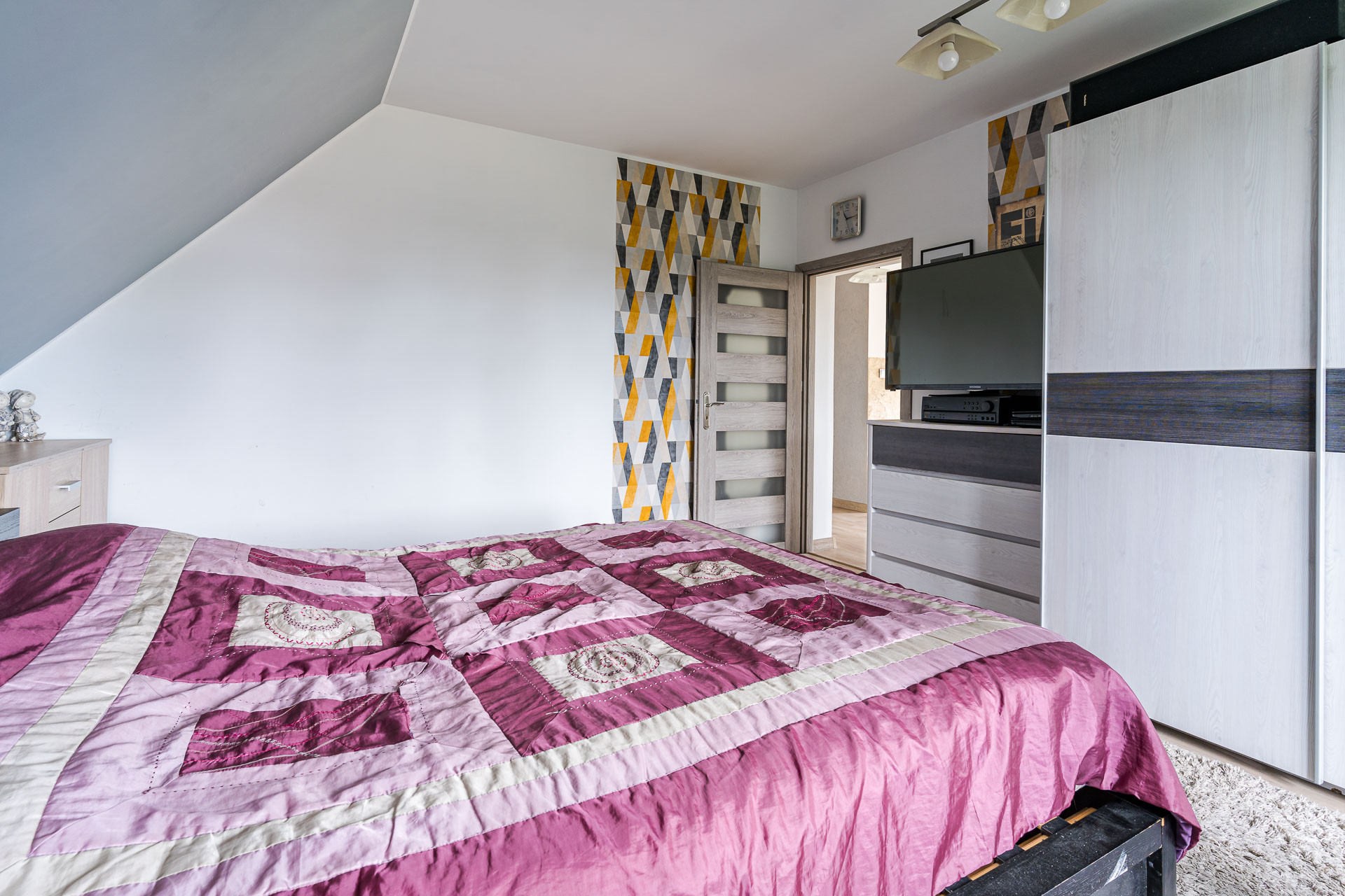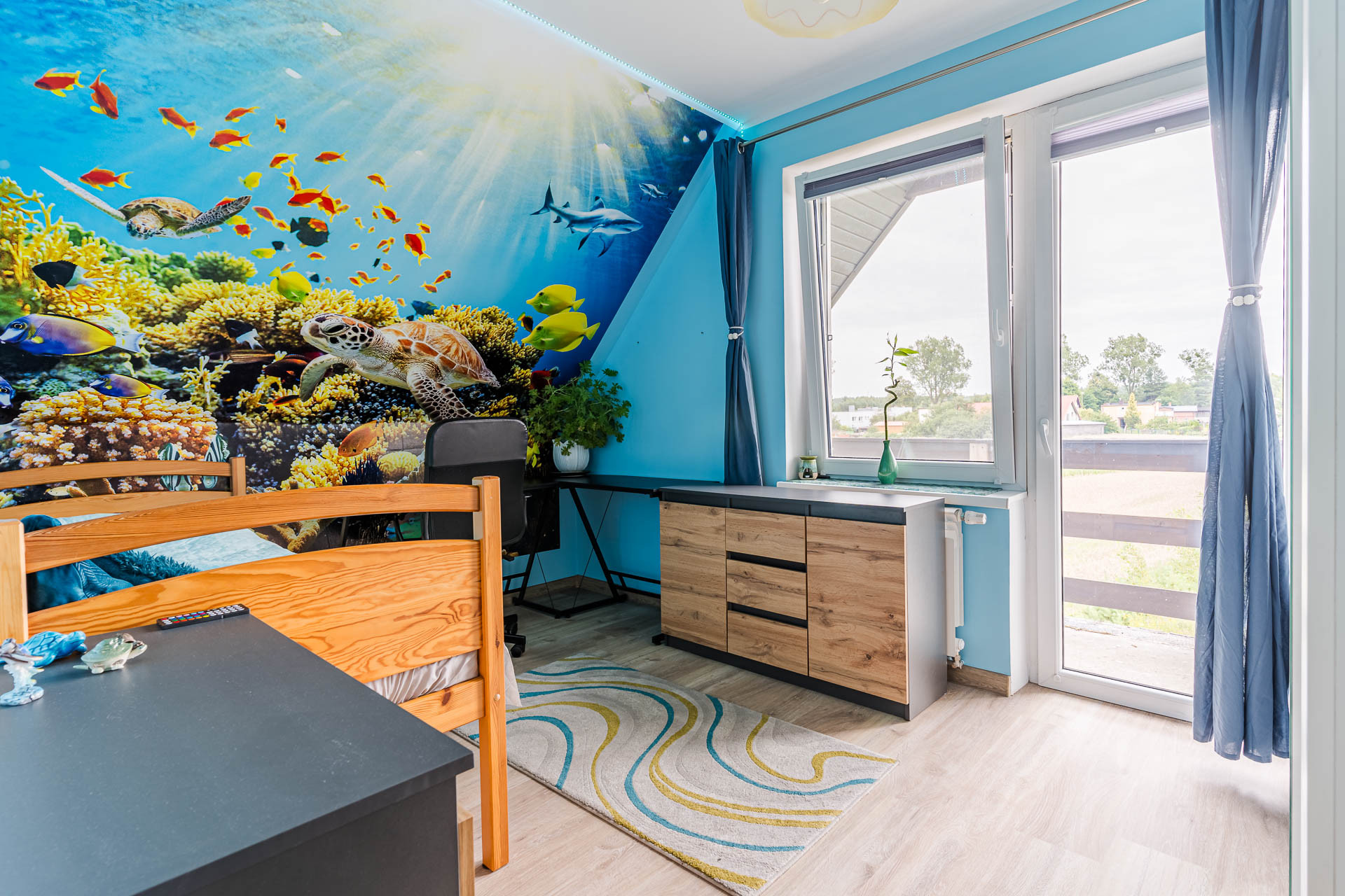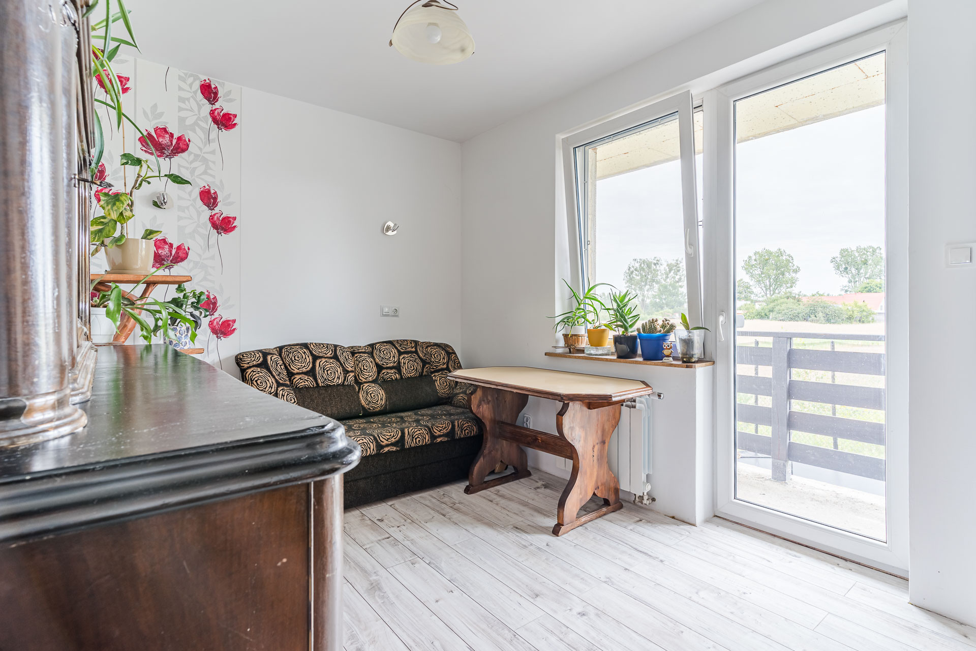 – pokój z wyjściem na balkon,