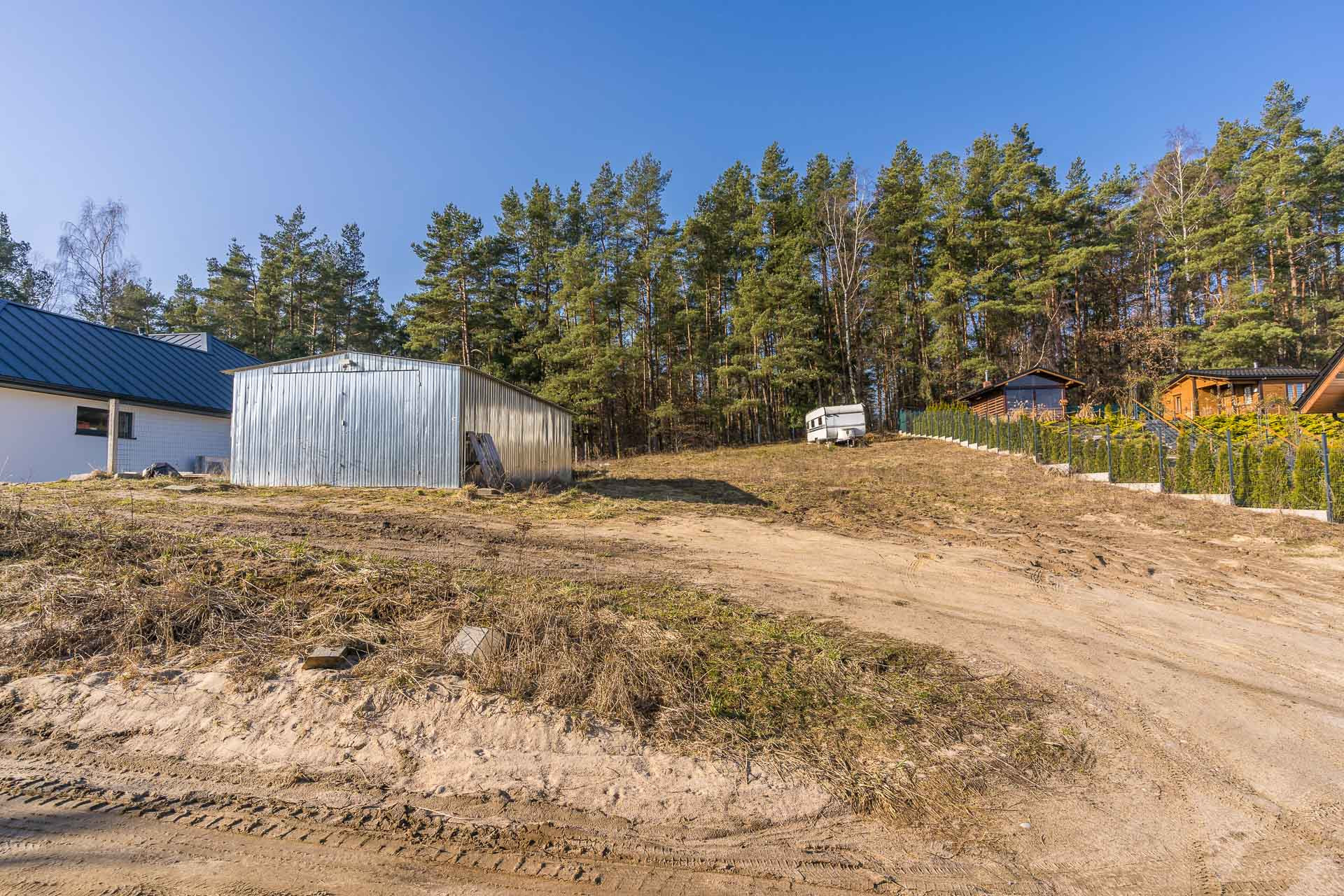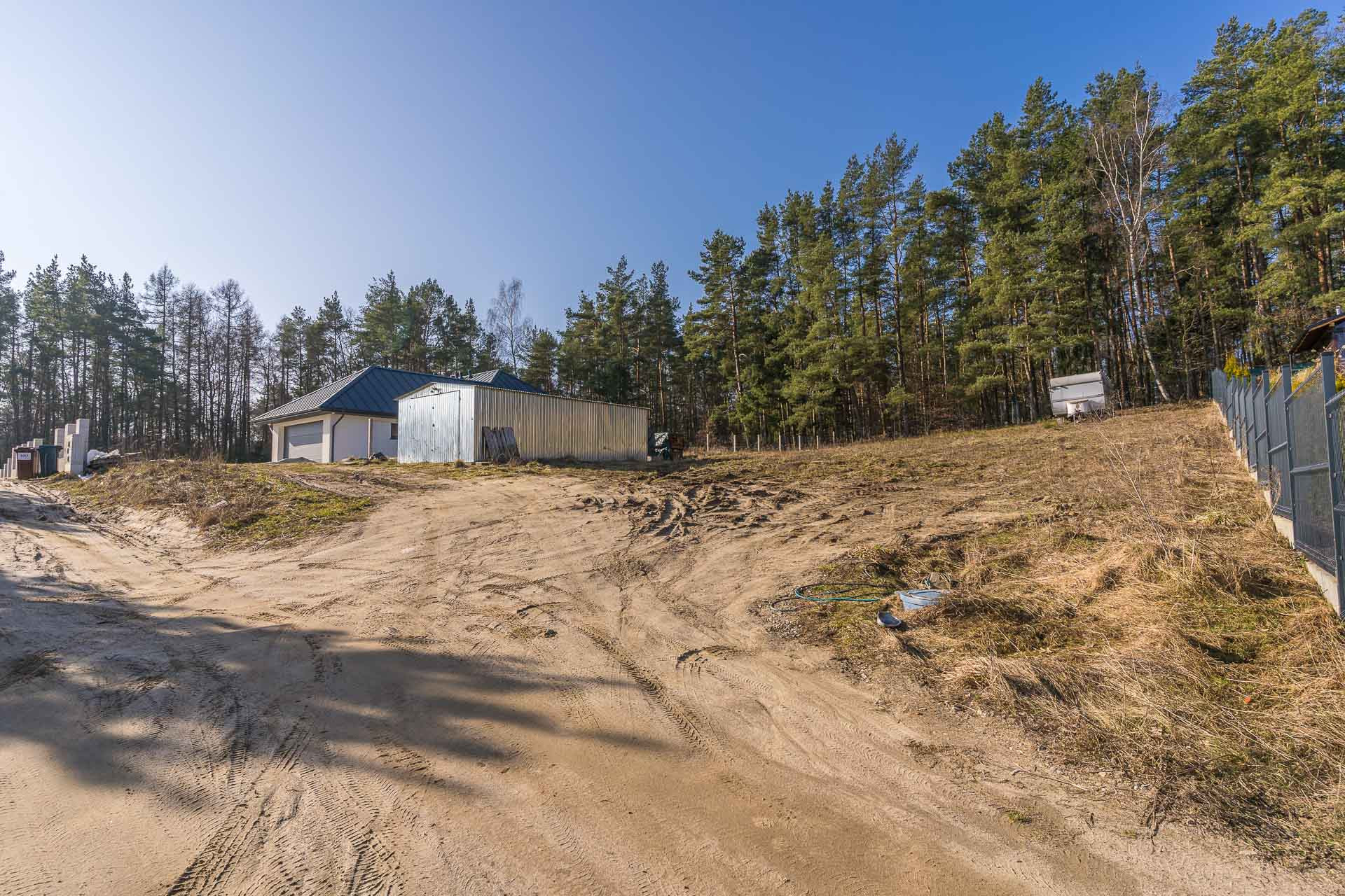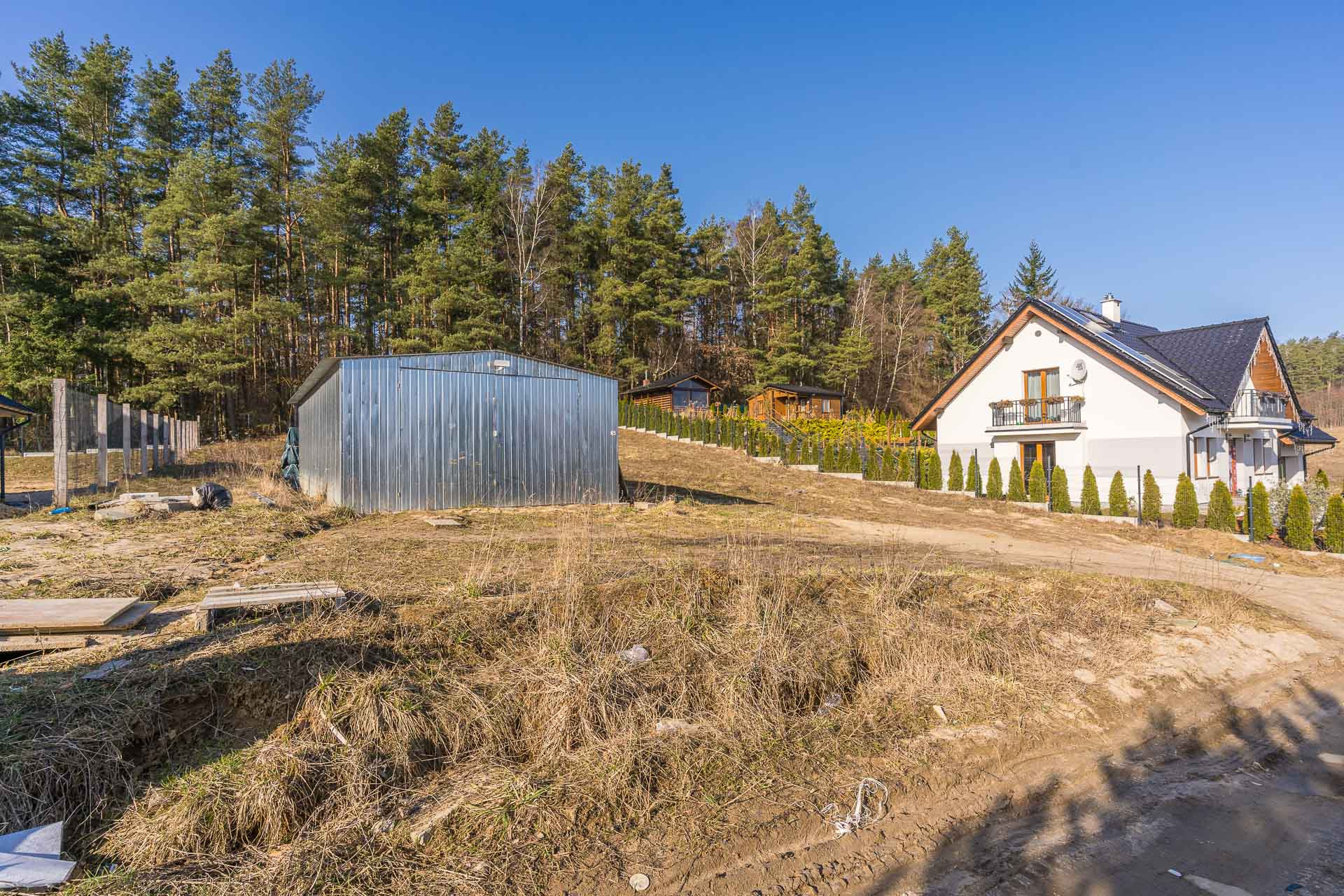 Na działce znajduję się blaszany garaż w którym można przetrzymywać sprzęt podczas budowy domu.