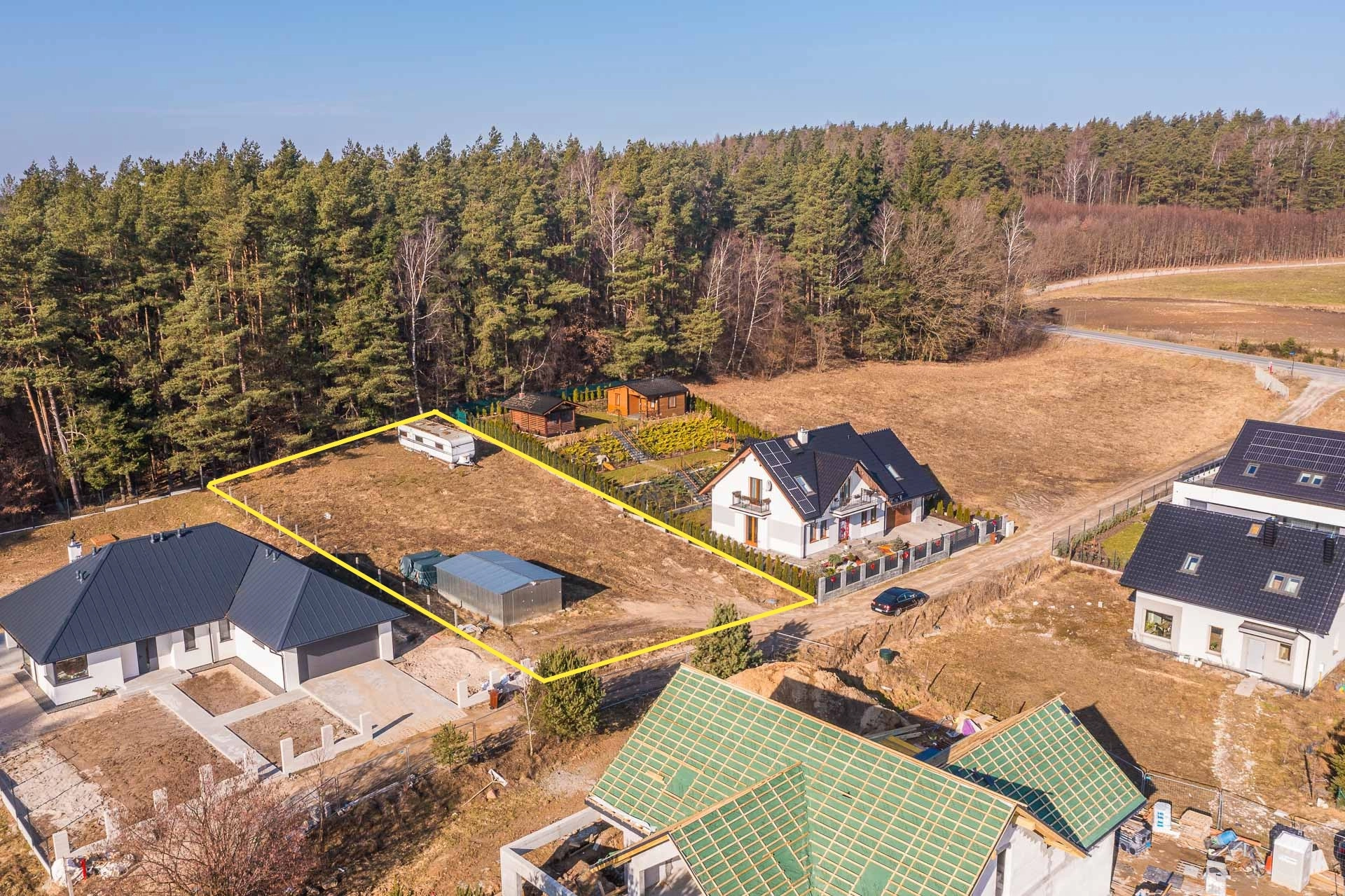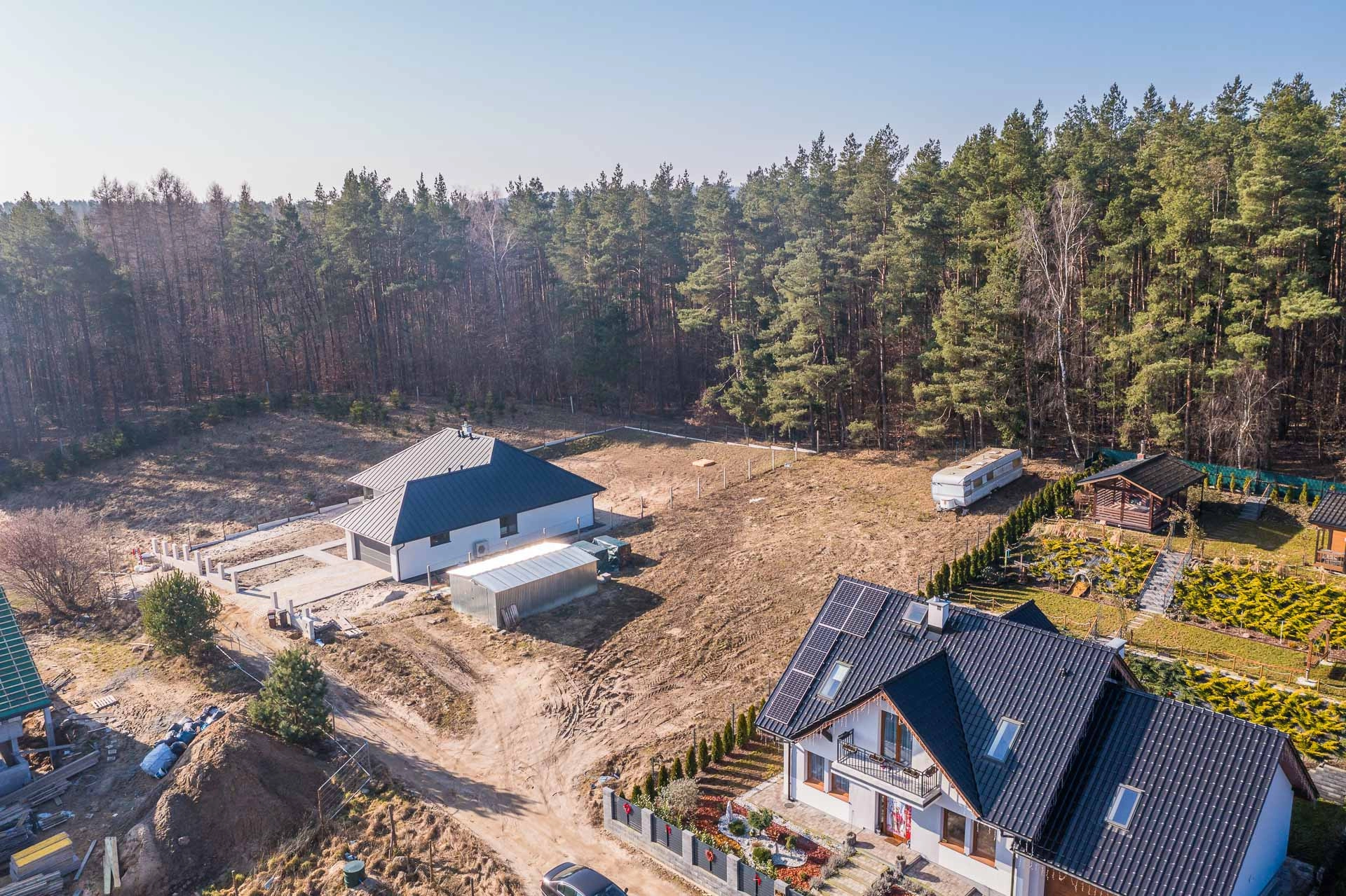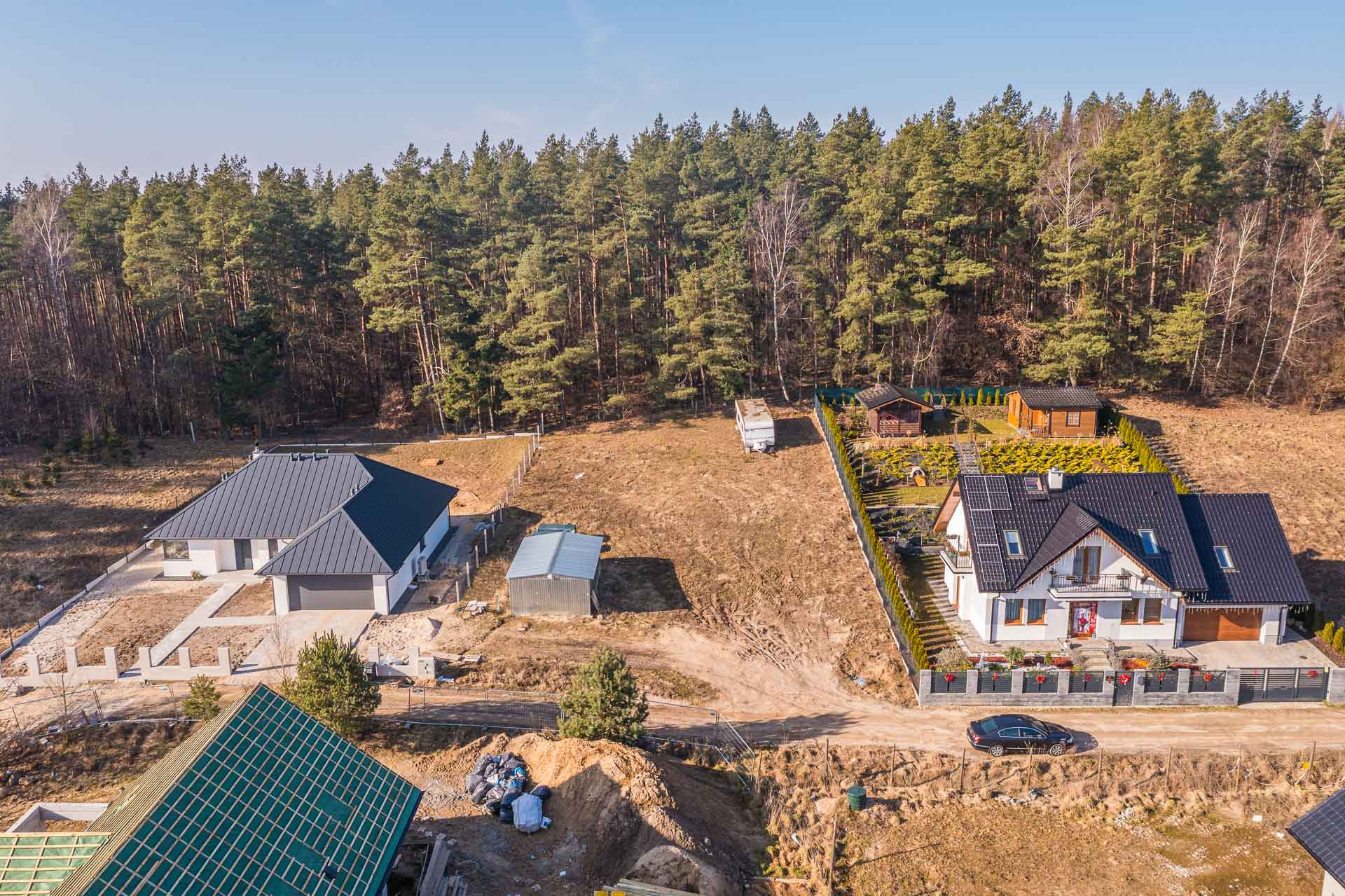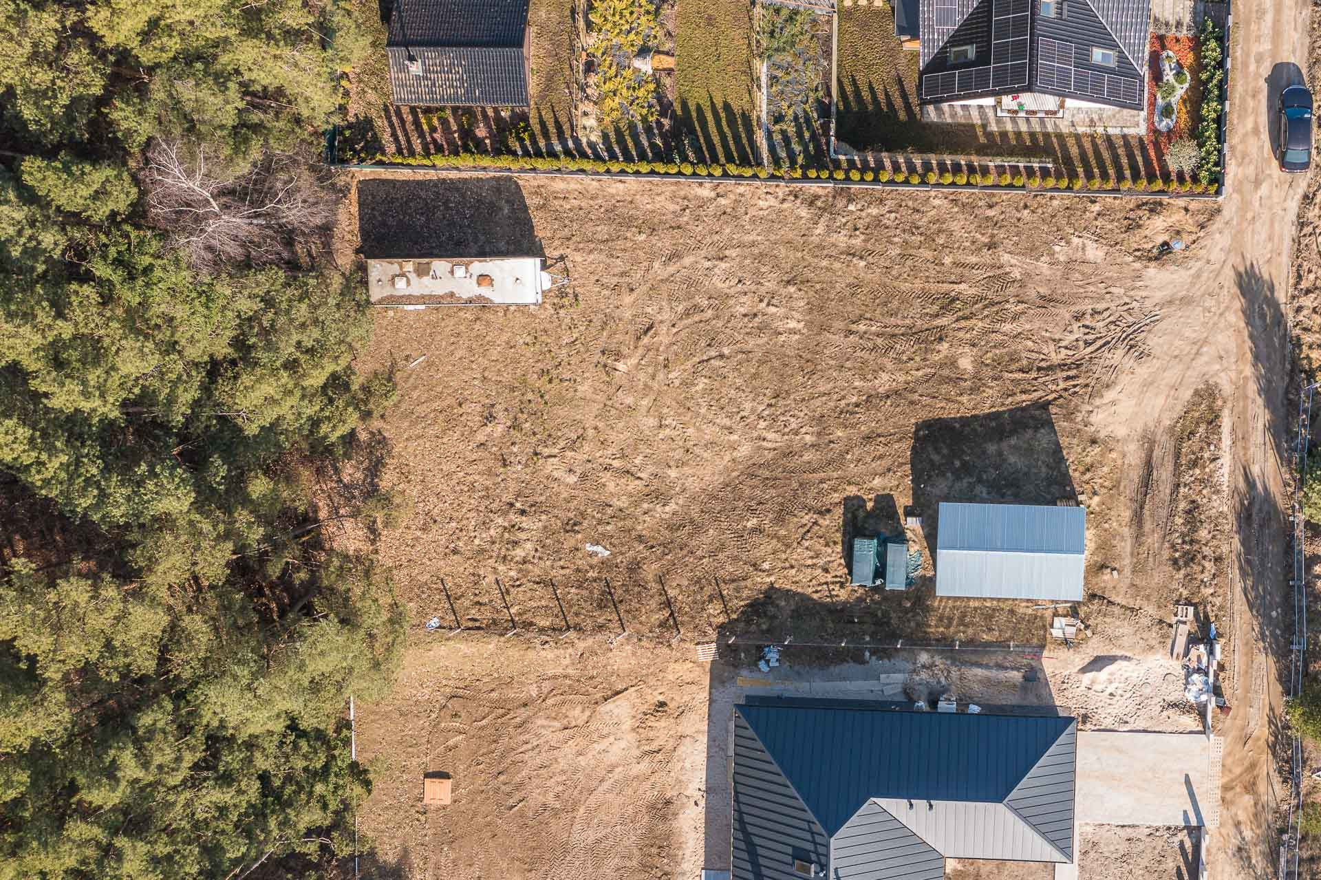 Na działce znajduję się blaszany garaż w którym można przetrzymywać sprzęt podczas budowy domu.