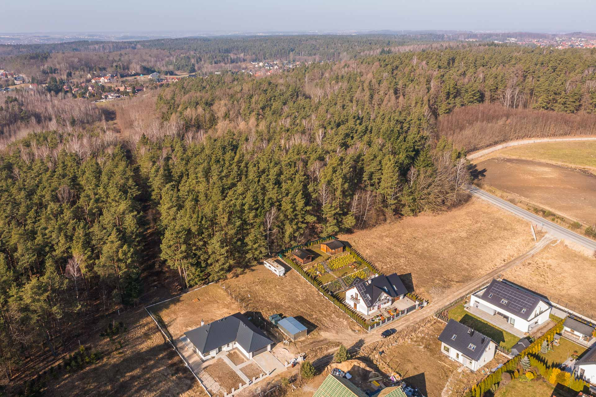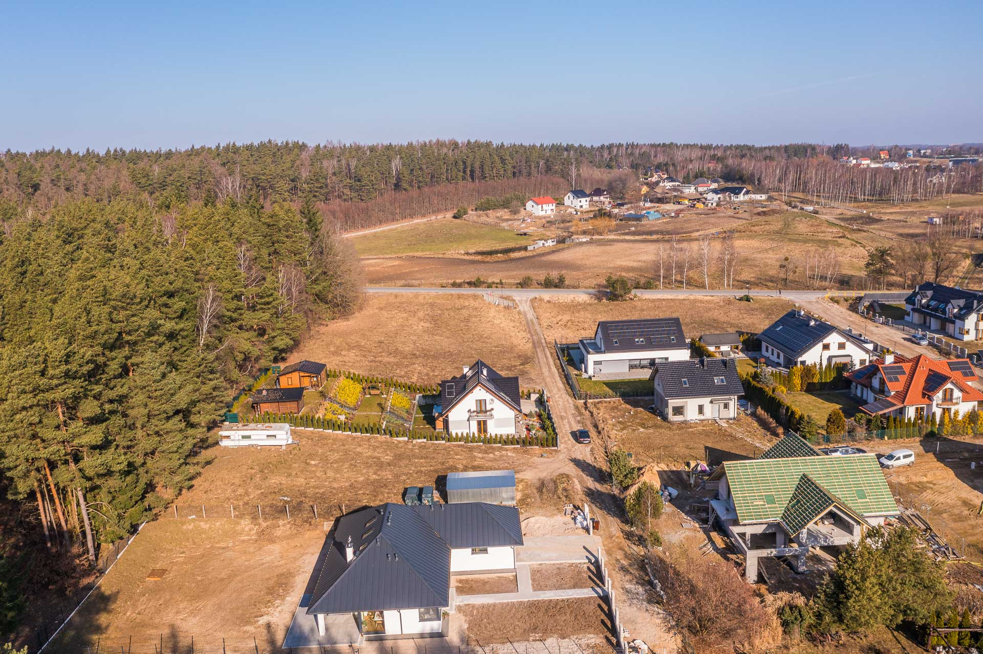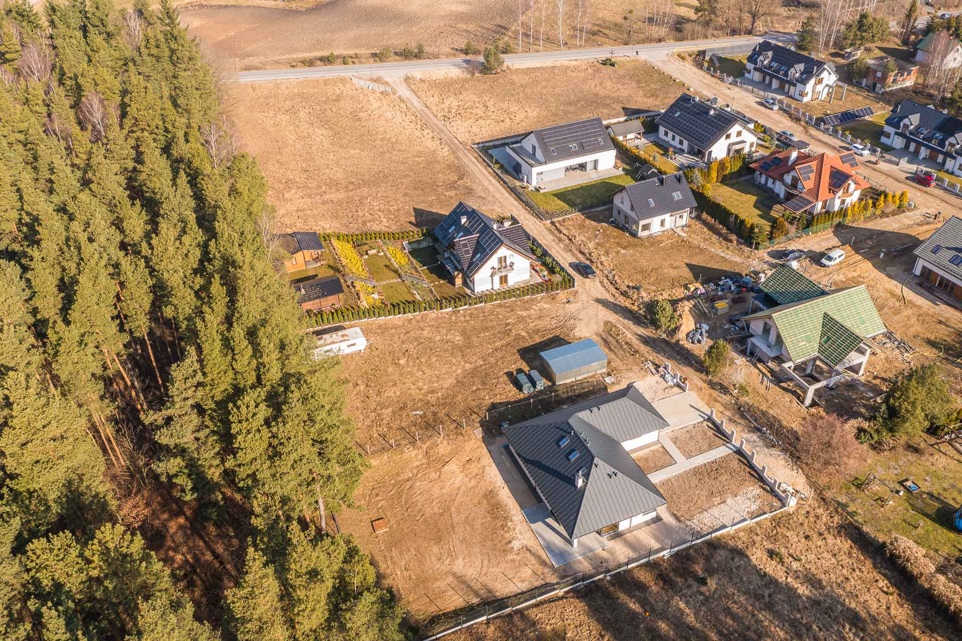 Działka o powierzchni 1136m2. Ma wymiary ok. 46,5m x 24,5m. Znajduję się na niej skrzynka z energią oraz przyłącze wody. Kanalizacja jest w głównej drodze ok 100m od działki. Wjazd jest od strony wschodniej dzięki czemu mamy świetnie nasłoneczniony ogród.