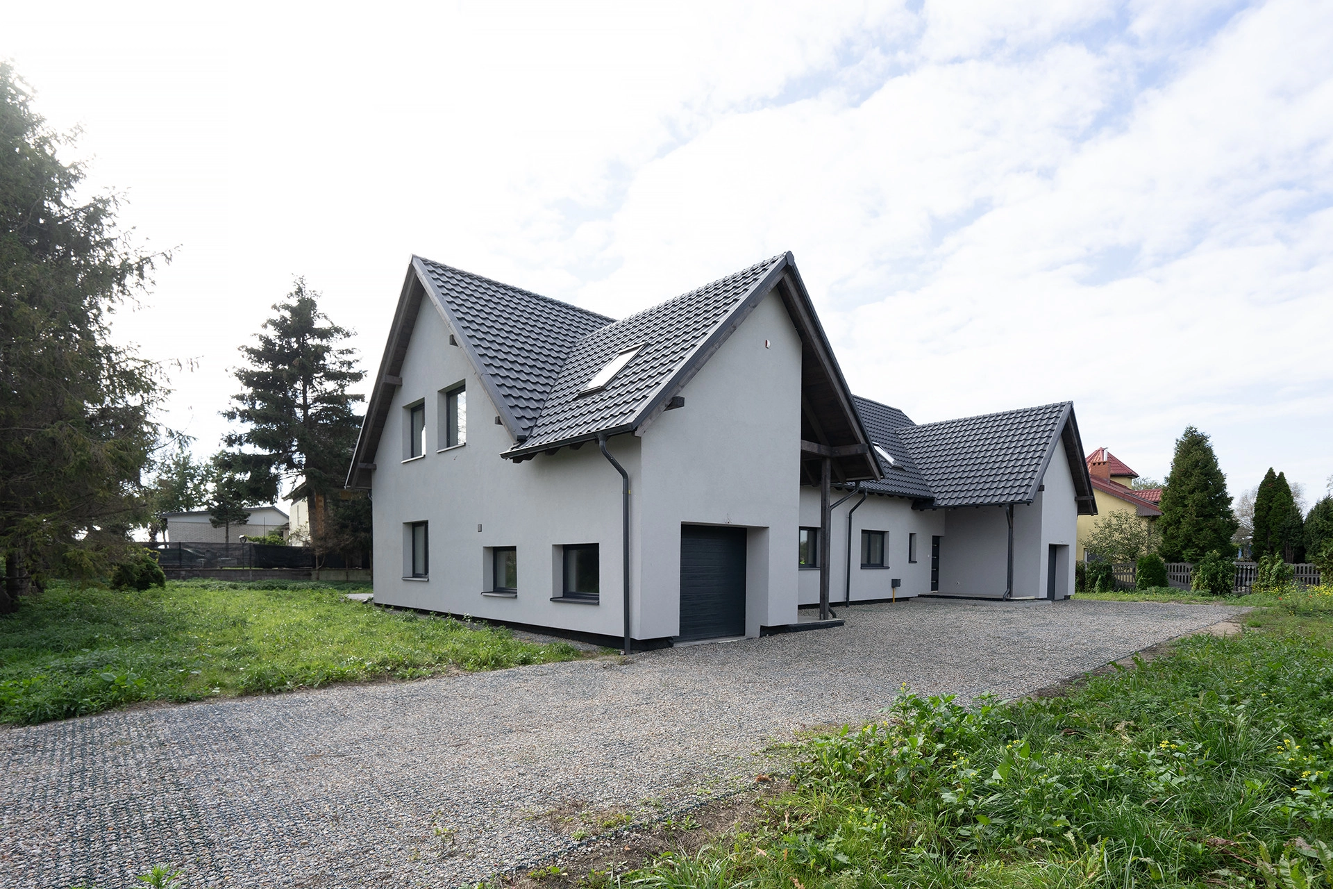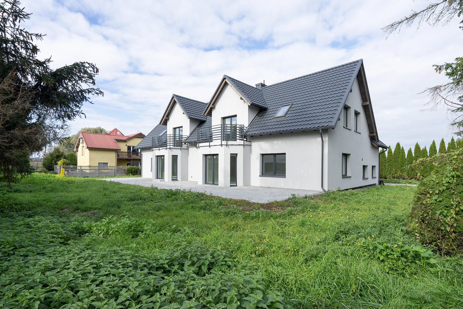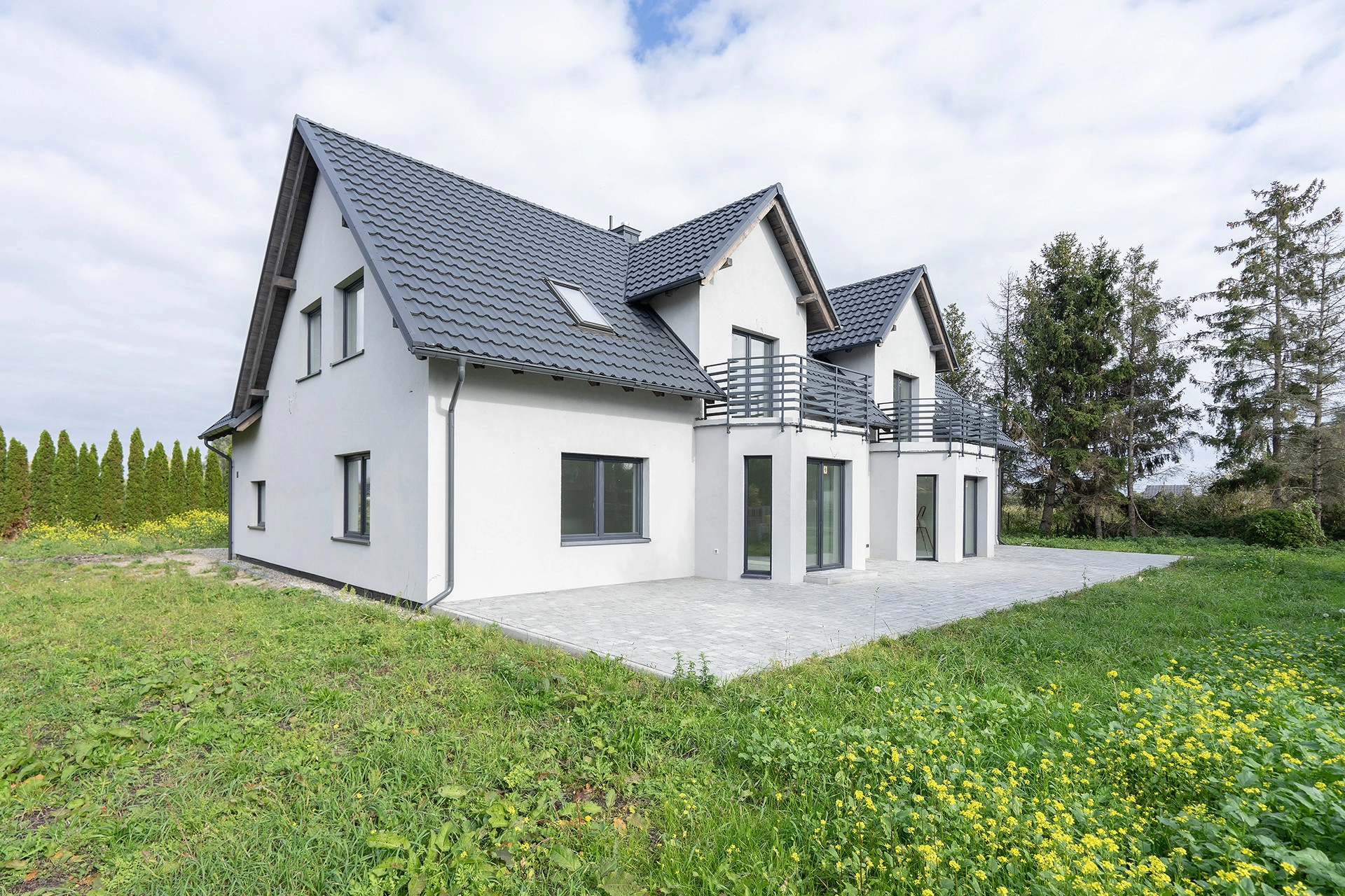 Obie części zapewniają doskonałe nasłonecznienie, duży taras oraz balkon od strony południowej. Dojazd i miejsca postojowe są utwardzone, a dach pokryty wysokiej klasy dachówką modułową. Zastosowano okna dachowe firmy Fakro.