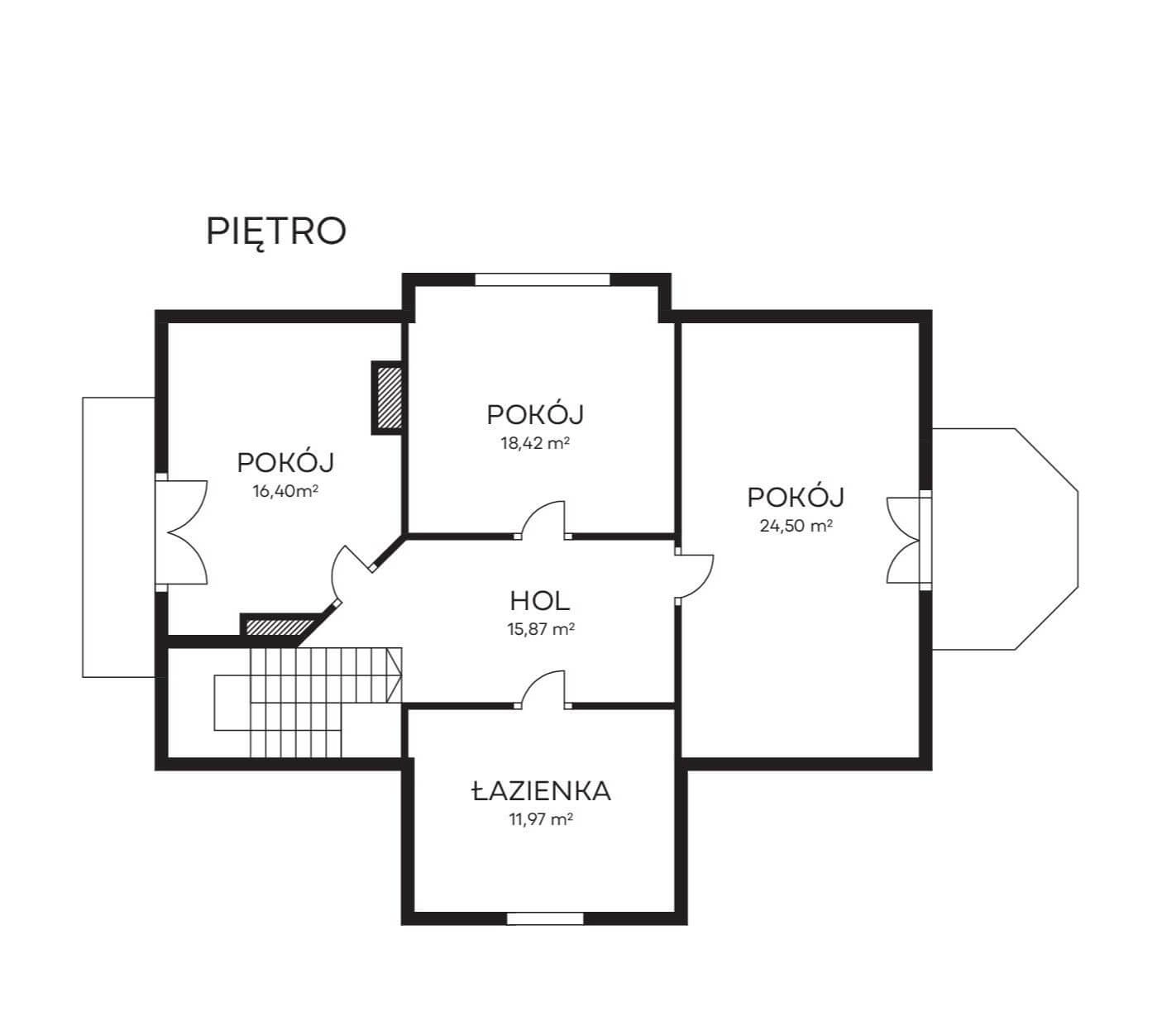 – 3 sypialnie ( 24,50 m2, 18,42 m2, 16,40 m2) z dwóch sypialni wyjście na samodzielne balkony,