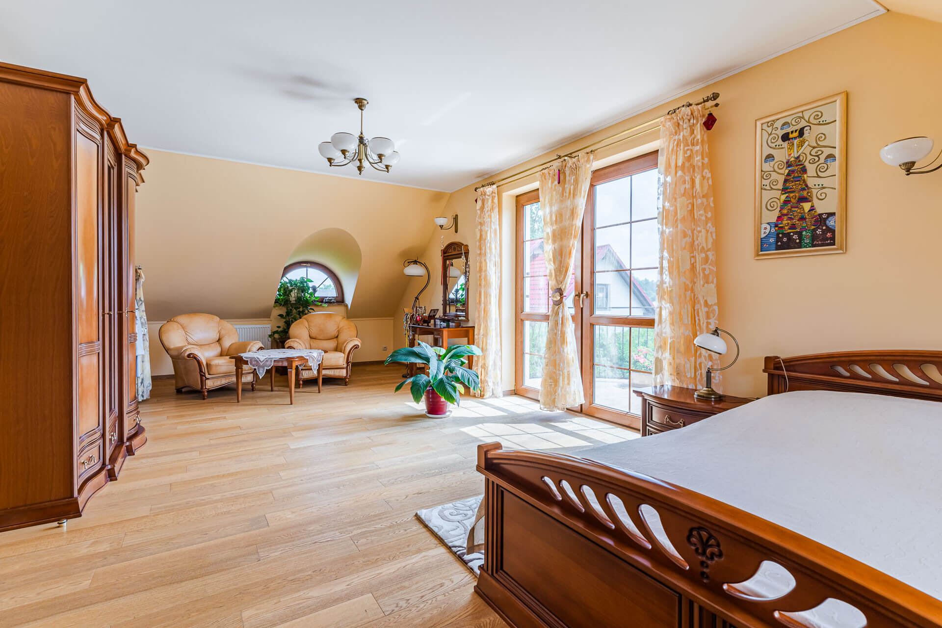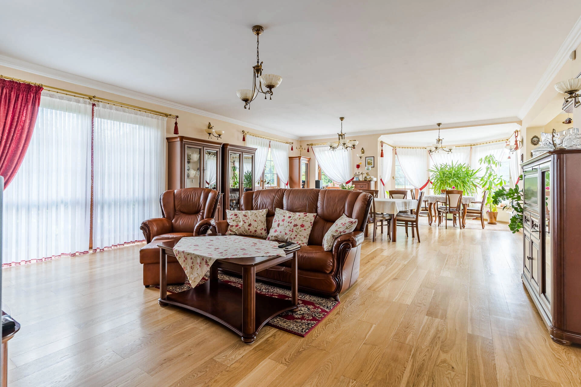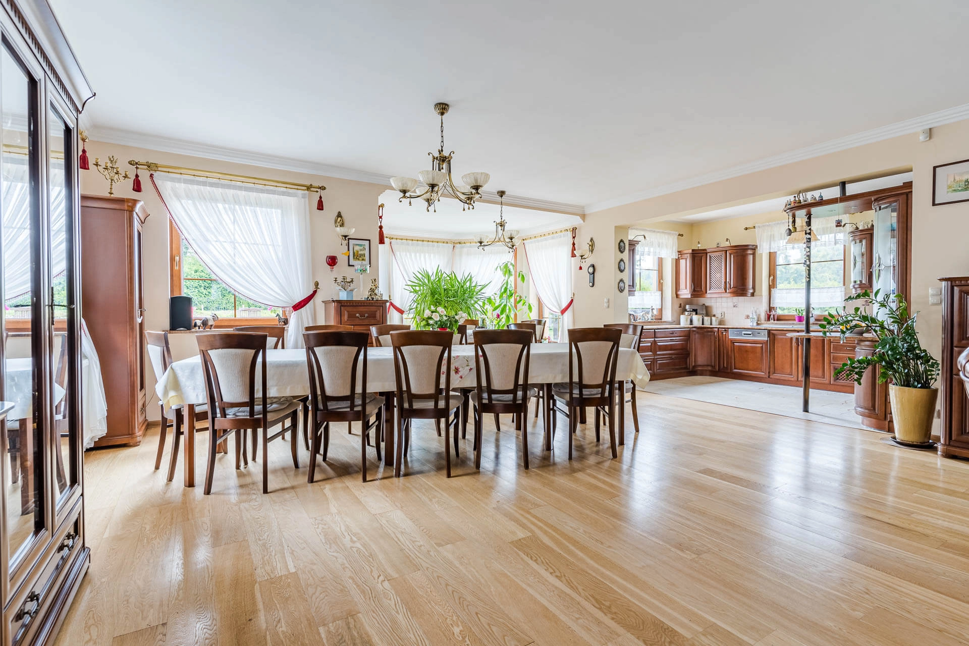 Nieruchomość zachwyca przestronnym, otwartym układem wnętrz, zaprojektowanym z dbałością o każdy detal. Prestiżowy charakter podkreślają materiały najwyższej klasy: naturalna dębowa deska na podłogach oraz kuchnia łącząca szlachetną drewnianą zabudowę z granitowymi blatami i marmurowymi kafelkami. Dzięki wysokości pomieszczeń (2,70 m), wnętrza są jasne i pełne dobrej enegii.