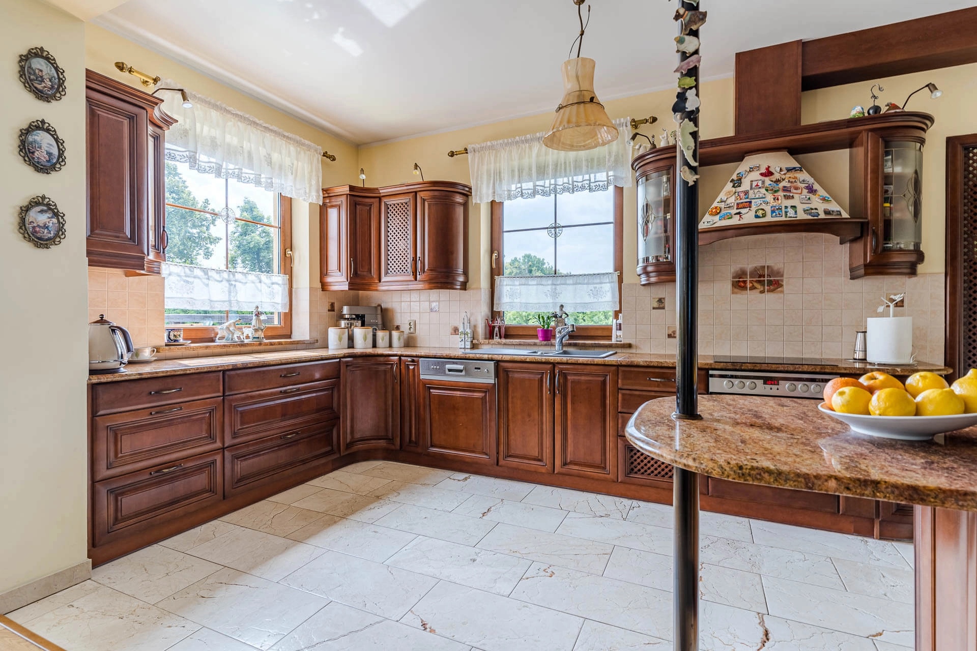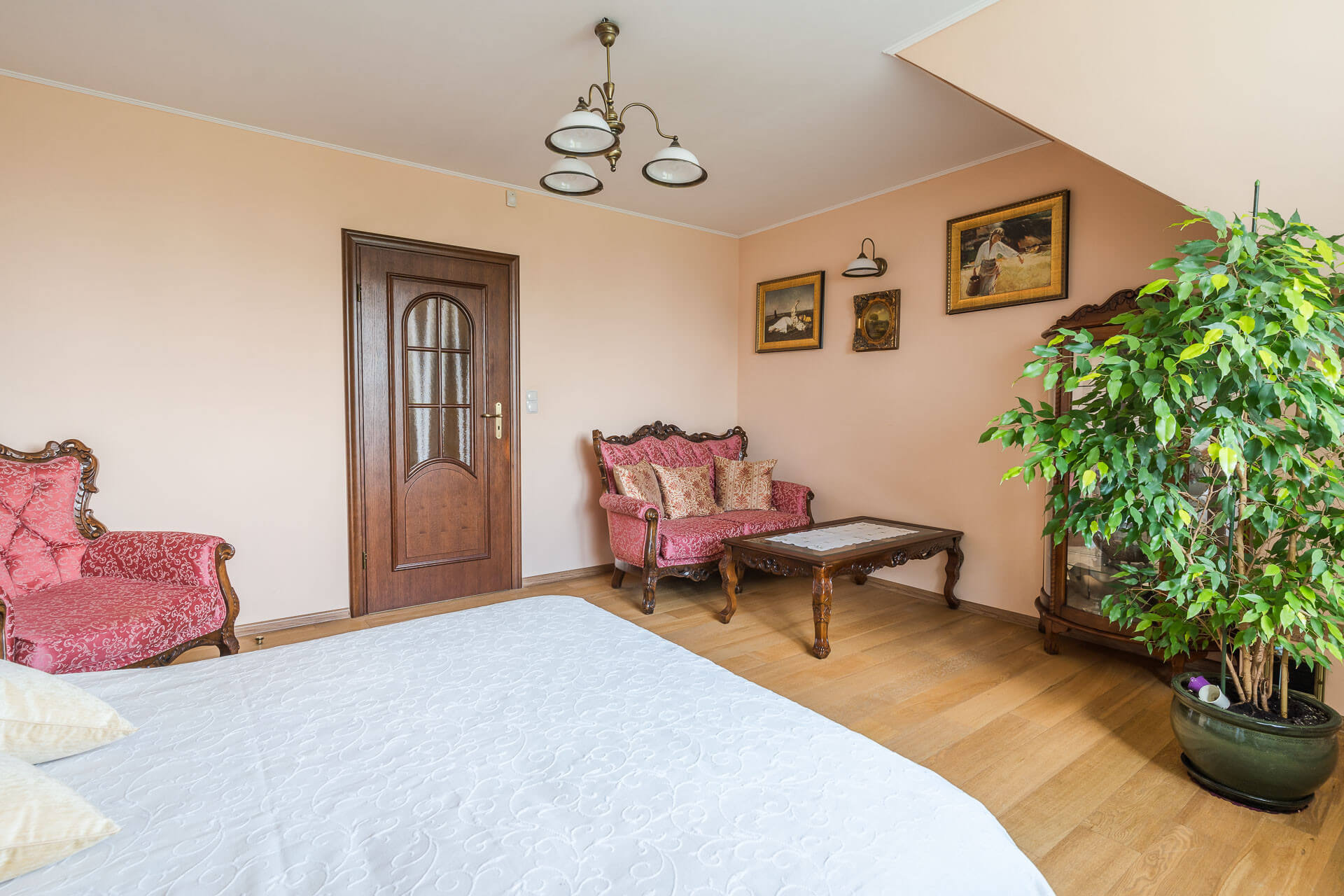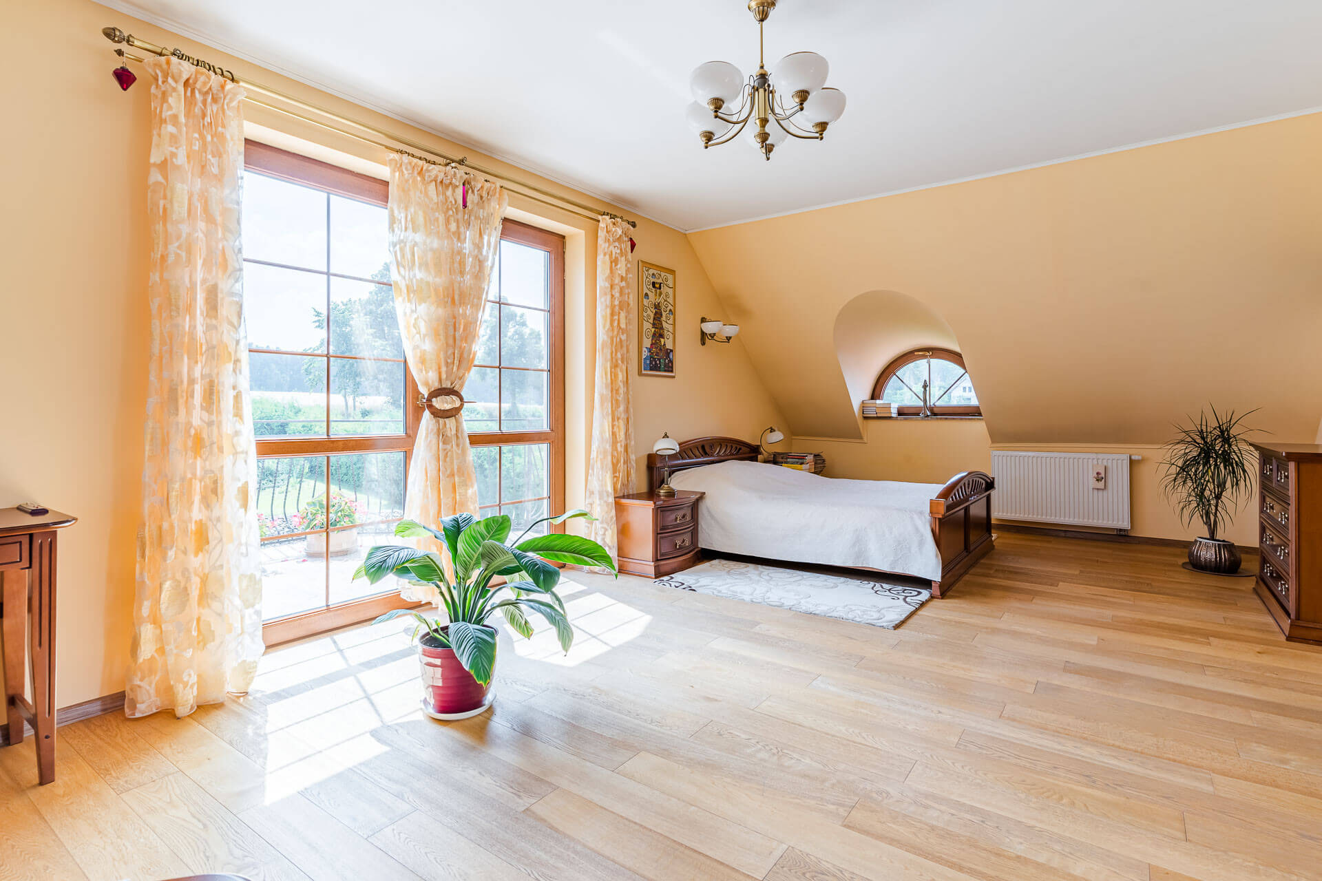 Nieruchomość zachwyca przestronnym, otwartym układem wnętrz, zaprojektowanym z dbałością o każdy detal. Prestiżowy charakter podkreślają materiały najwyższej klasy: naturalna dębowa deska na podłogach oraz kuchnia łącząca szlachetną drewnianą zabudowę z granitowymi blatami i marmurowymi kafelkami. Dzięki wysokości pomieszczeń (2,70 m), wnętrza są jasne i pełne dobrej enegii.
