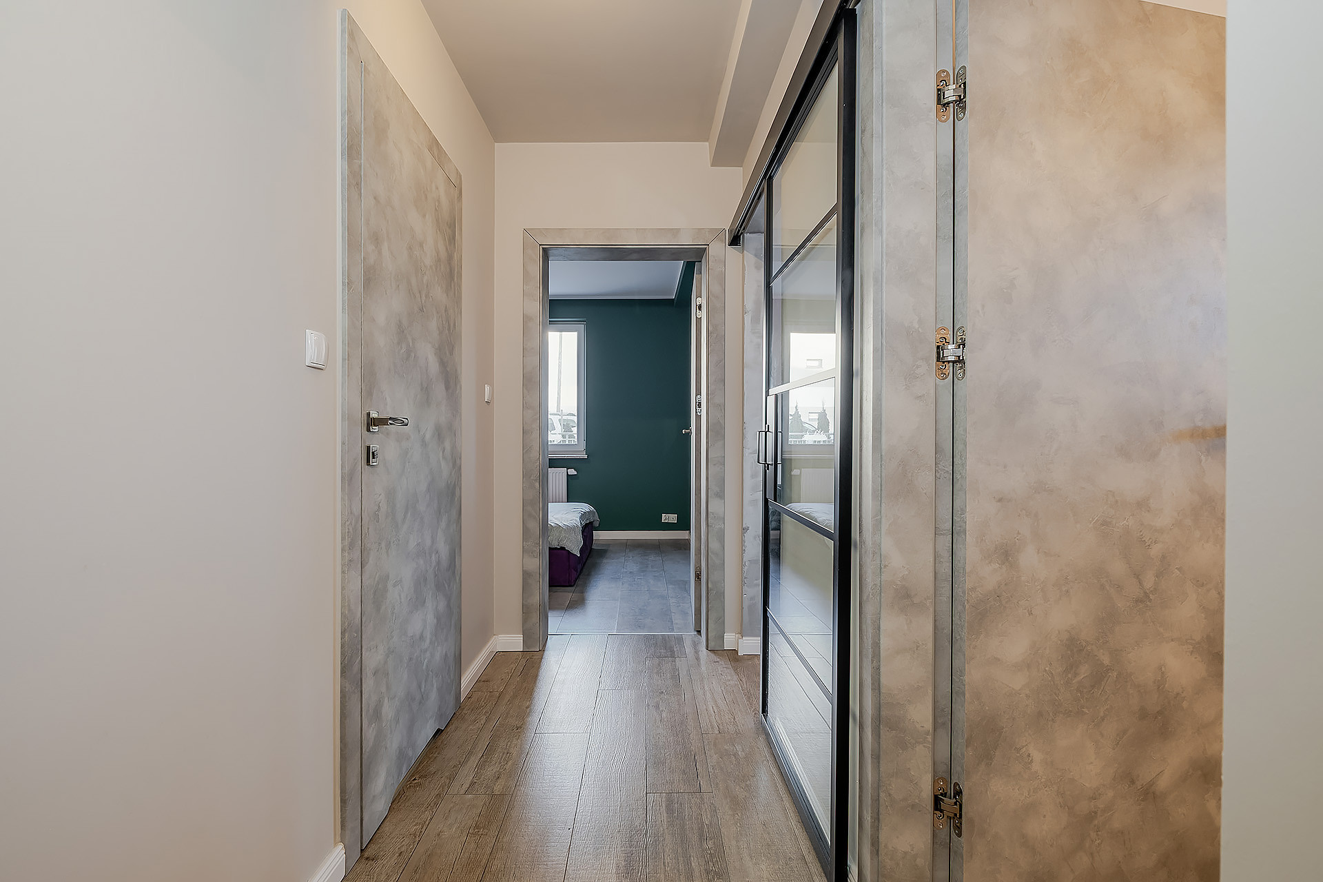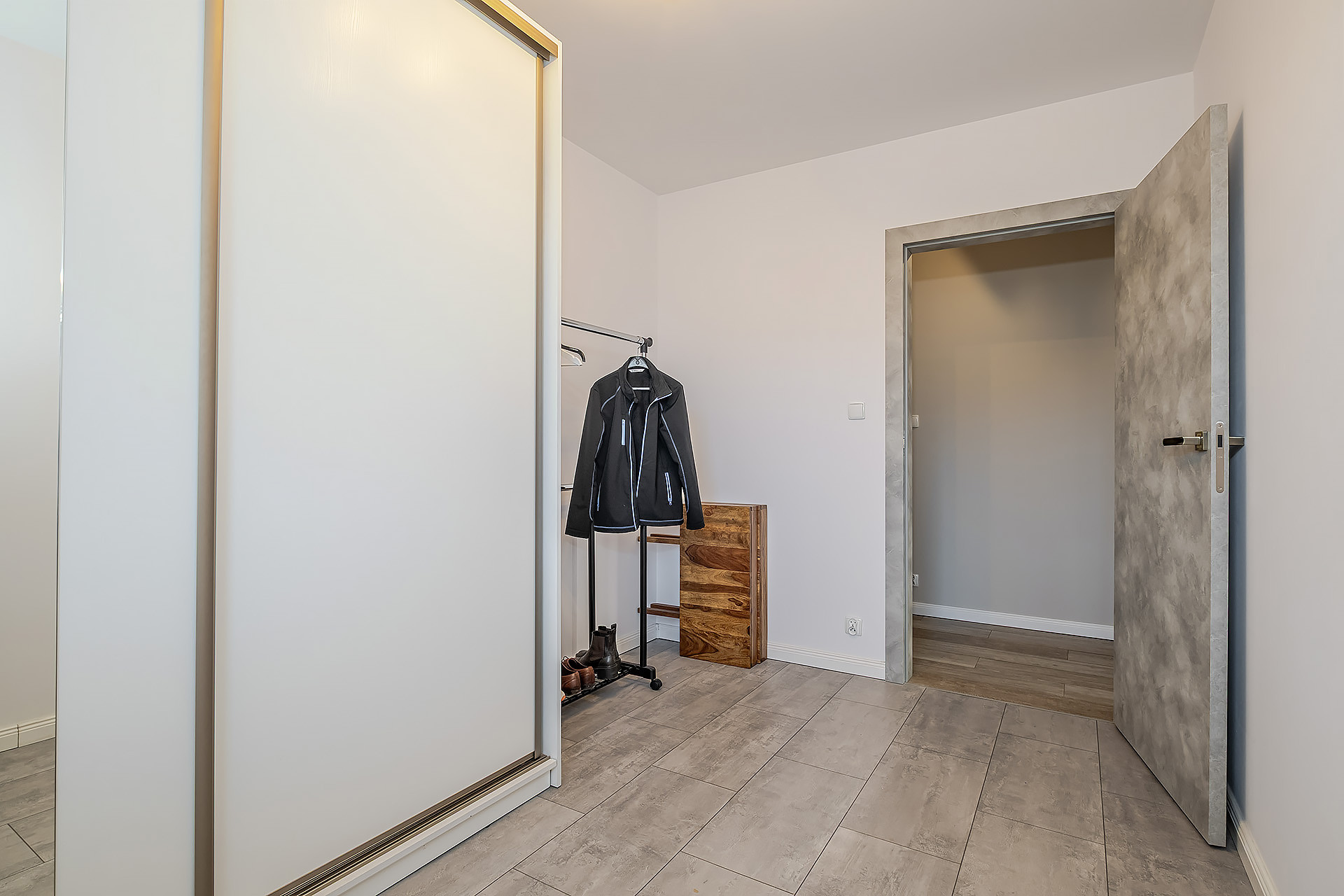 – korytarz (4,97 m2) z garderobą gdzie znajduje się miejsce na pralkę i suszarkę (2,65 m2)