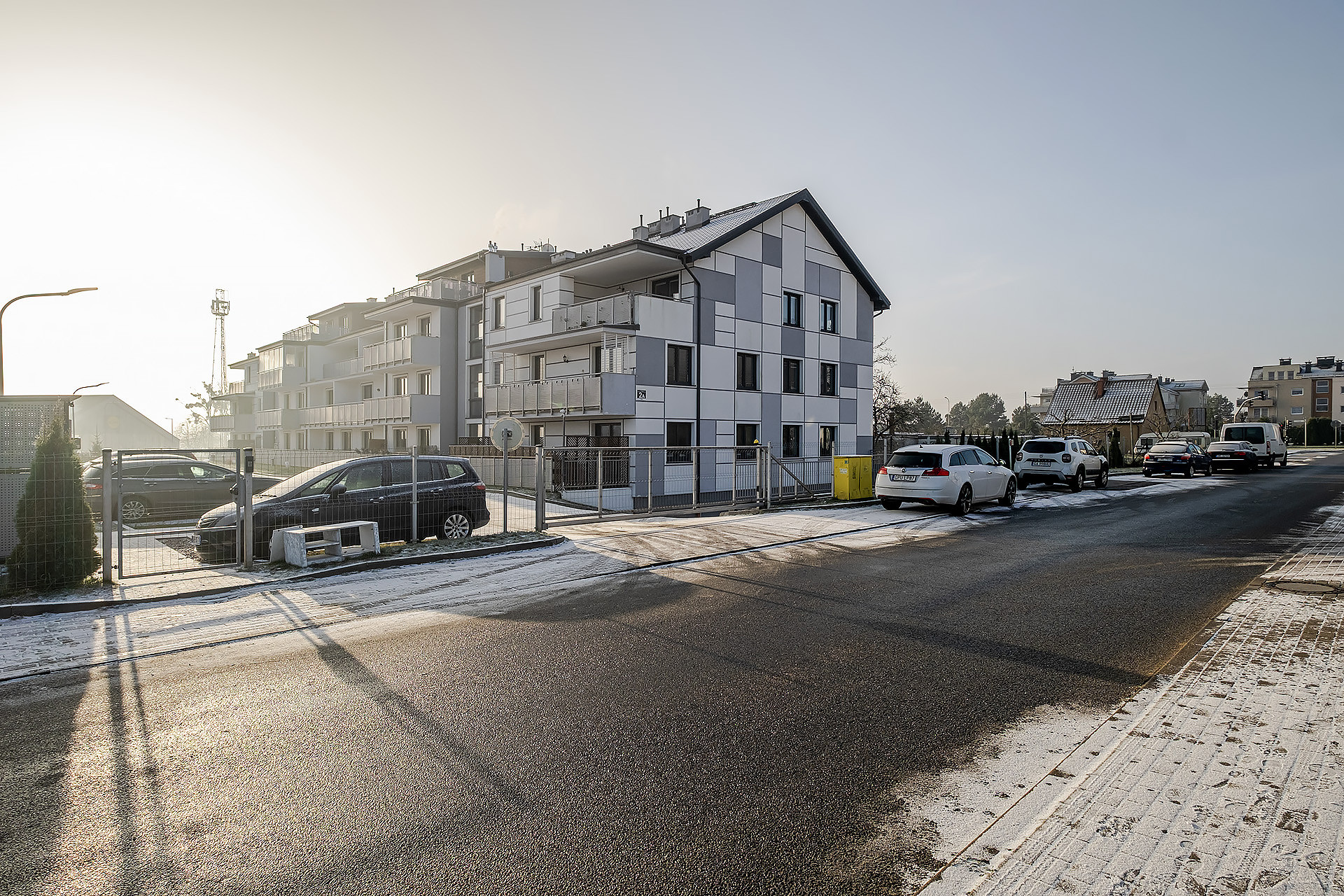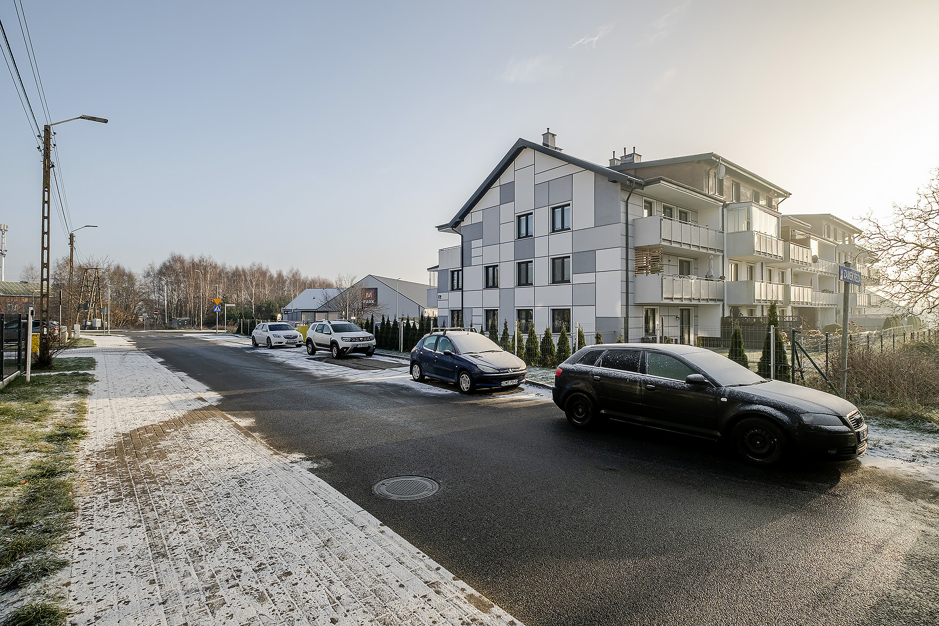 2 piętrowy budynek mieszkalny wzniesiony w 2019 roku. Zbudowany z pustaka, dodatkowo ocieplony. Budynek jest nowoczesny i bardzo zadbany, brak w nim jakichkolwiek usterek. Klatka schodowa szeroka, czysta, a wejście zabezpieczone jest domofonem. Na zamkniętym terenie wokół budynku znajduje się wiele ogólnodostępnych miejsc postojowych