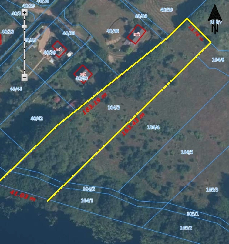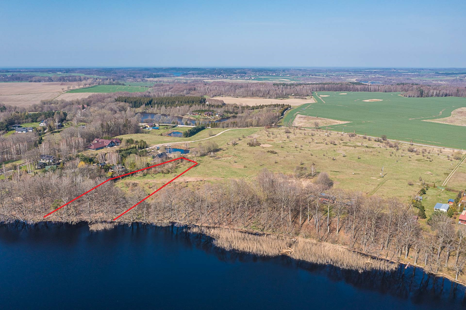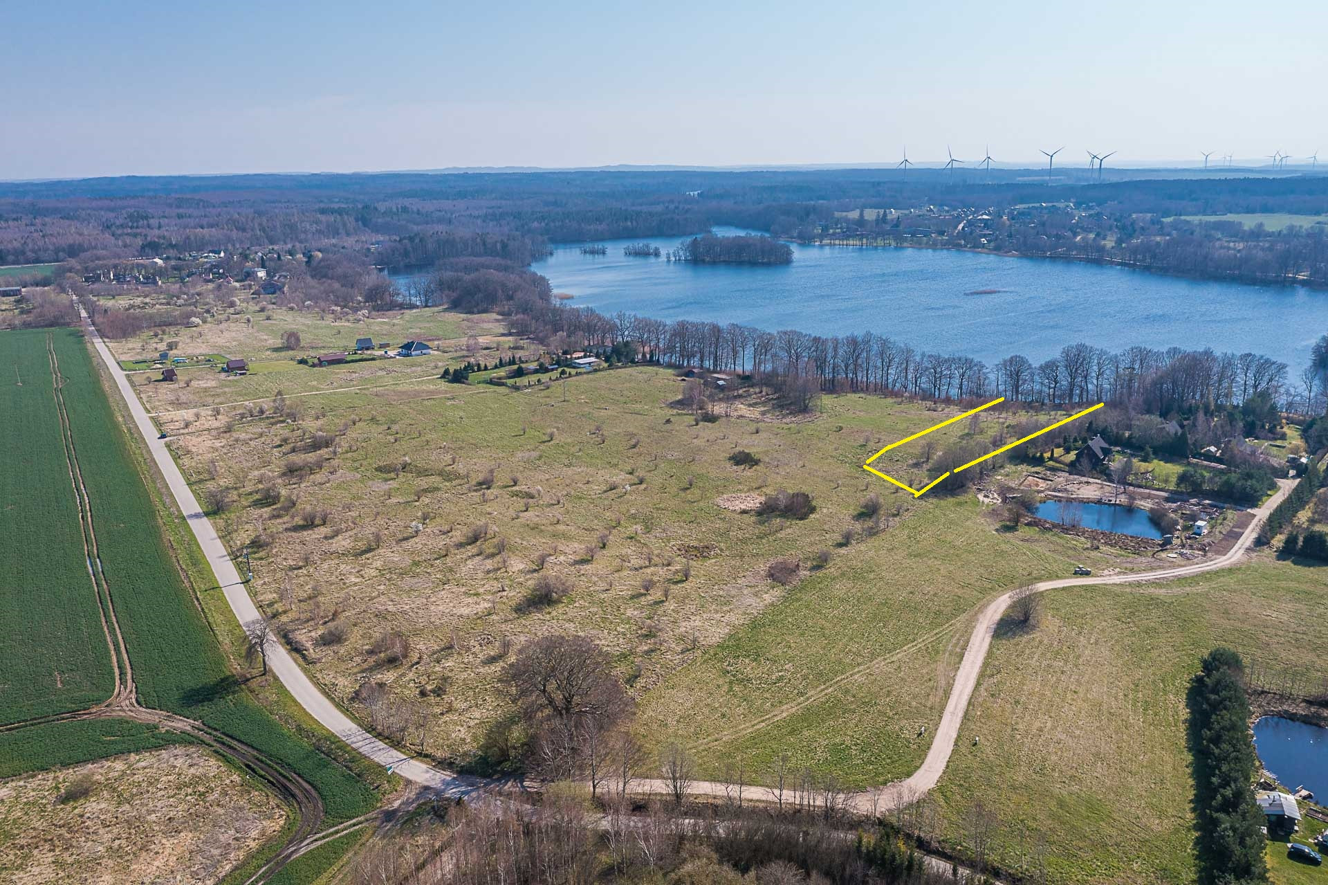 Działka budowlana o powierzchni 5.310m2 składająca się z działki głównej 4.653 m2. oraz dodatkowo udziału w działkach leżących przy linii brzegowej nr. działki 104/1 oraz działki 104/2 o dodatkowej powierzchni 657 m2.