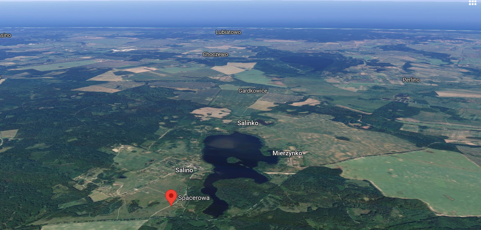 Działka o numerze 22/21 położona przy ul. Spacerowej, o powierzchni 1.527 m2, w kształcie prostokąta i z wjazdem od strony zachodniej. Teren płaski. Odległość od Jeziora Salino w linii prostej to ok. 250 m. Blisko także tereny leśne oraz drugie piękne jezioro Jezioro Czarne (piękne i kameralne śródleśne jezioro rynnowe położone na terenie Puszczy Wierzchucińskiej).